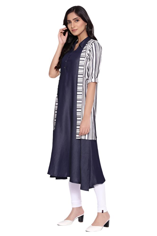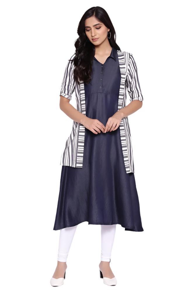 Off-White and Navy Yarn Dyed Gillet in Munich