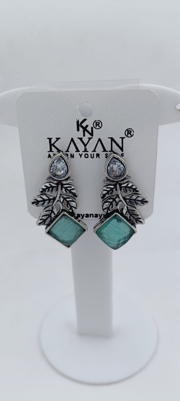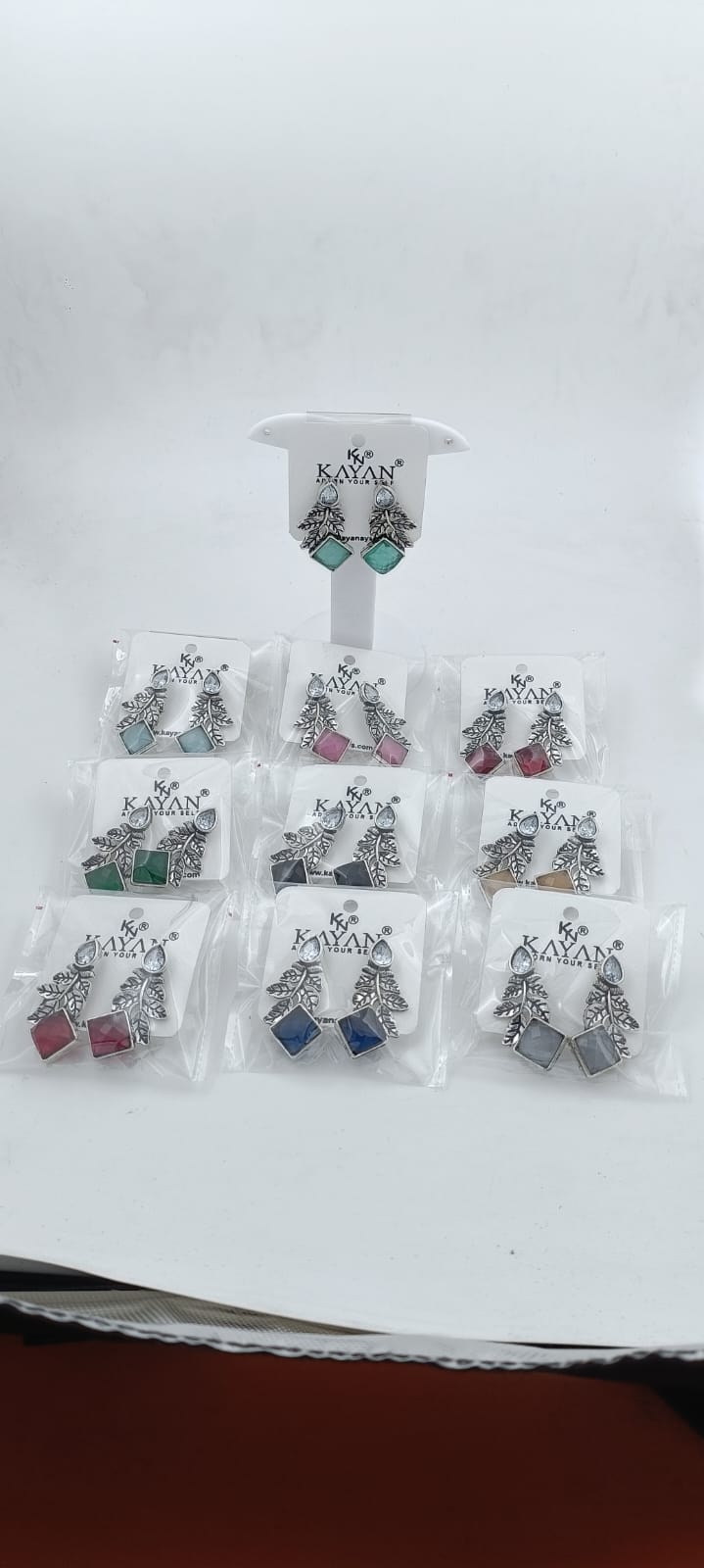 Name : Beautiful Unique Design Oxidised Silver Stud Earring | Women's Latest Design Monalisa Earrings | Ethnic Stone Earrings | Oxidized Stone Earrings |Stone Earrings for Girls & Women| Pair of Stone Studs | Premium Quality Brass Stone Studs | Pair of Stone Earring by Jewellery Studio