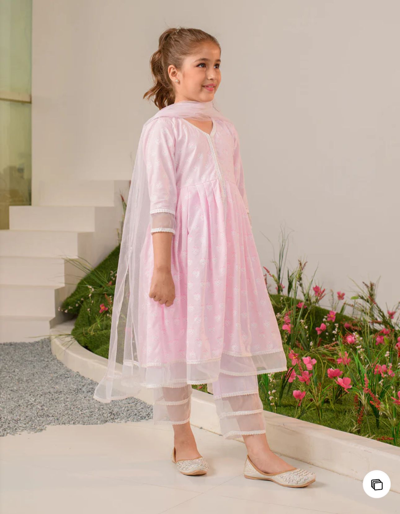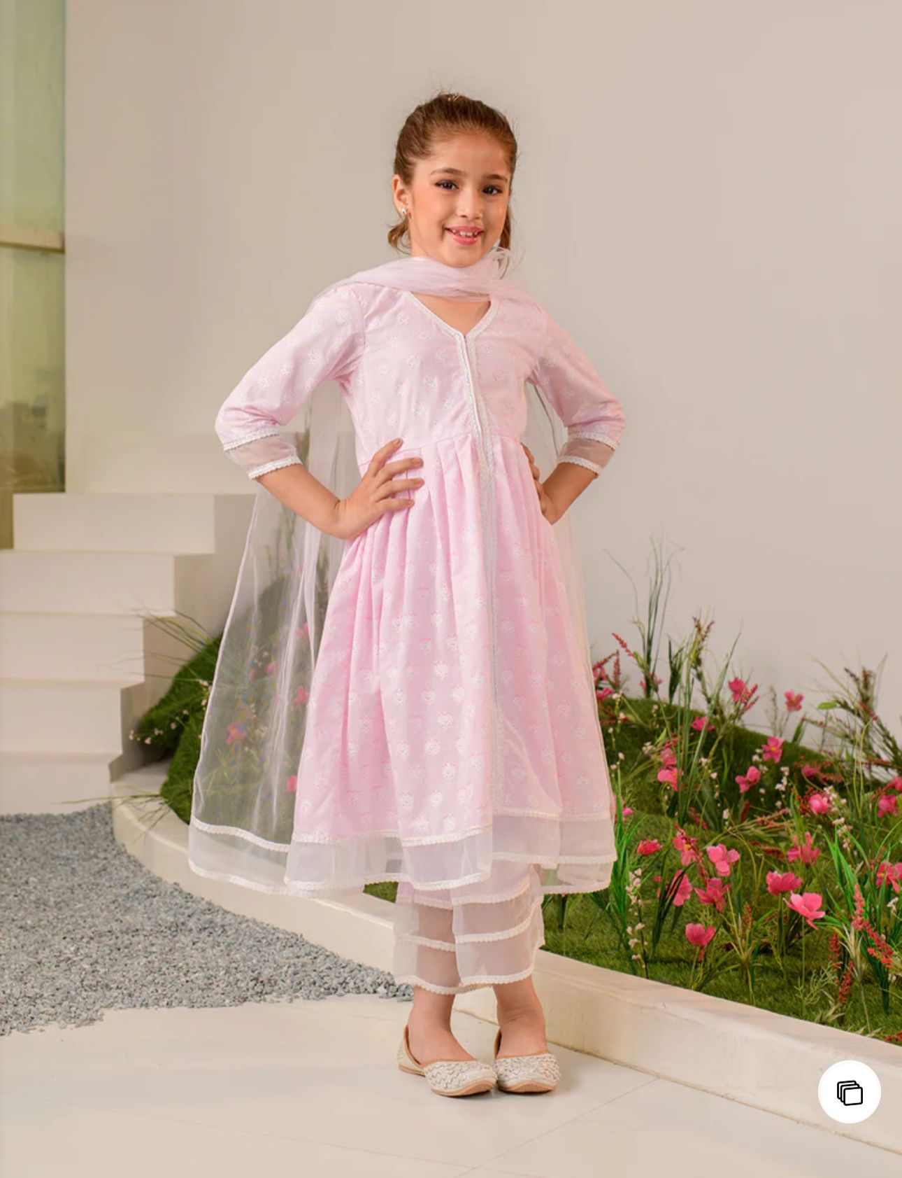 Girls Pink Ethnic Motifs Printed Regular Pure Cotton Kurta with Palazzos & With Dupatta