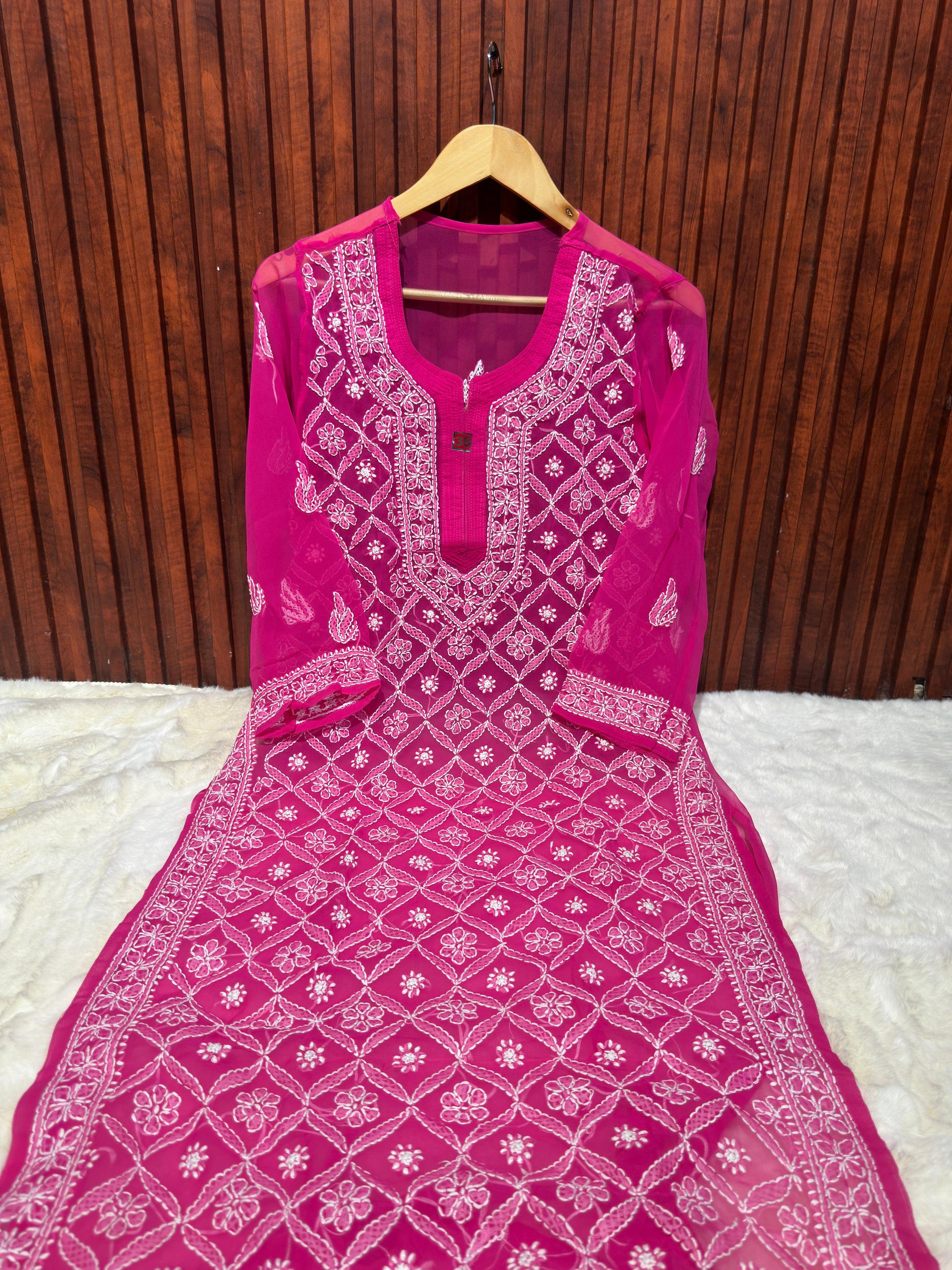 Pink Women's Georgette Chikankari Embroidery Straight Kurta in Berlin