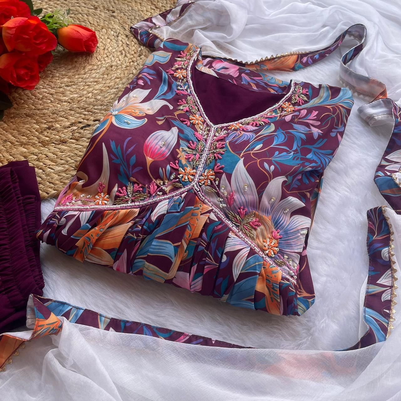 Presenting New Summer special party wear Aliya cut Dresses Dupatta pant