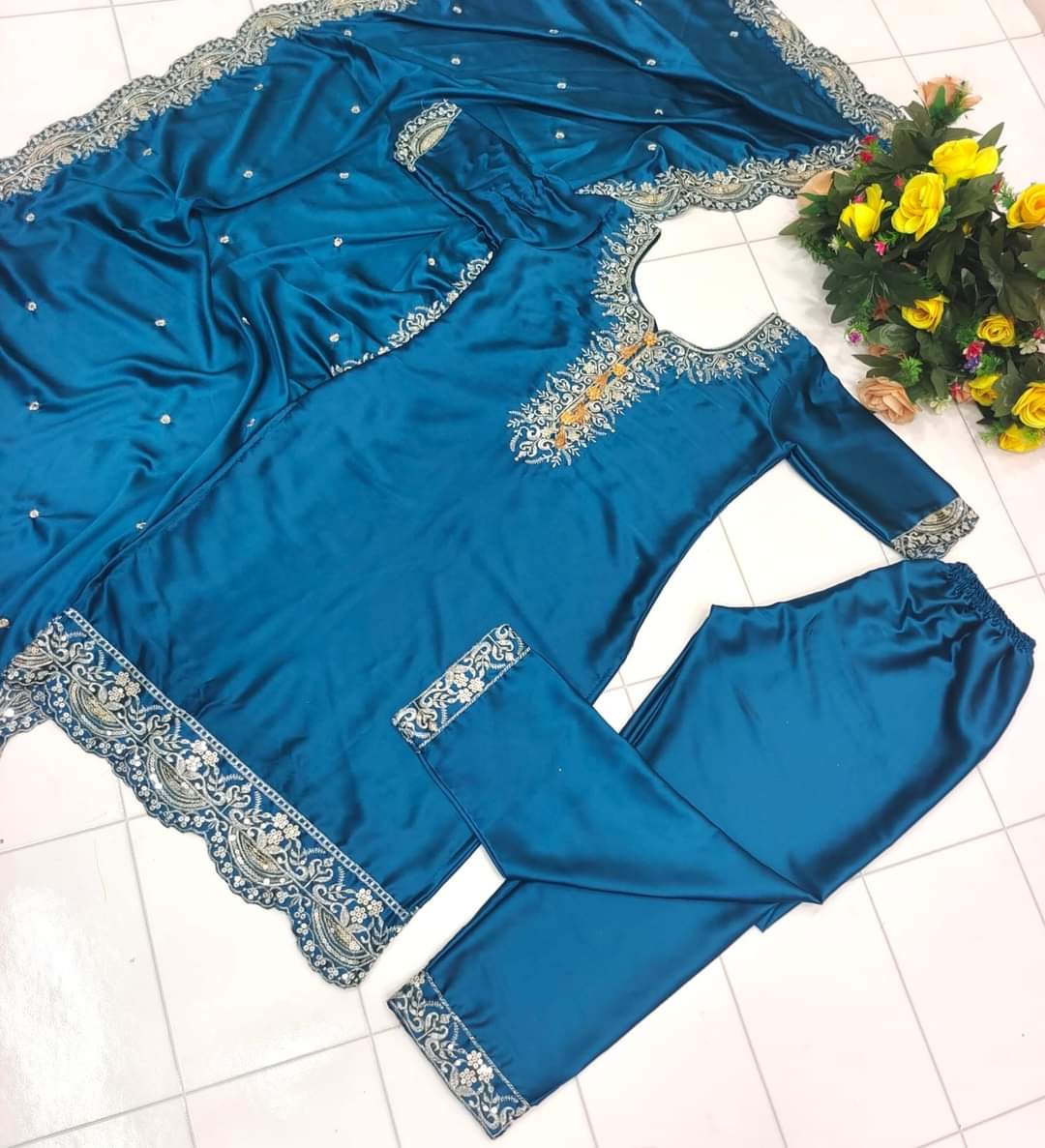 💃👚Top Fabric:- Malay Satin Silk With Hevyy 5mm Siqwans Embroidery Work With Srot-Sleevs With Full-Stiche