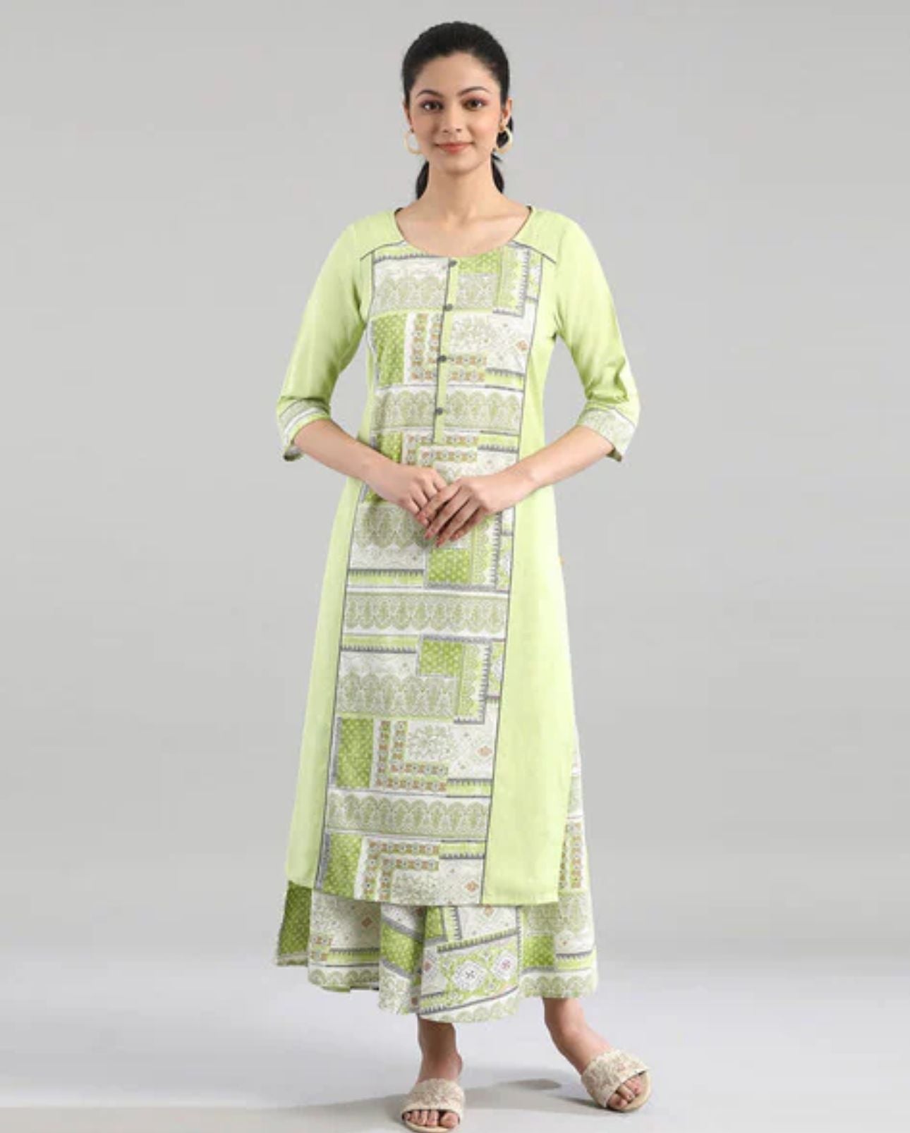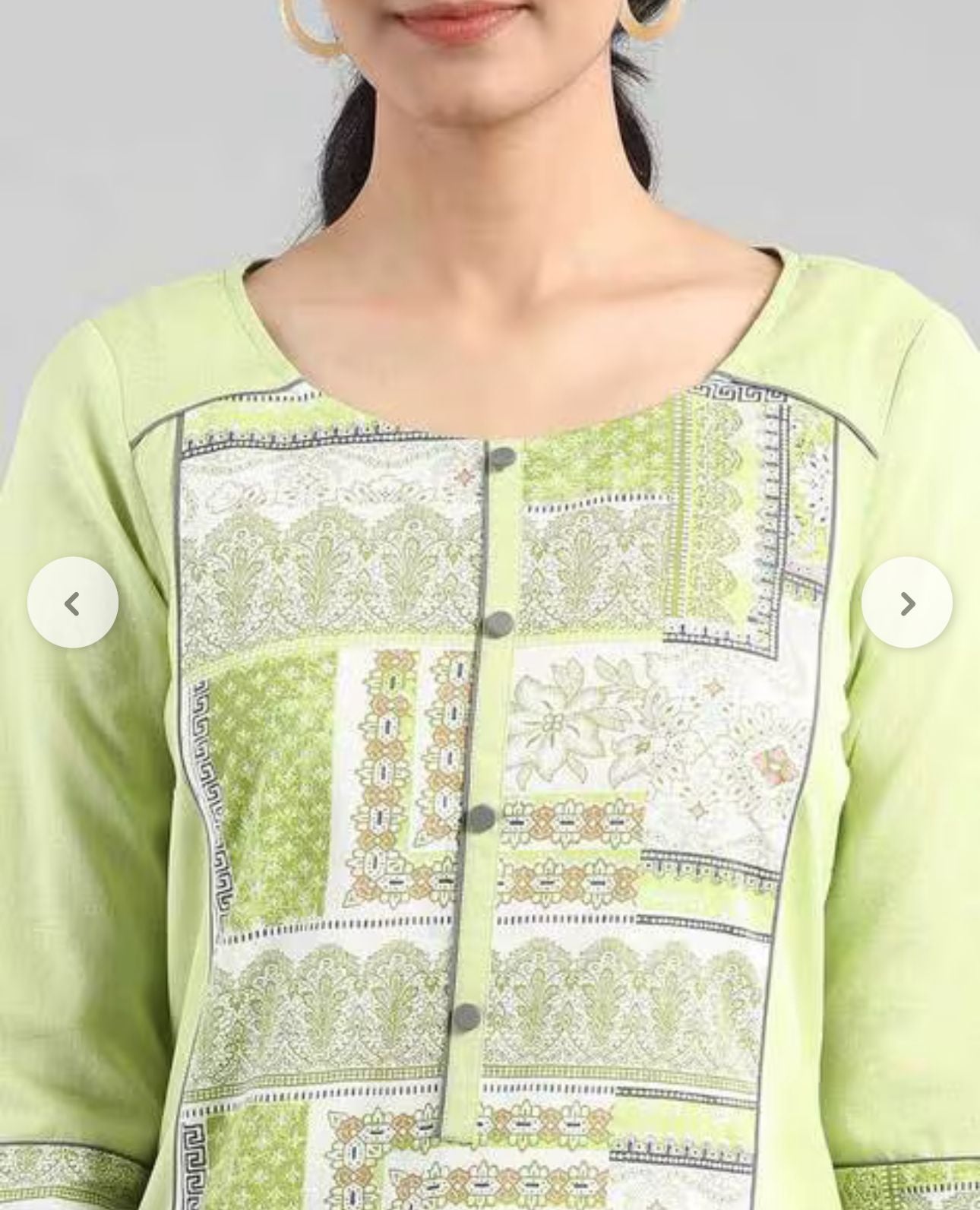 Printed Round Neck Cotton Flax Womens Kurta Set