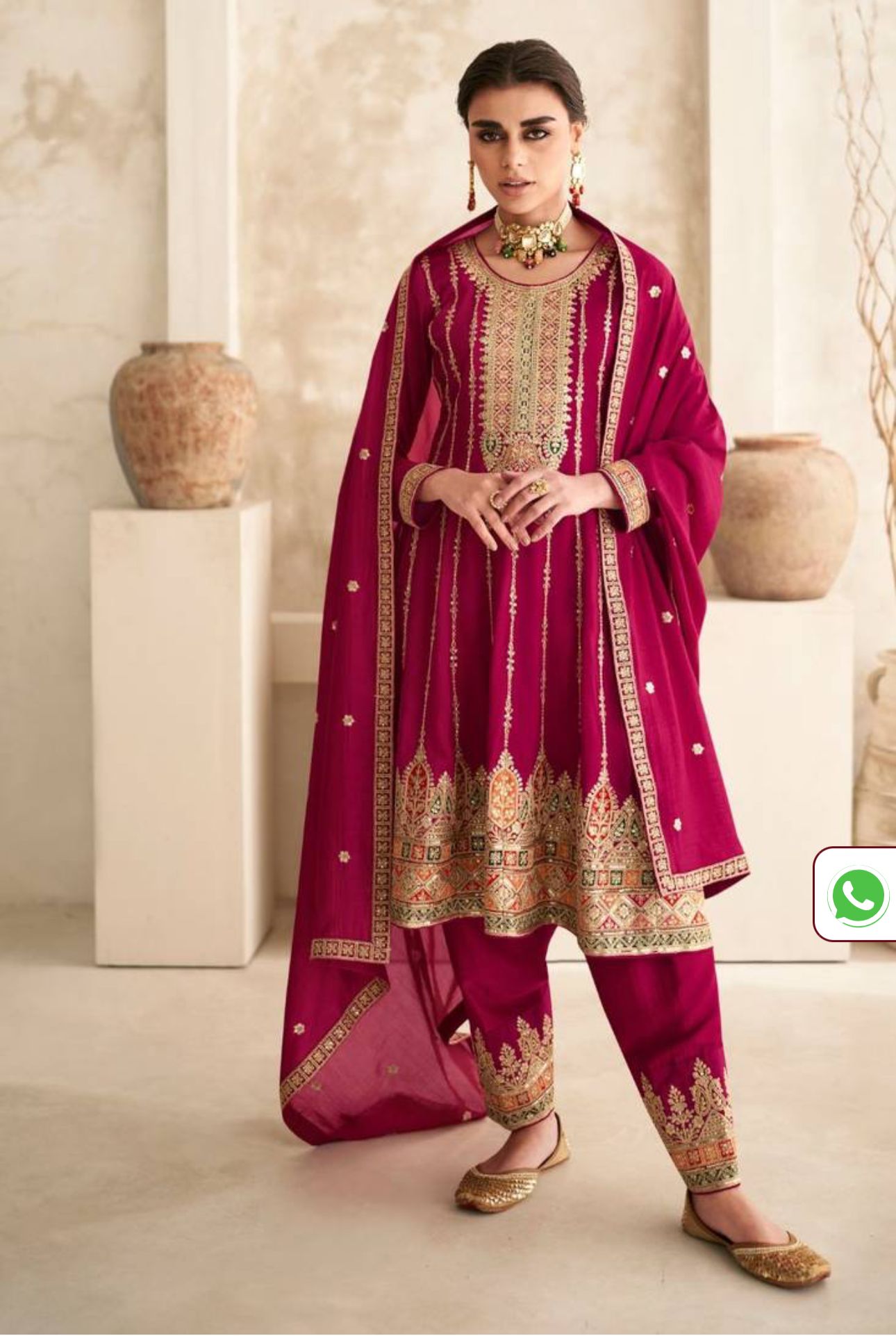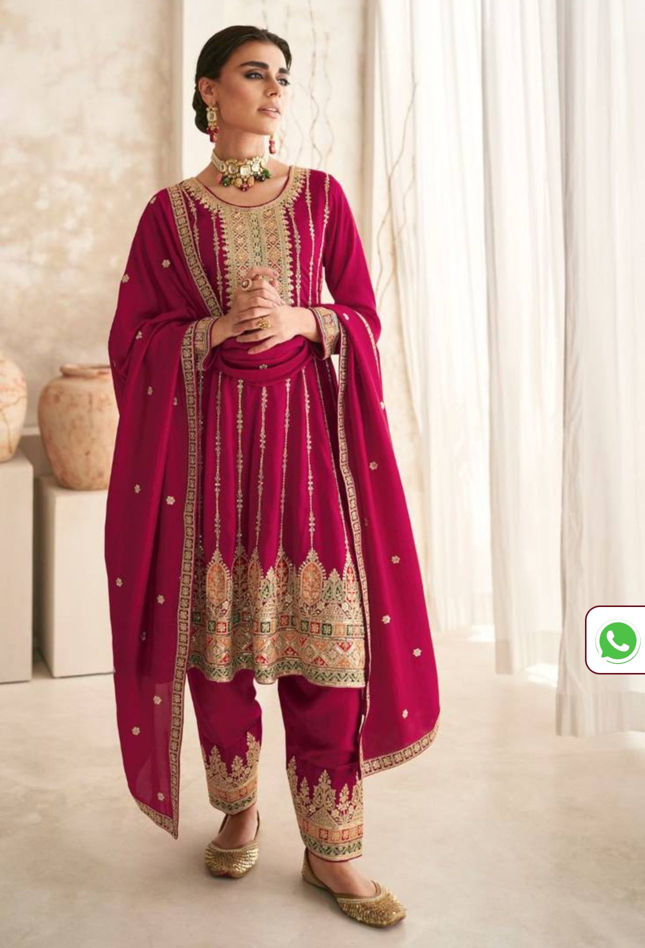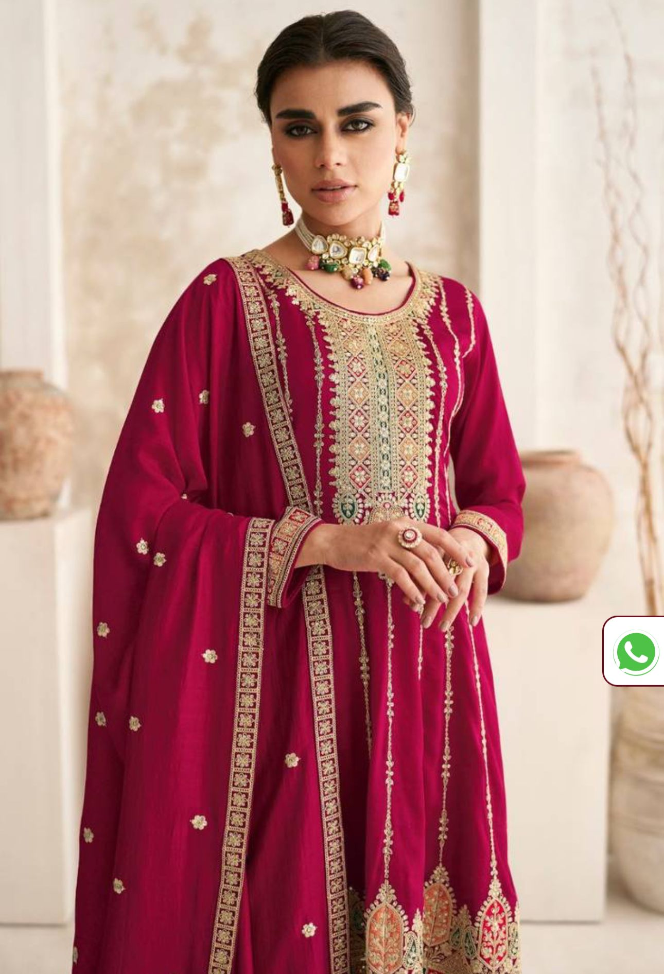 Rani Pink Thread Sequin Embroidered Silk Kurta Set