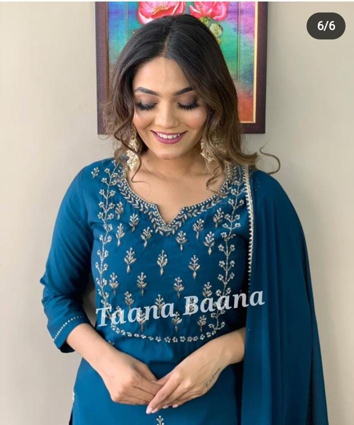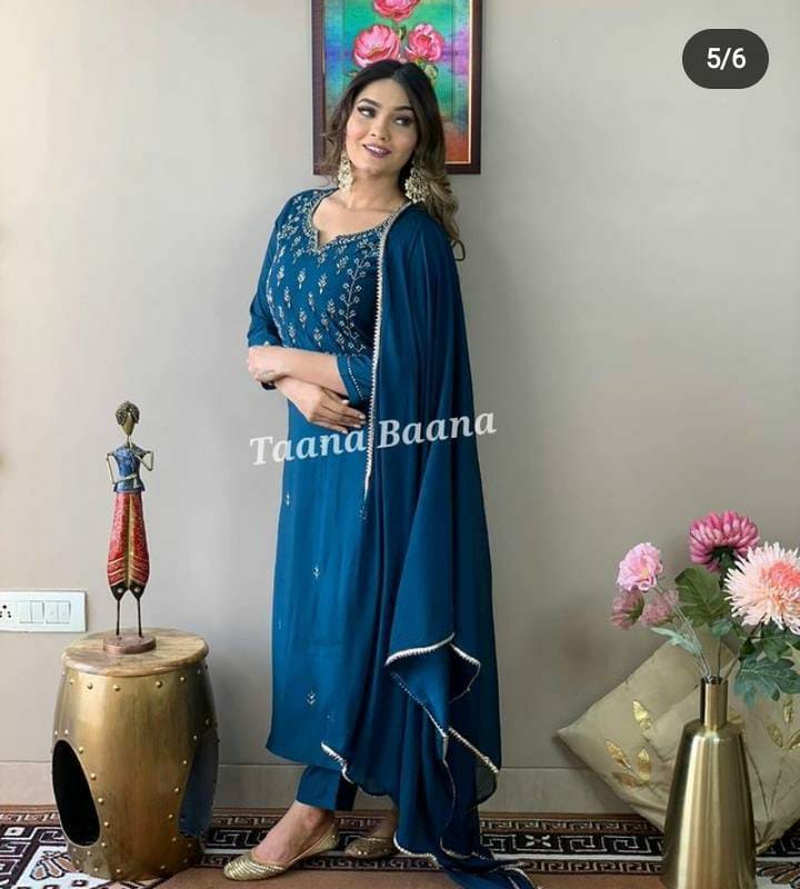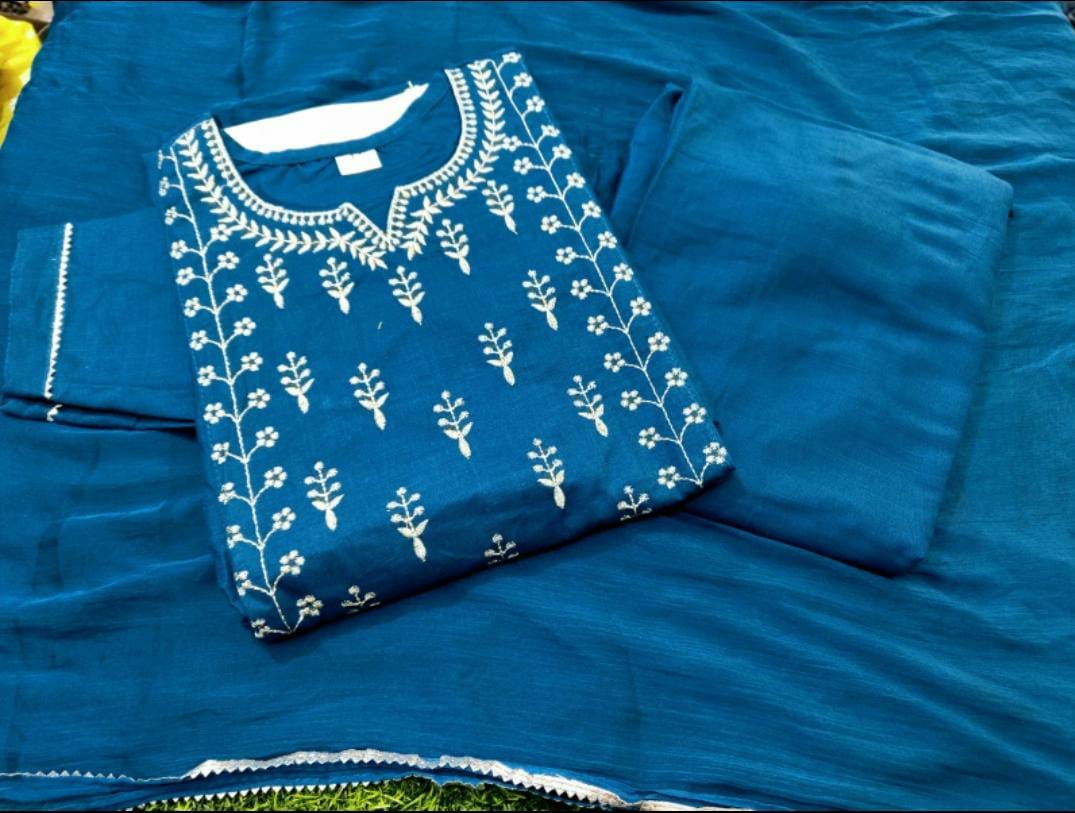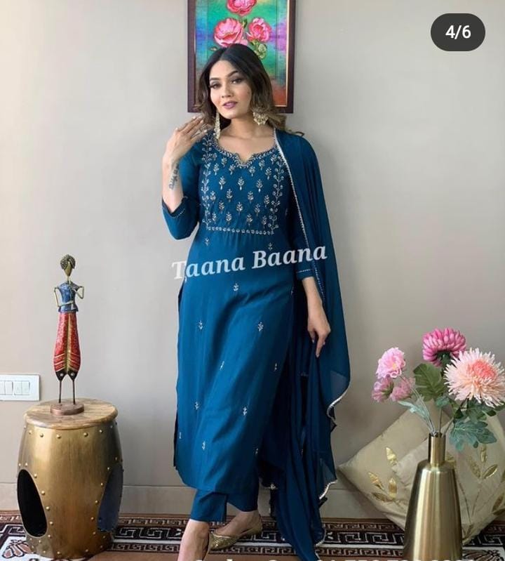 Rayon Slub Kurti with sliver thread work with Pant and Dupatta