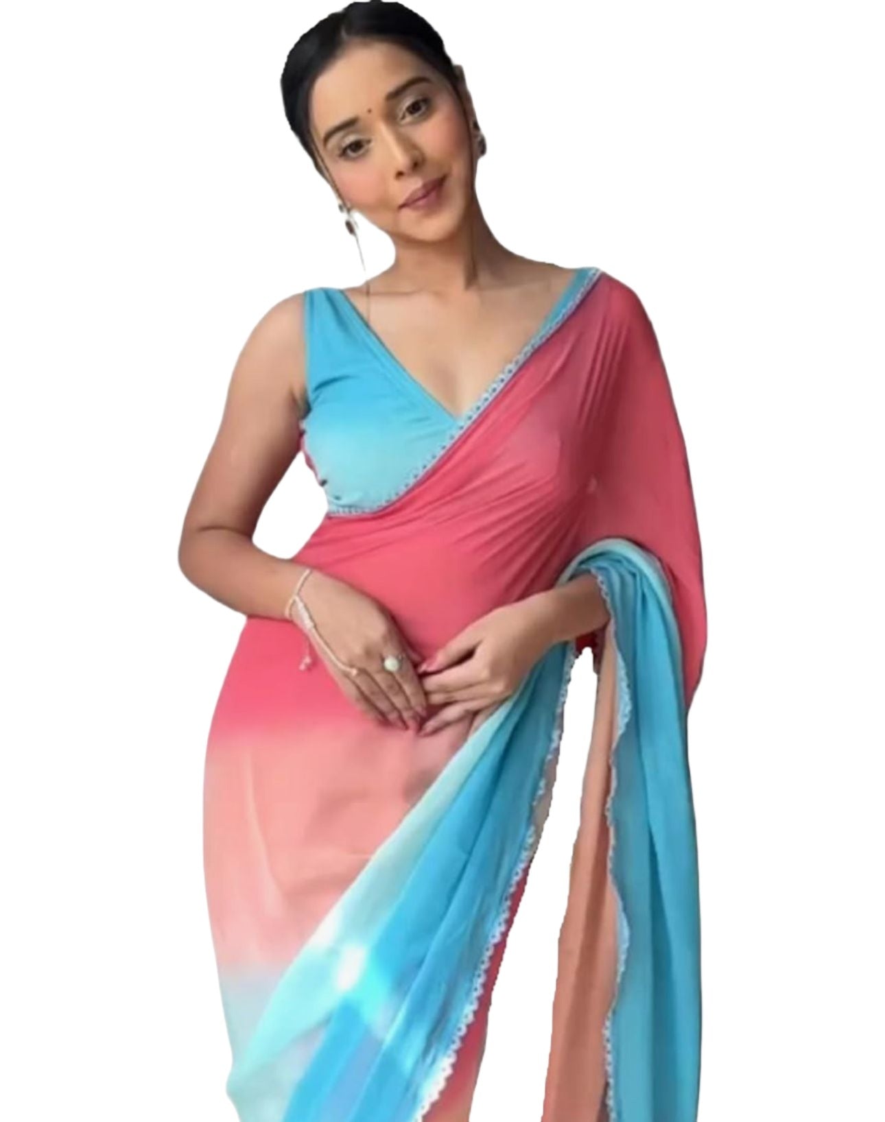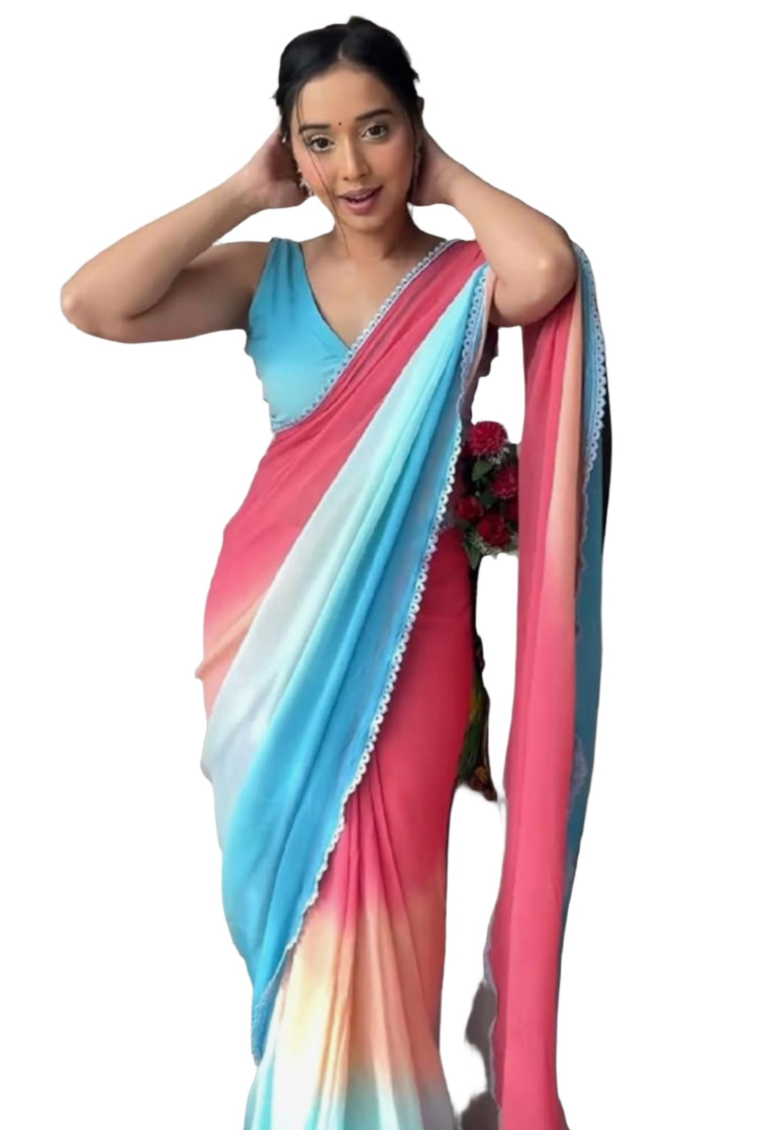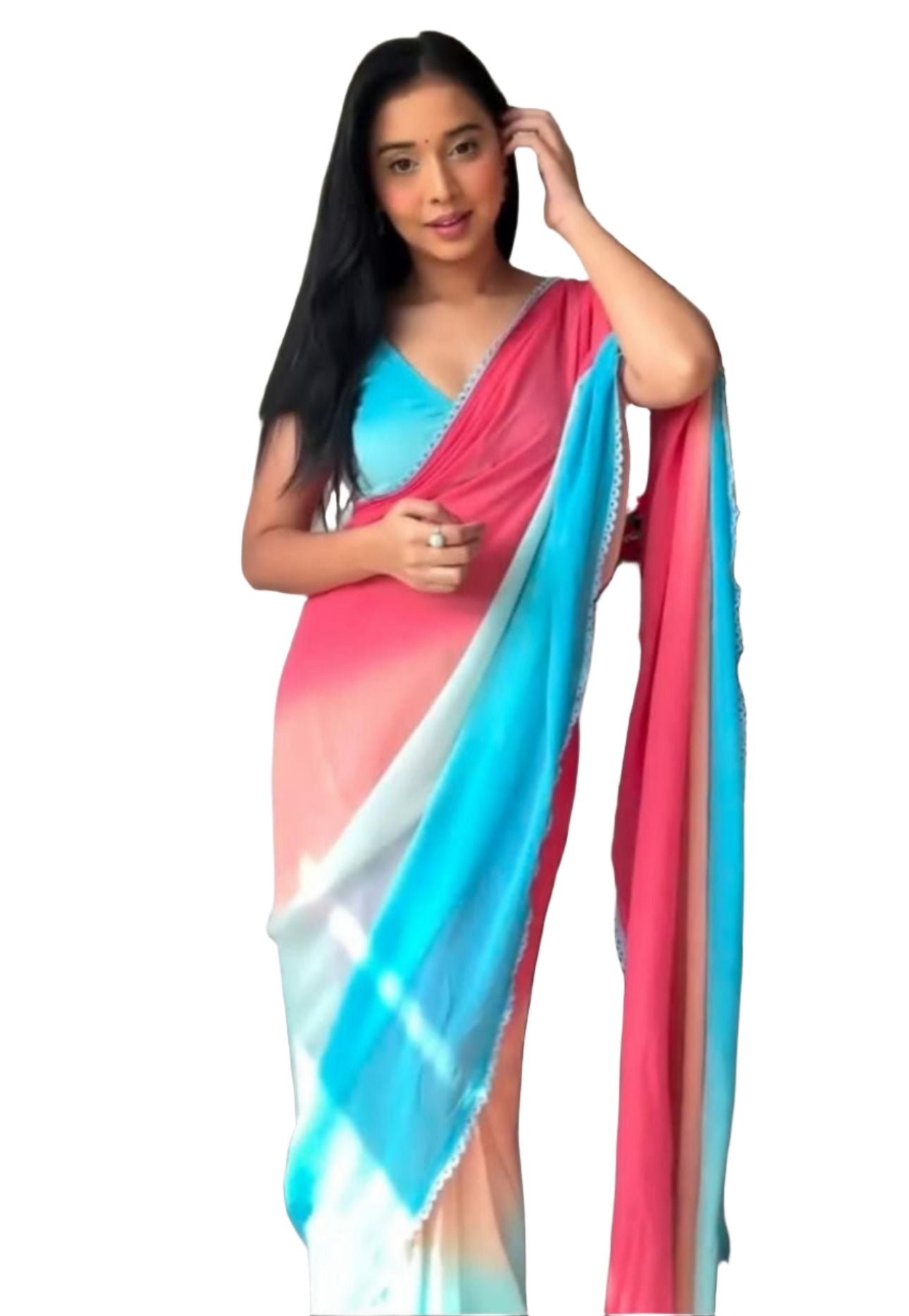 Women's Ready to Wear Soft Pure Georgette 1 Minute Pre Pleated Saree with Unstitched Blouse (Multi Color)