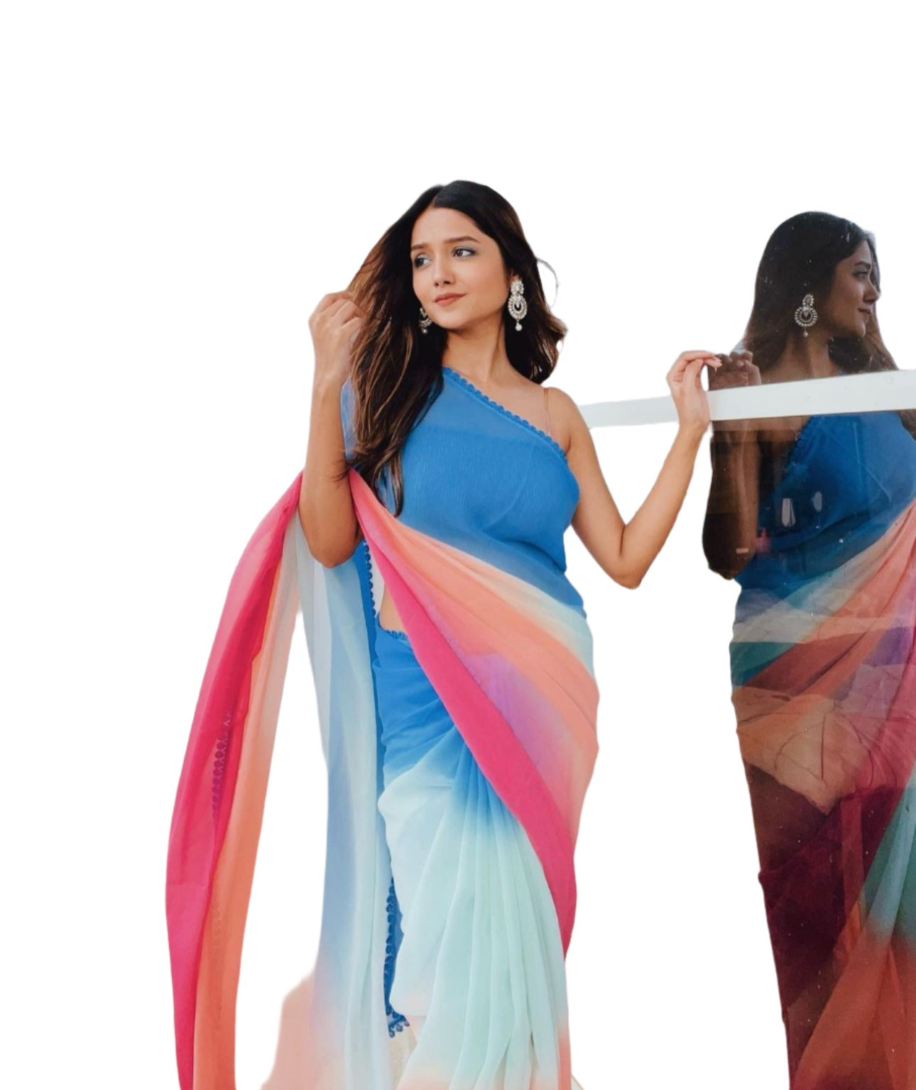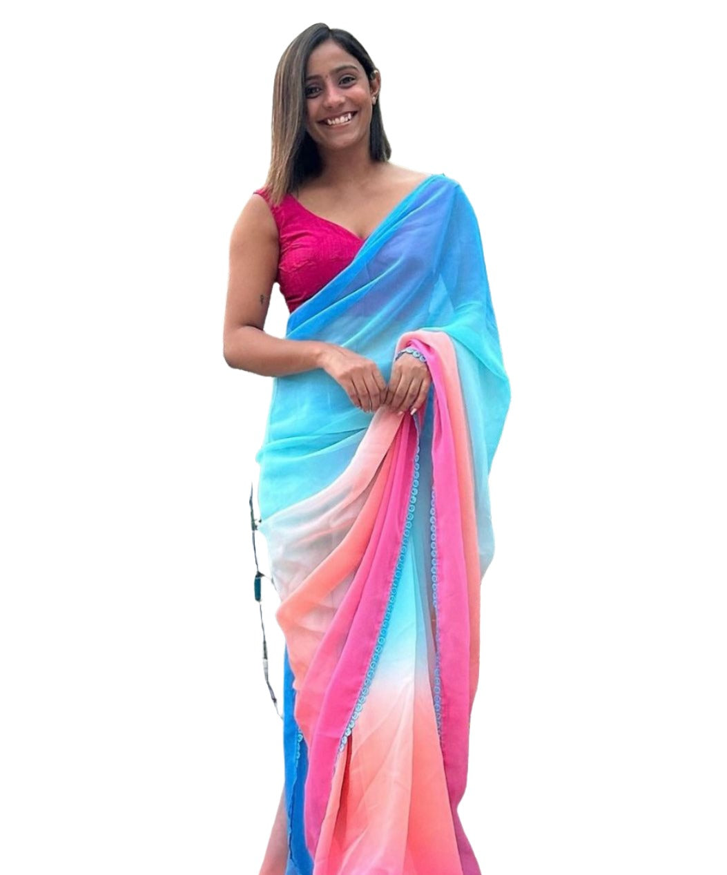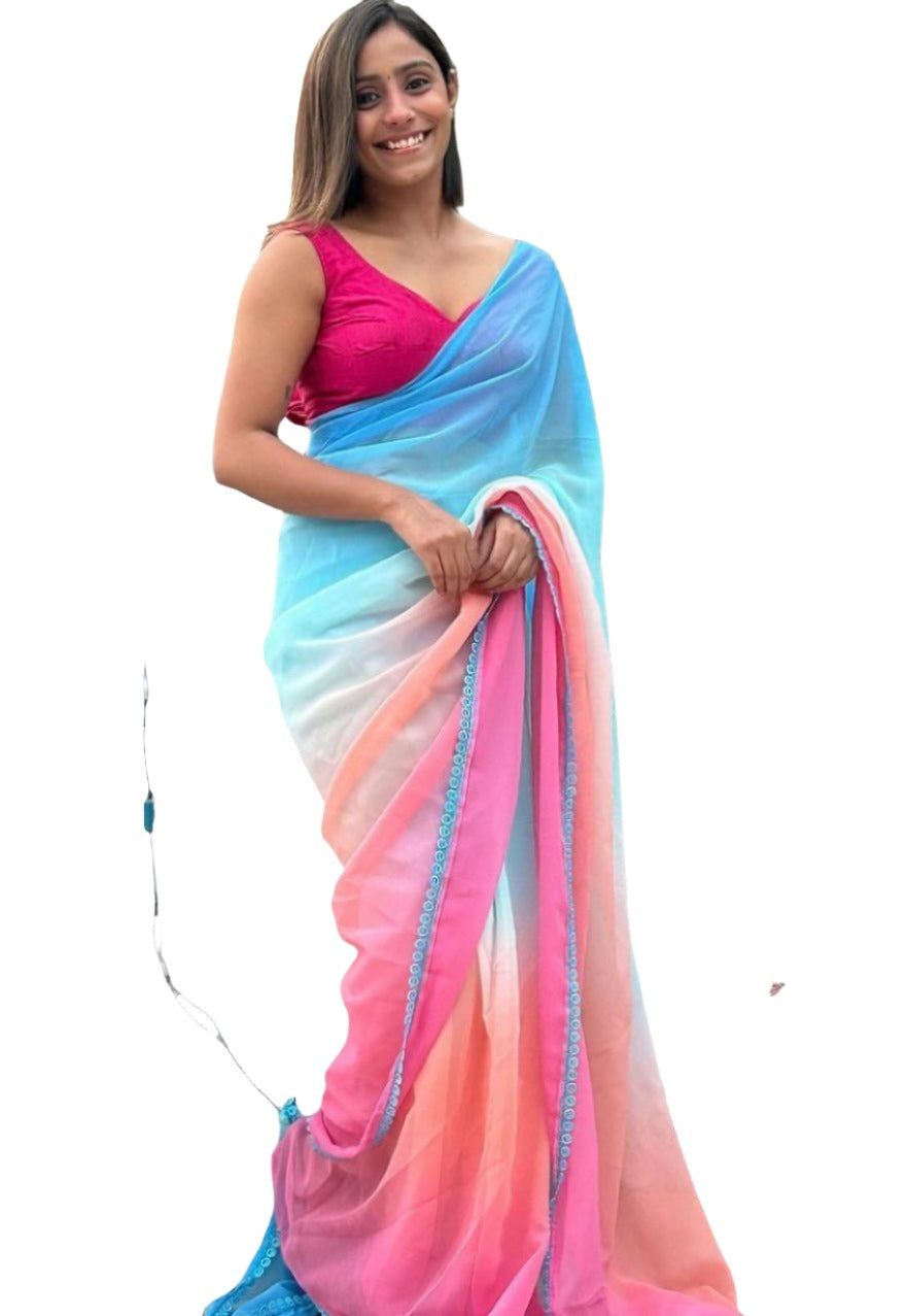 Women's Ready to Wear Soft Pure Georgette 1 Minute Pre Pleated Saree with Unstitched Blouse (Multi Color)
