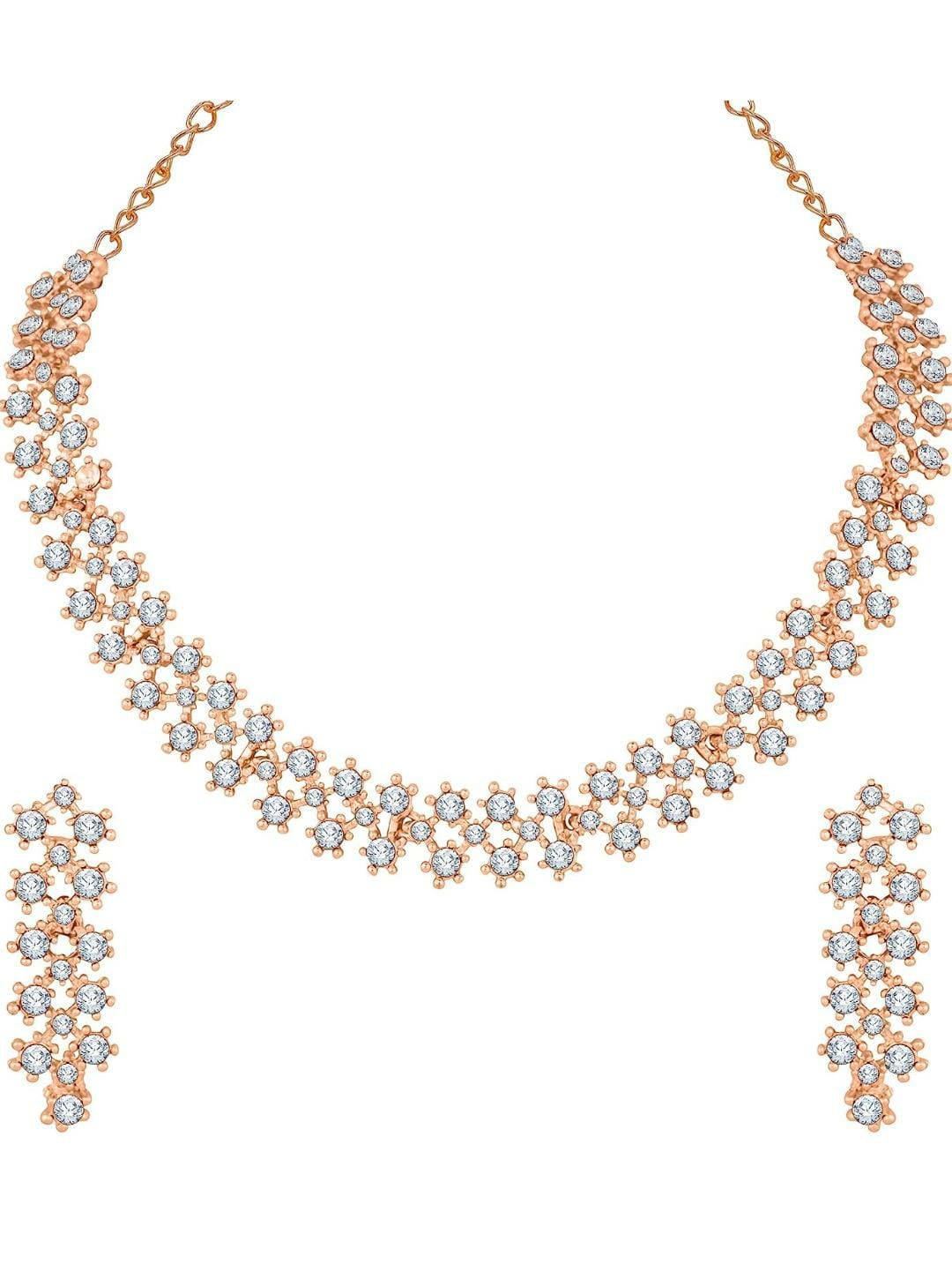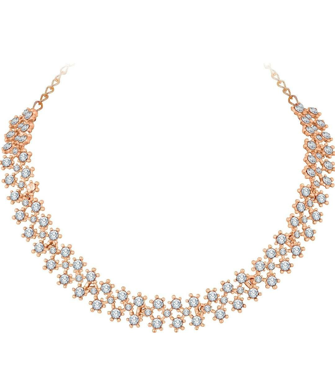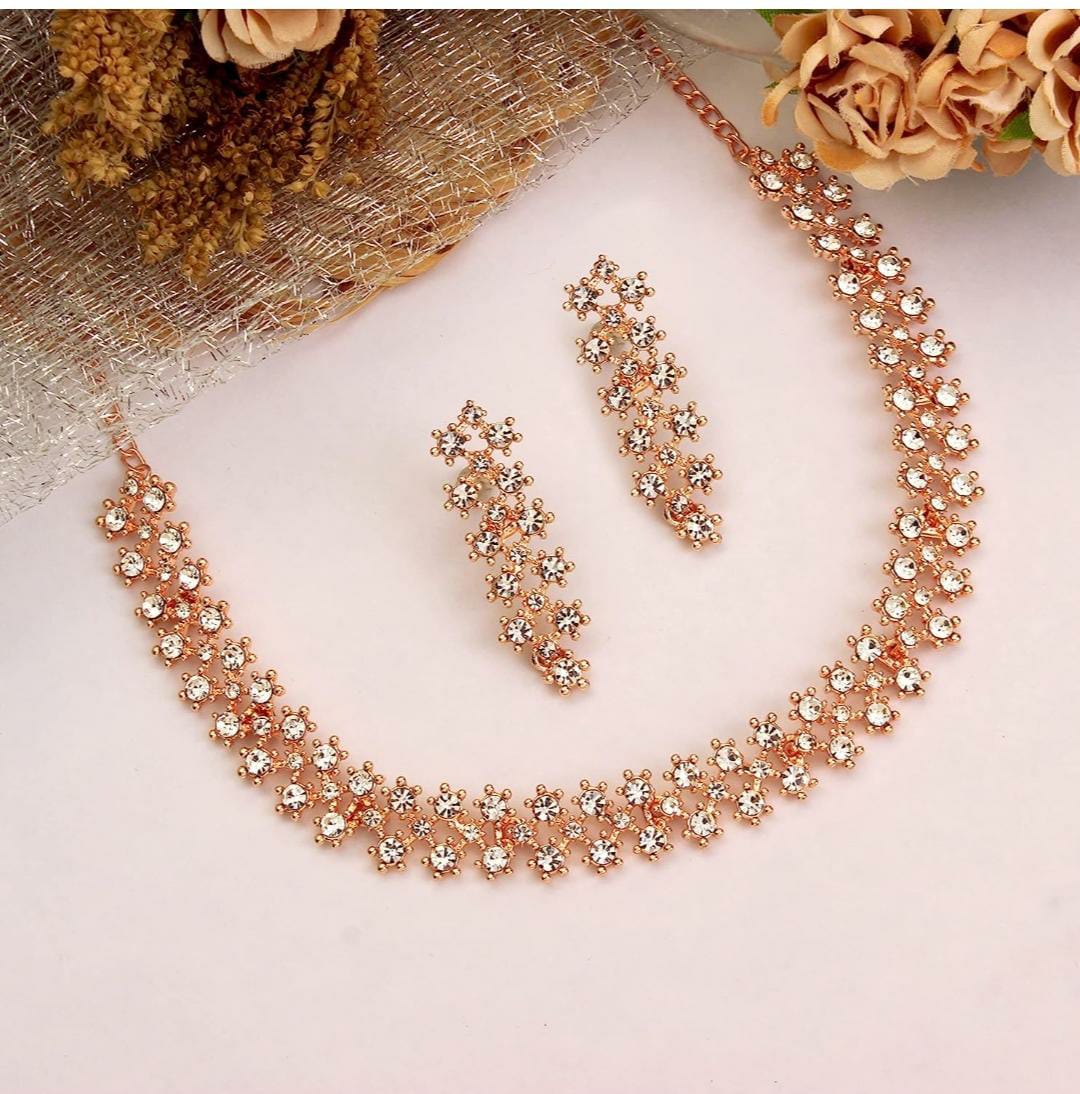 Rose Gold Crystal AD Diamond Necklace Jewellery Set with Earrings for Women and Girls Suits Best Party, Wedding and Occasional Wear