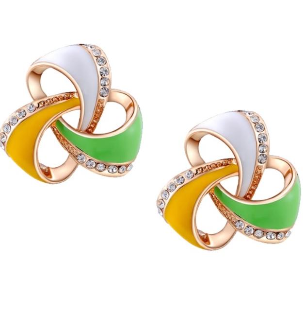 Rose Golden Plated Stone On Tricolor Fancy Stud Earrings in Germany