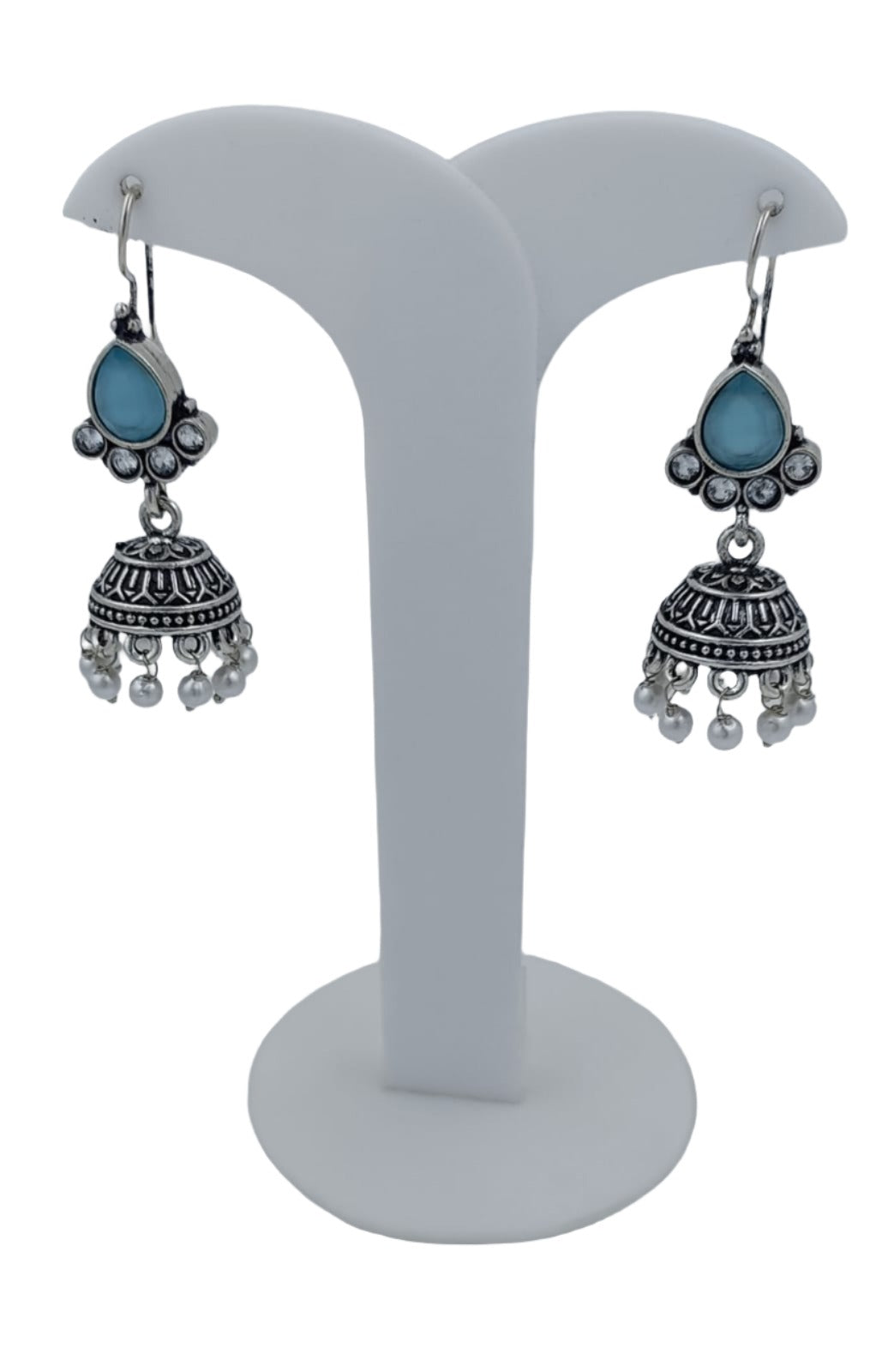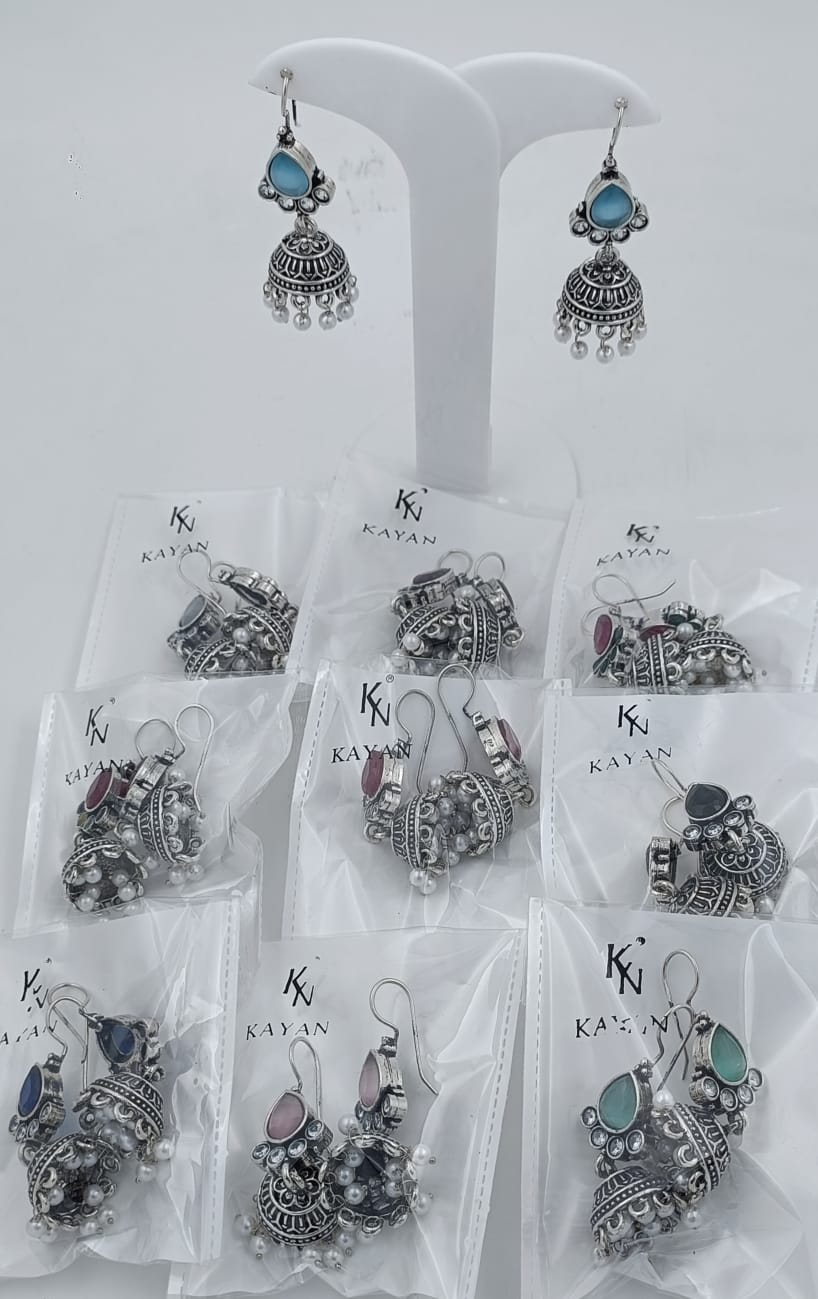 Silver Plated Stone Earrings Brass Jhumki Earrings