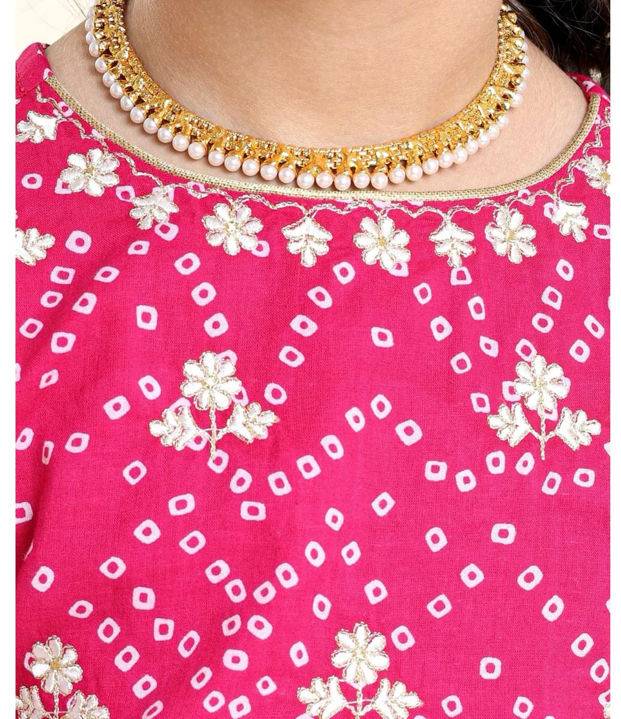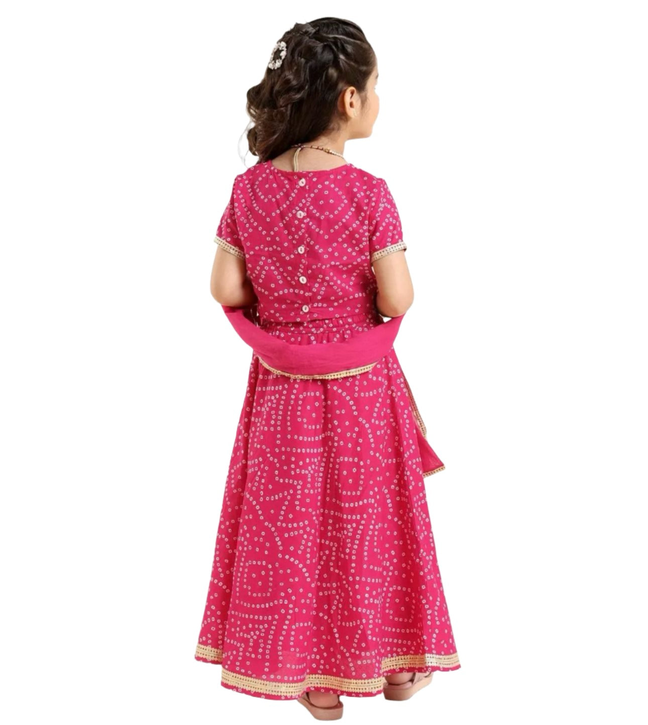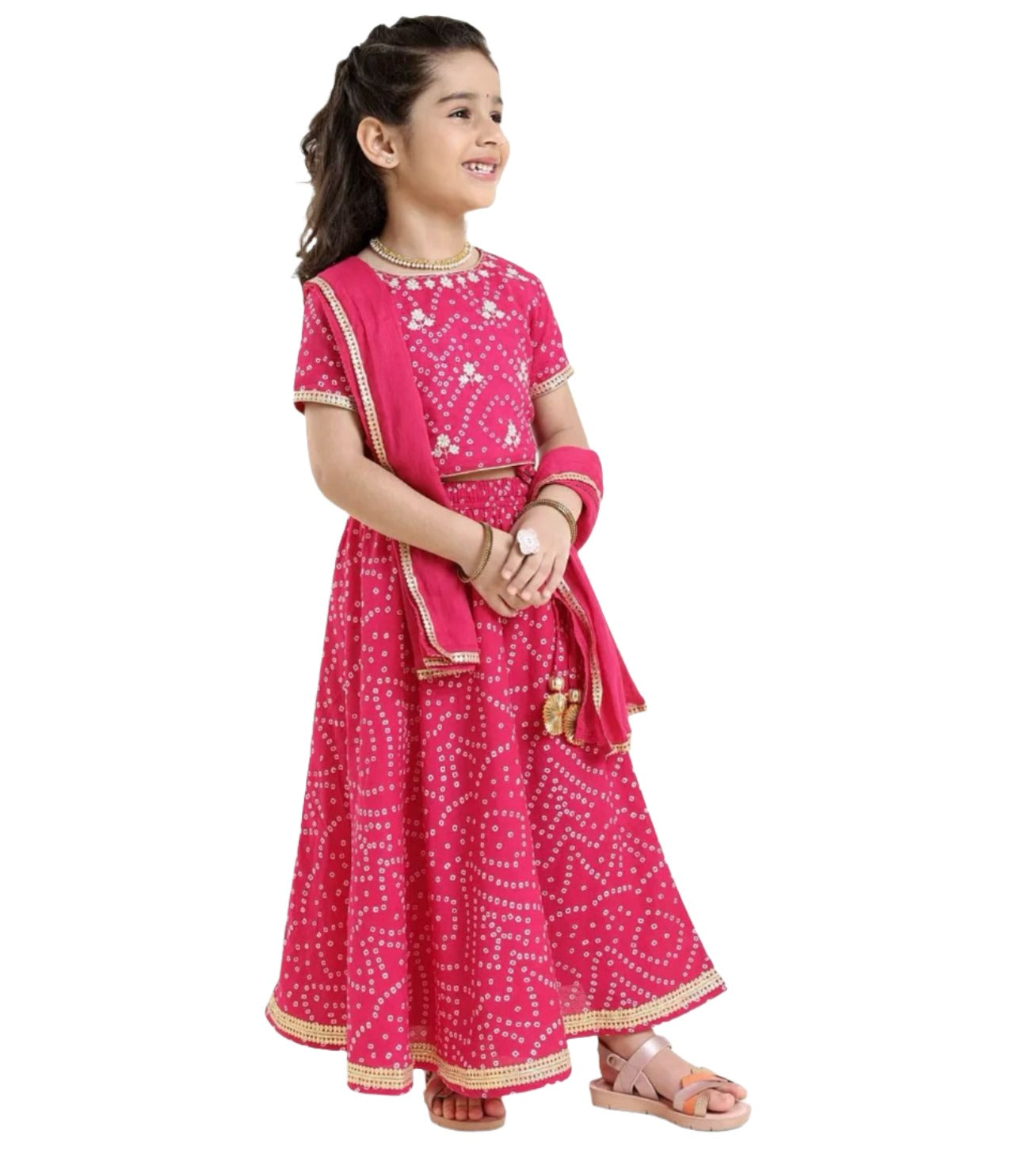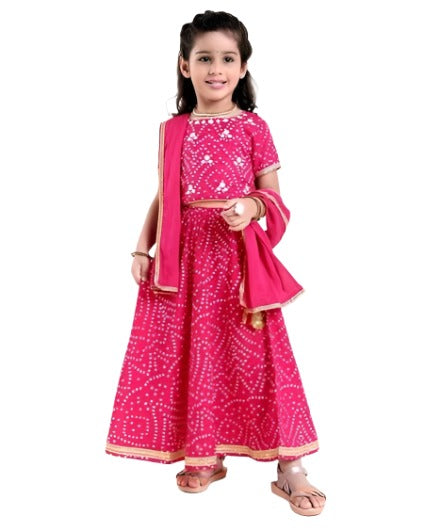 Short Sleeves Choli Lehenga Jari Border Dupatta Bandhani Print