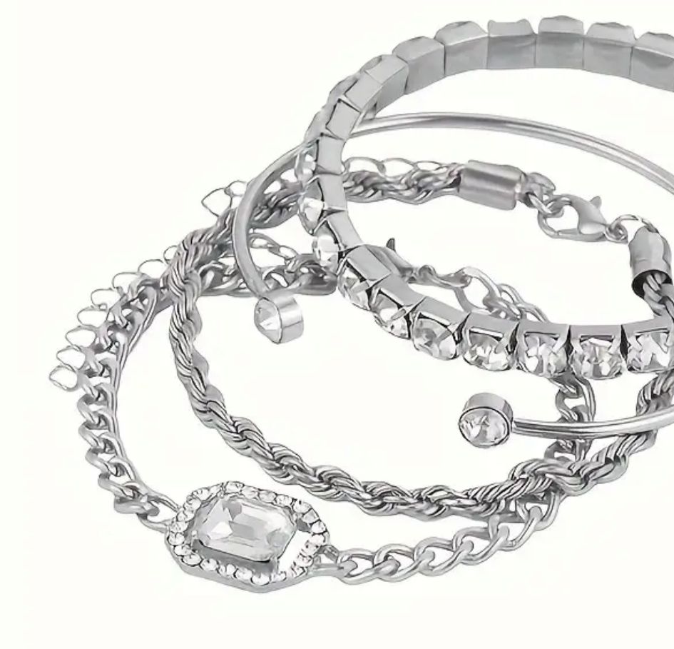 Silver-plated layered Chain Bracelet|Silver bracelets| designer wraparound of 4pcs for Women & Girls
