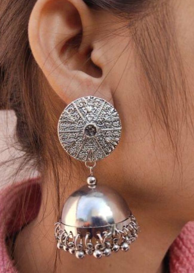 Stylish Partywear Designer Oxidized Silver Stud with Jhumka Earring for Women and Girls.