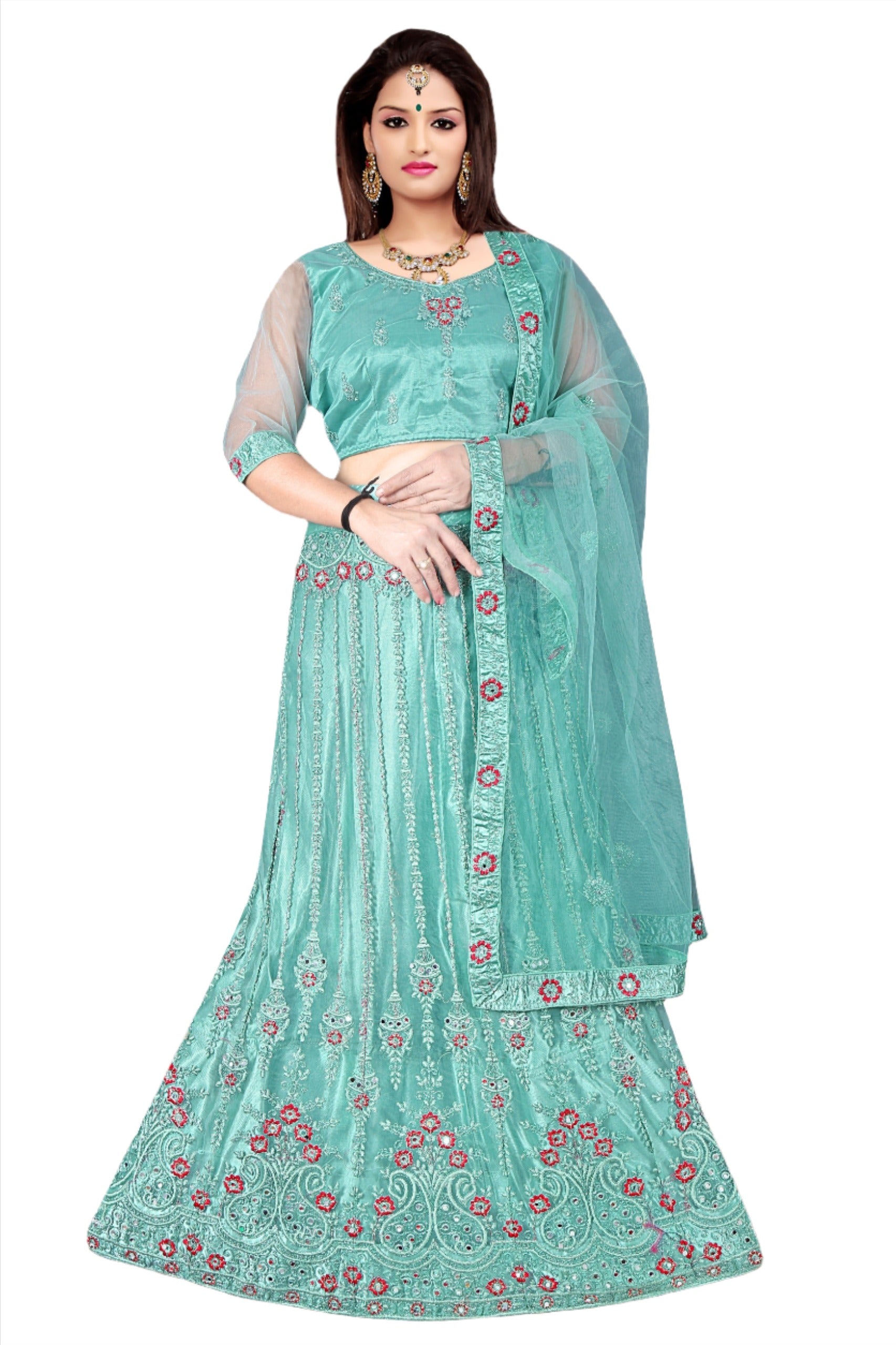 Tittle:- Complete Stitched Embroidered Lehenga Choli In Germany (Sea Green)/Bridal Lehenga In Germany