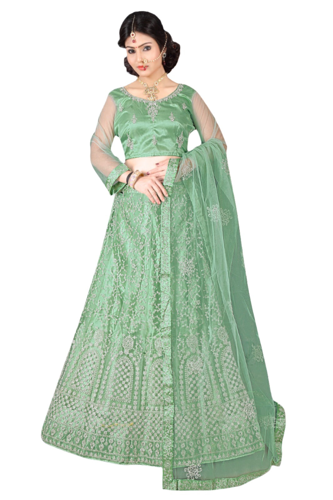 Tittle:- Complete Stitched Embroidered Lehenga Choli In Germany (Sea Green )/Bridal Lehenga In Germany