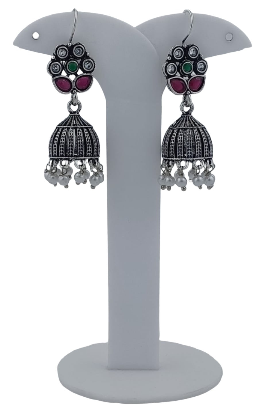 Floral Fusion Oxidized Pearl Jhumki Earrings in Berlin