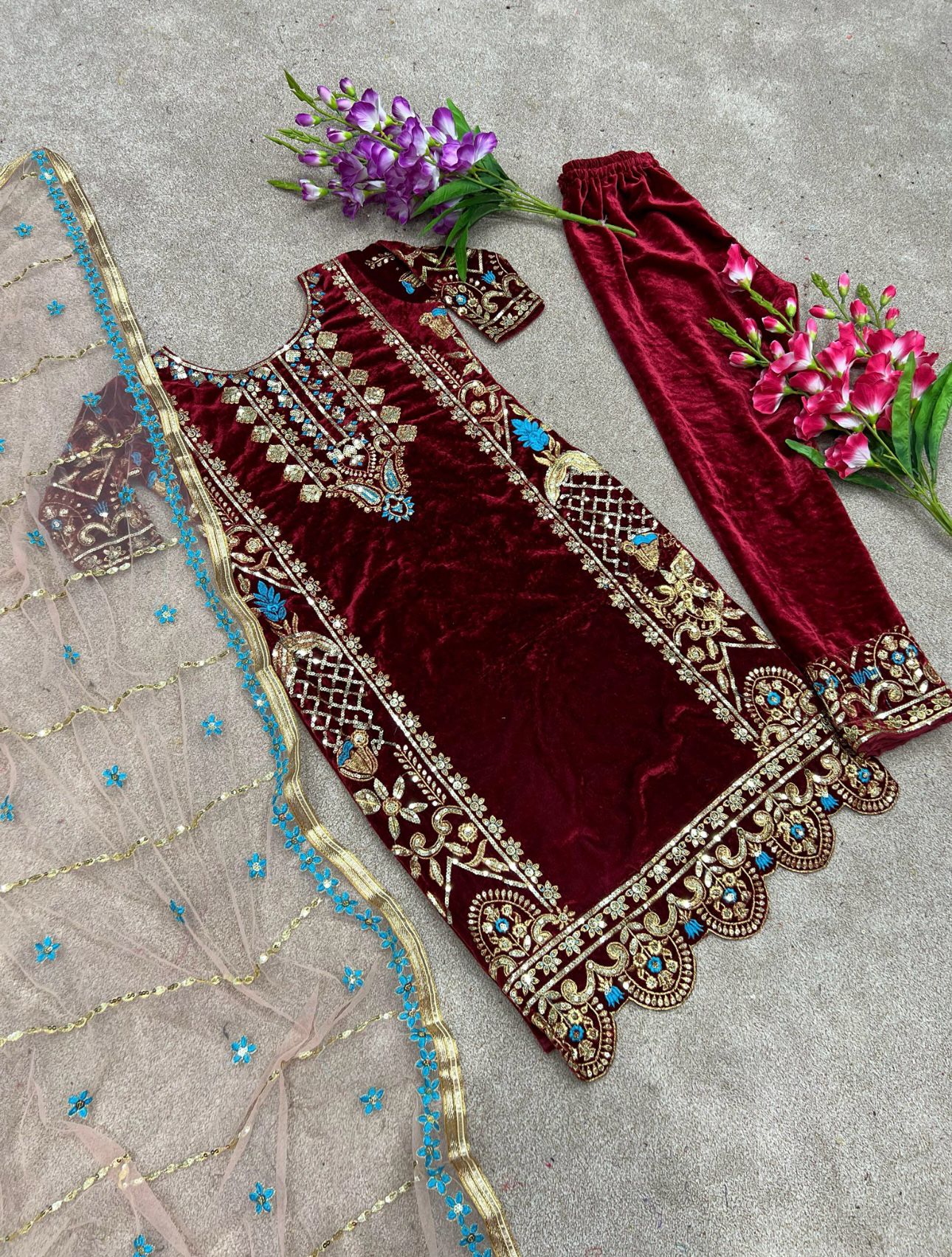 👗 Bottom Fabric : Viscose Velvet with Embroidery sequence work( *Full Stiched l)