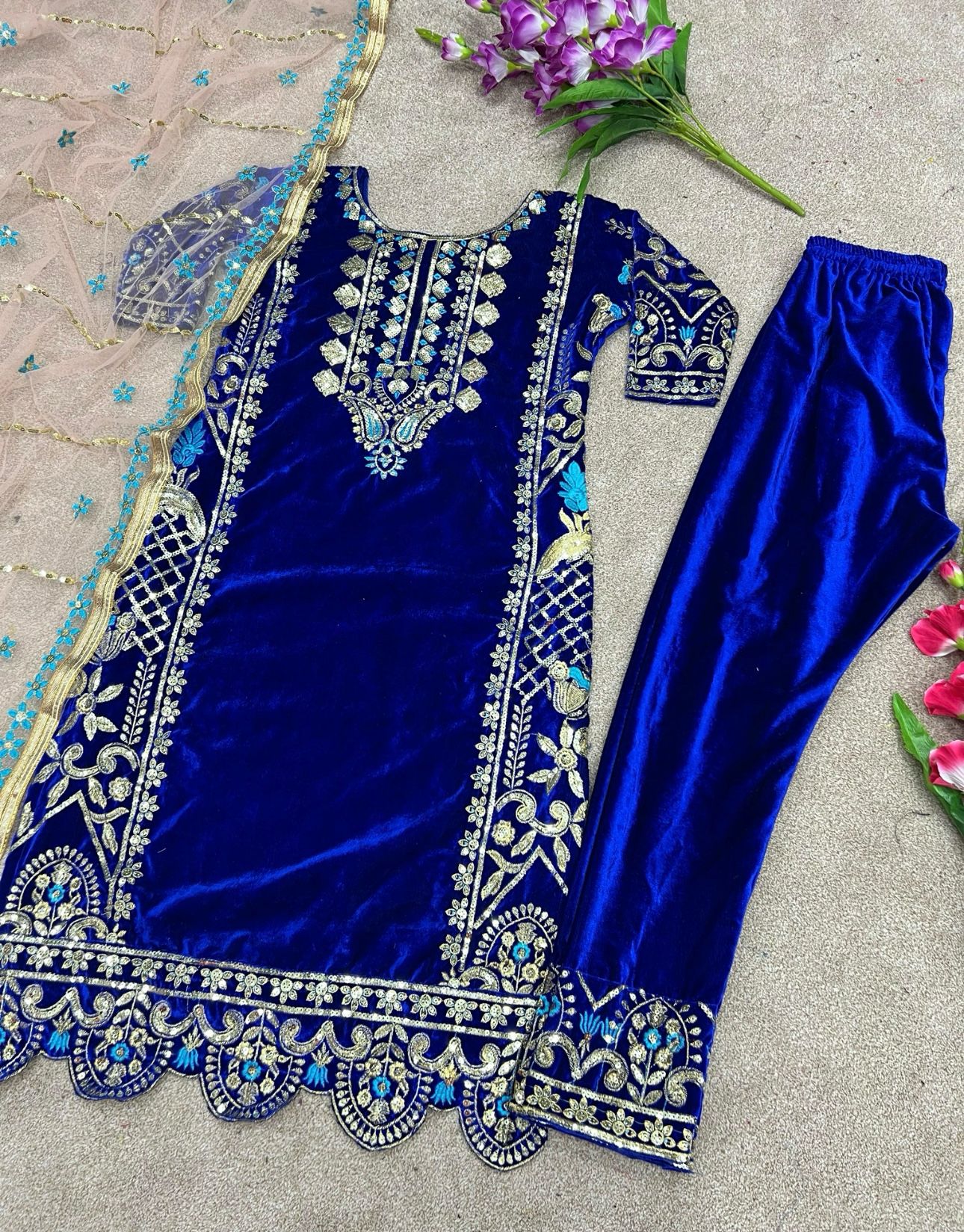 👗 Bottom Fabric : Viscose Velvet with Embroidery sequence work( *Full Stiched l)