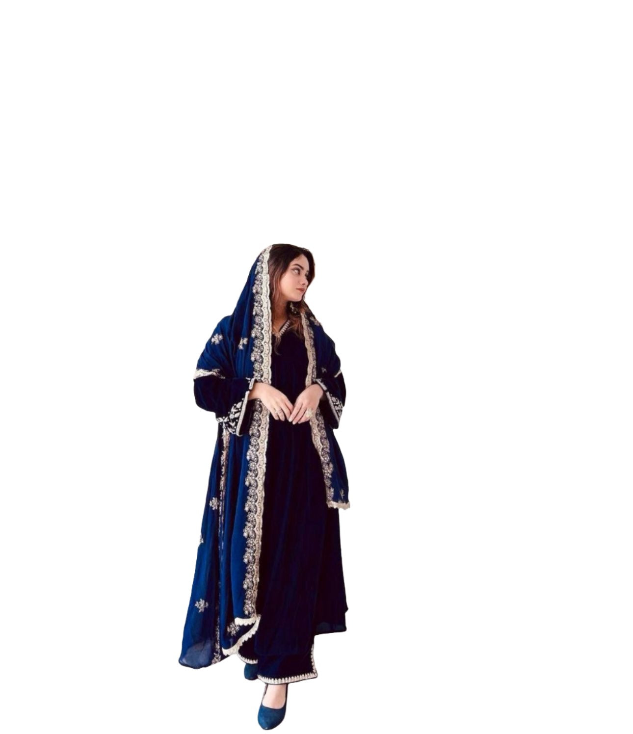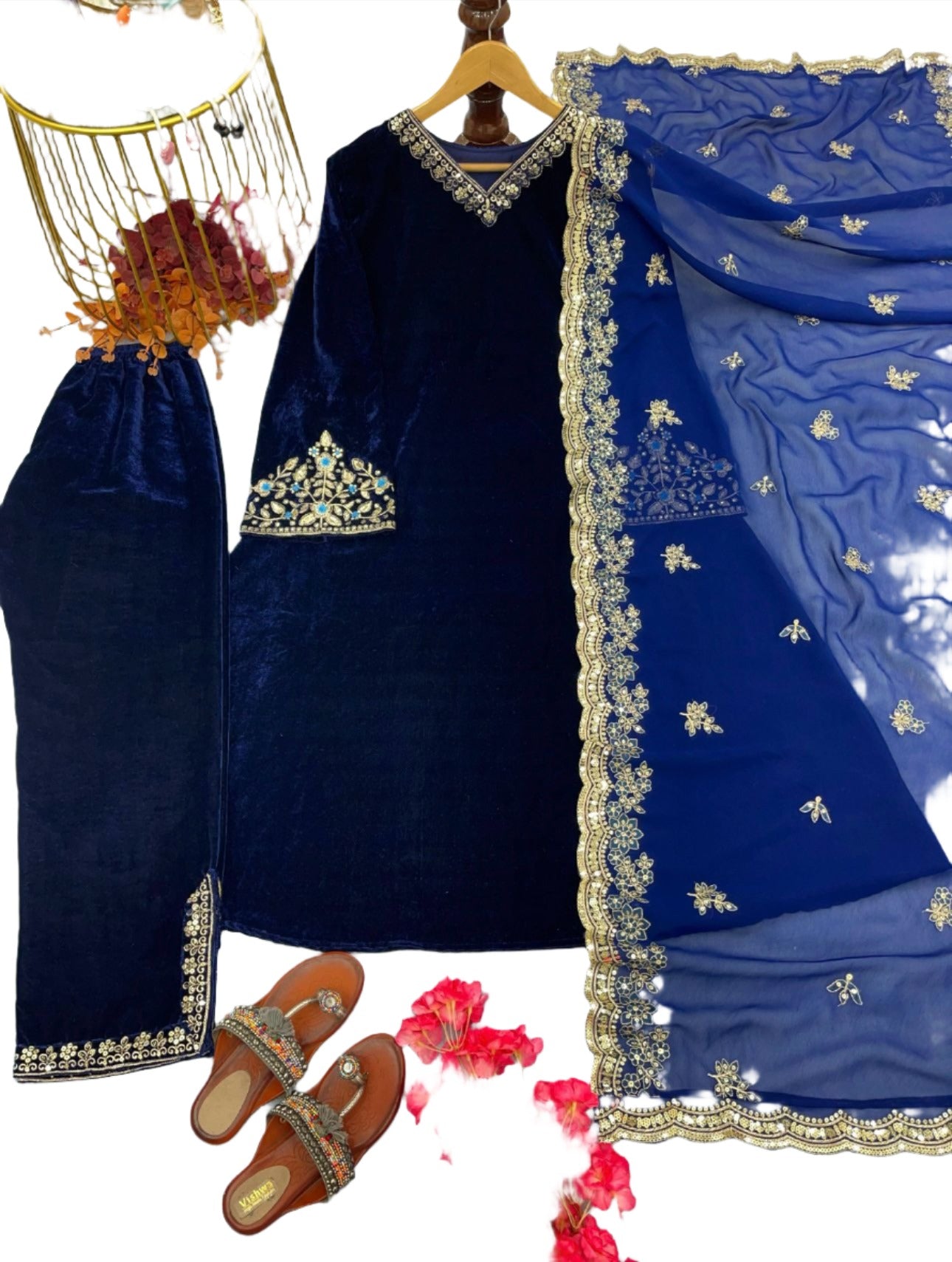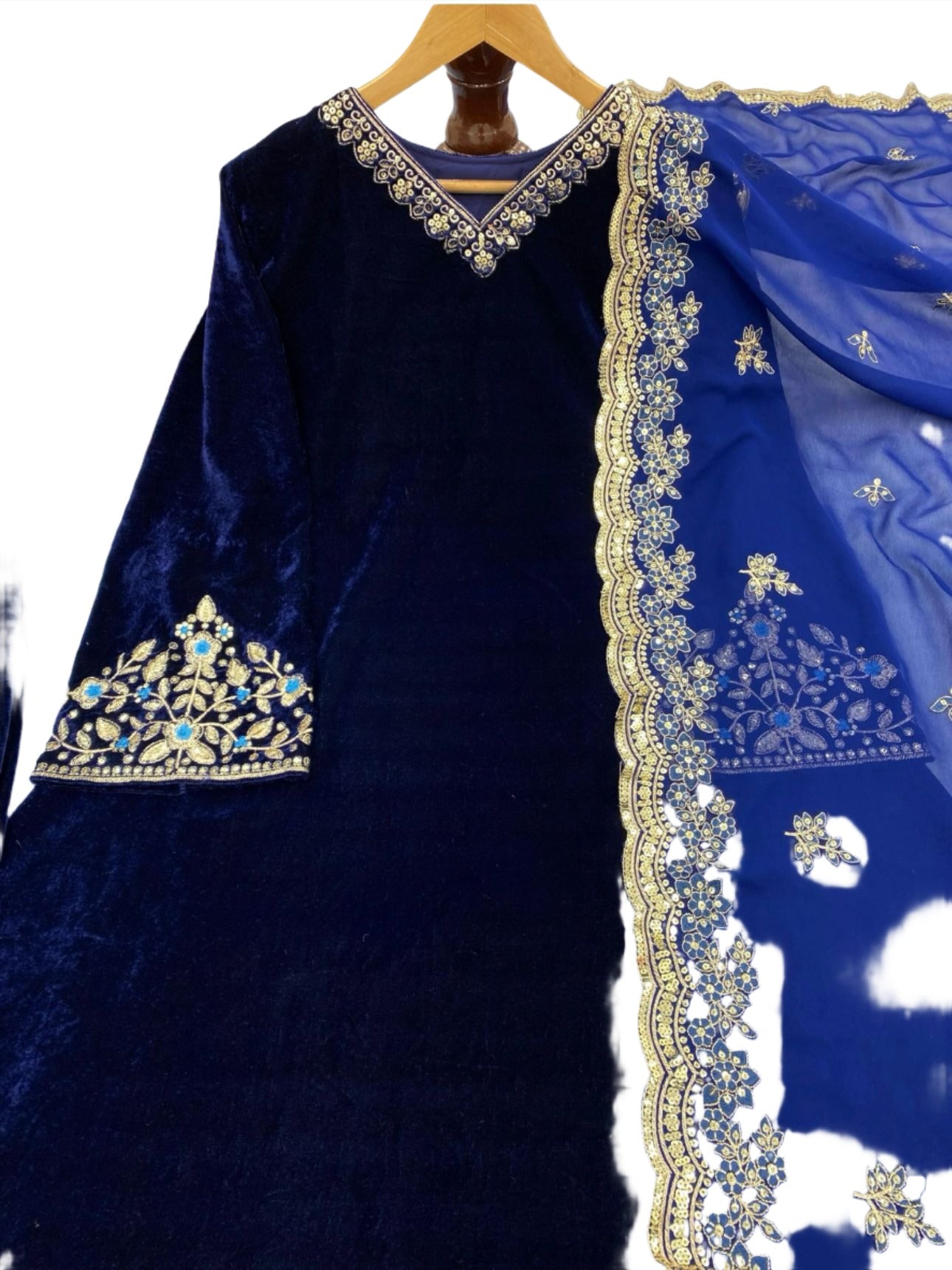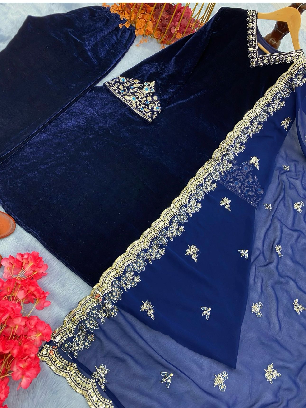 👉🧚♀️ Top Fabric:Heavy Pure Viscose Velvet With Embroidery 5 mm Sequence Work With Fancy Bell Sleeve