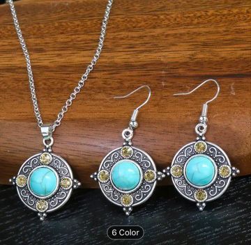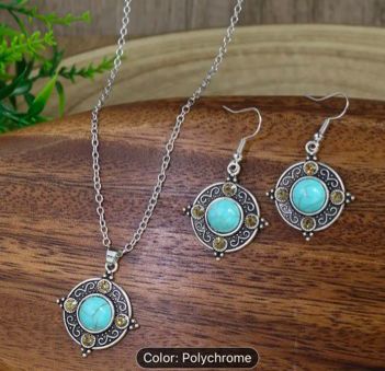 Vintage Round Silver Charm Geometric Pattern Earrings Necklace Set in Berlin