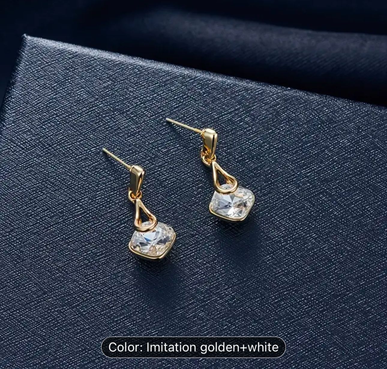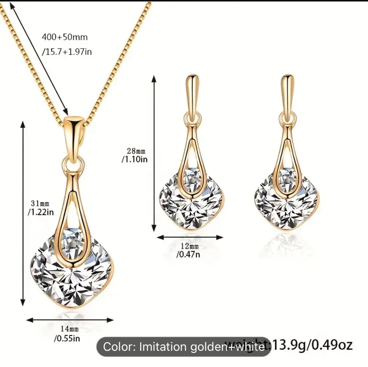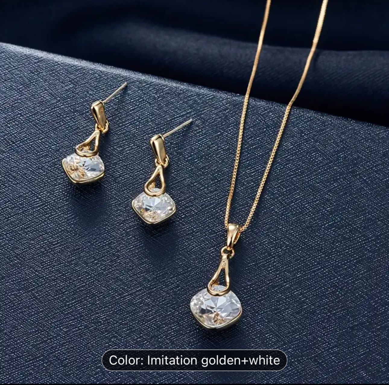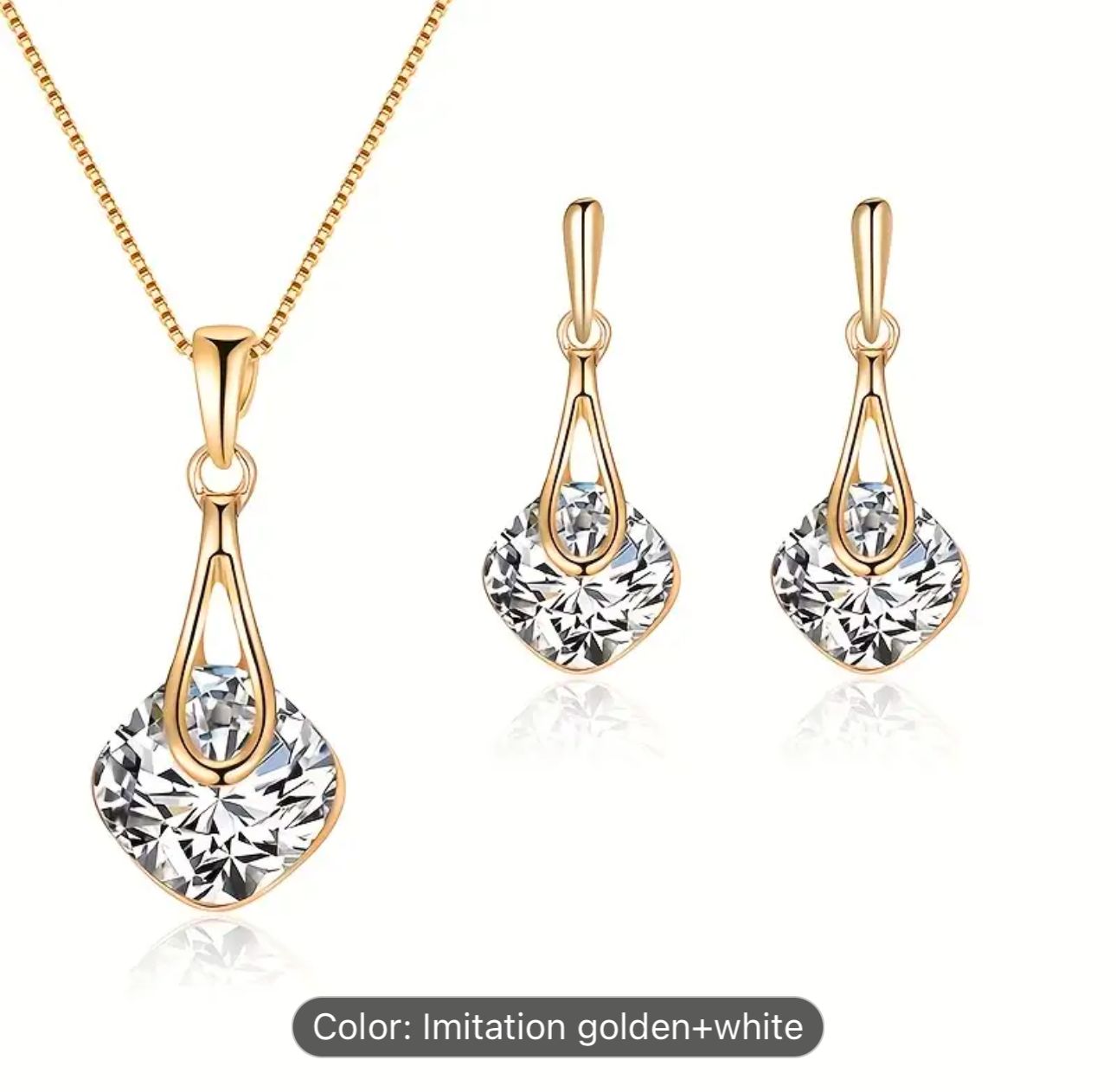 Water Drop Pendant Square Rhinestone Ear Stud Earrings Necklace in Berlin