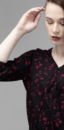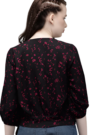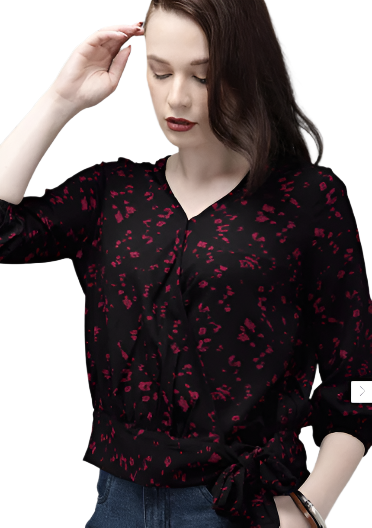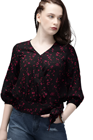 Women Black Abstract Printed Waist Tie-Up Knitted Wrap Top in Germany