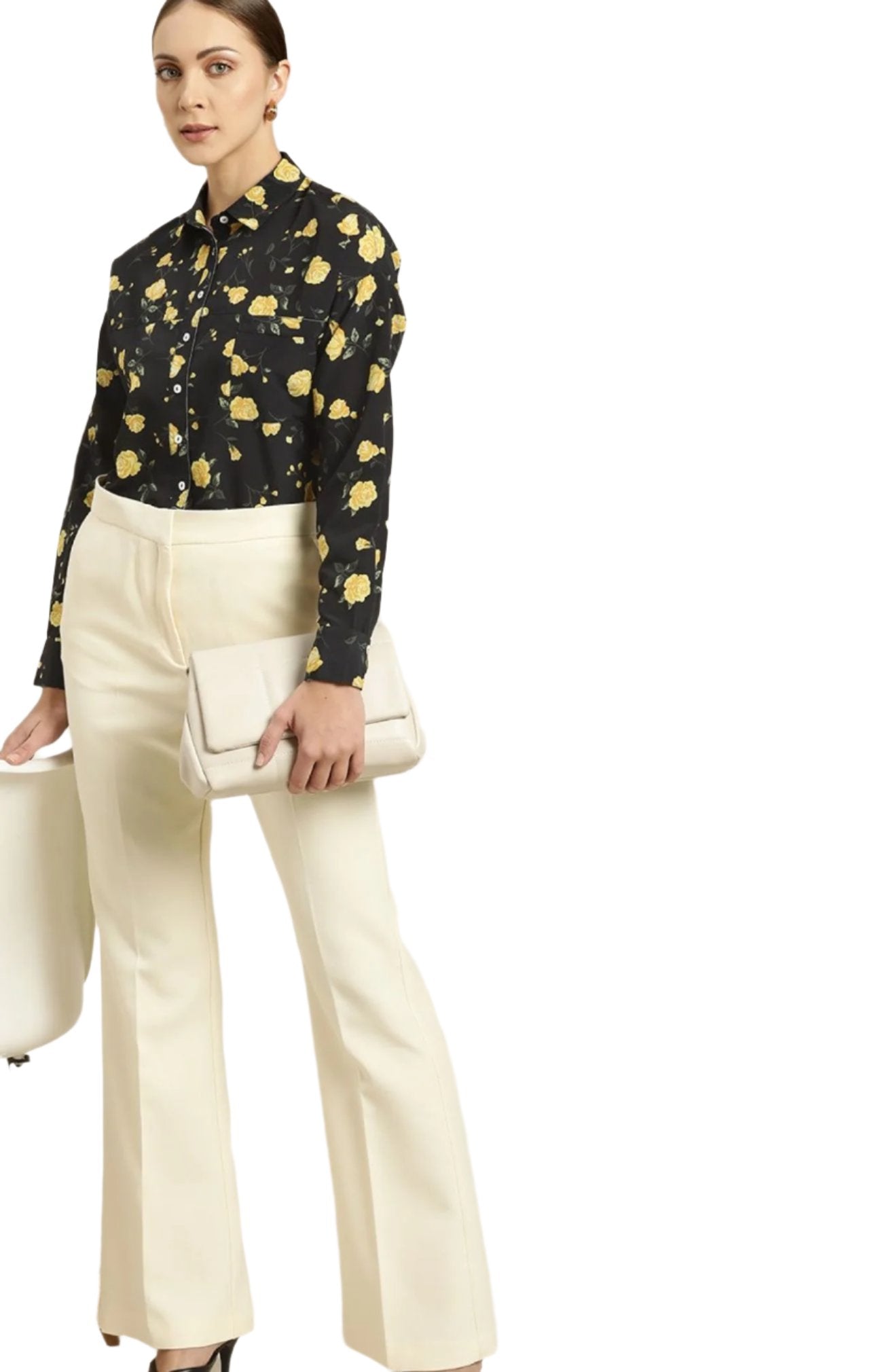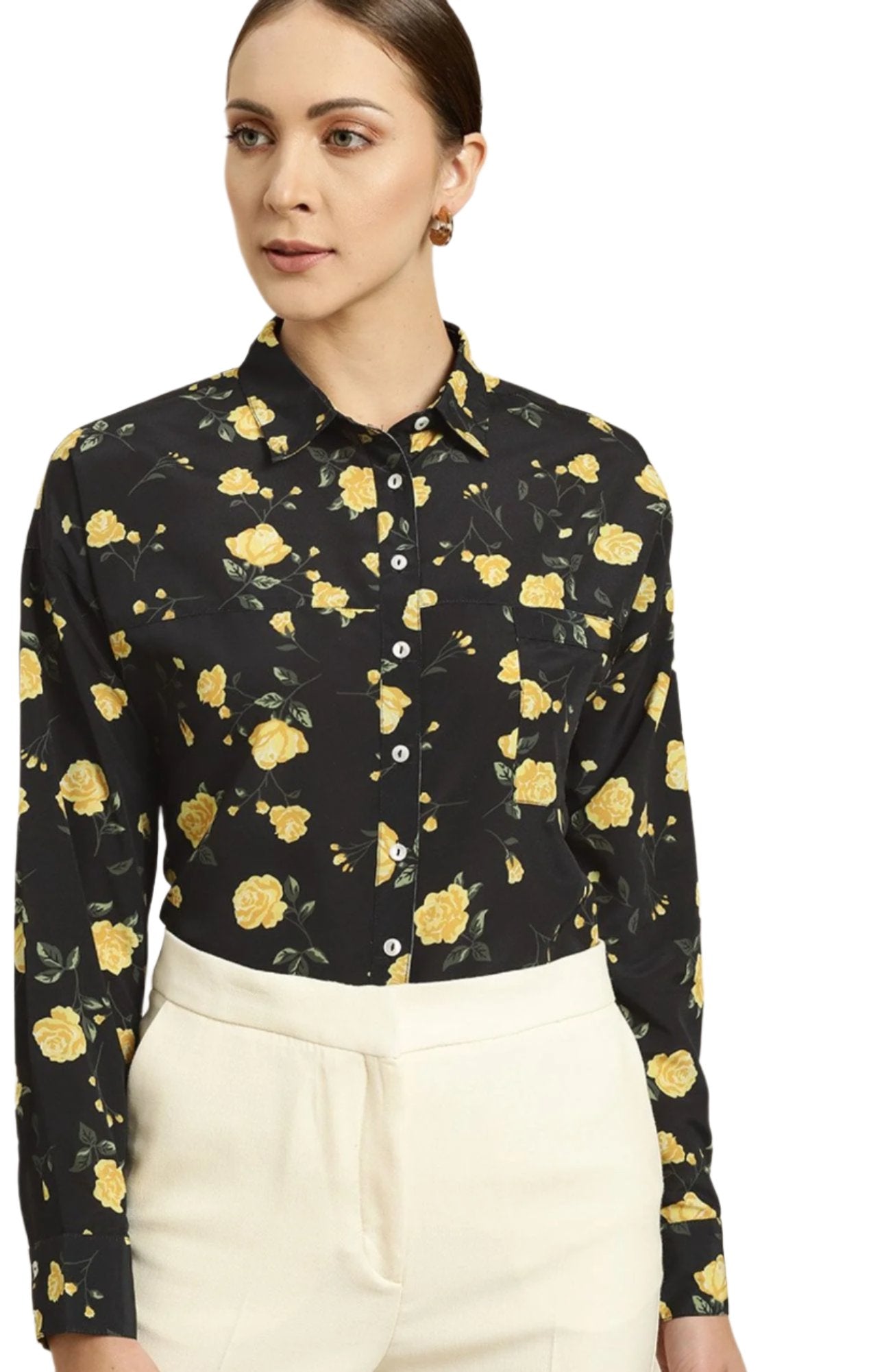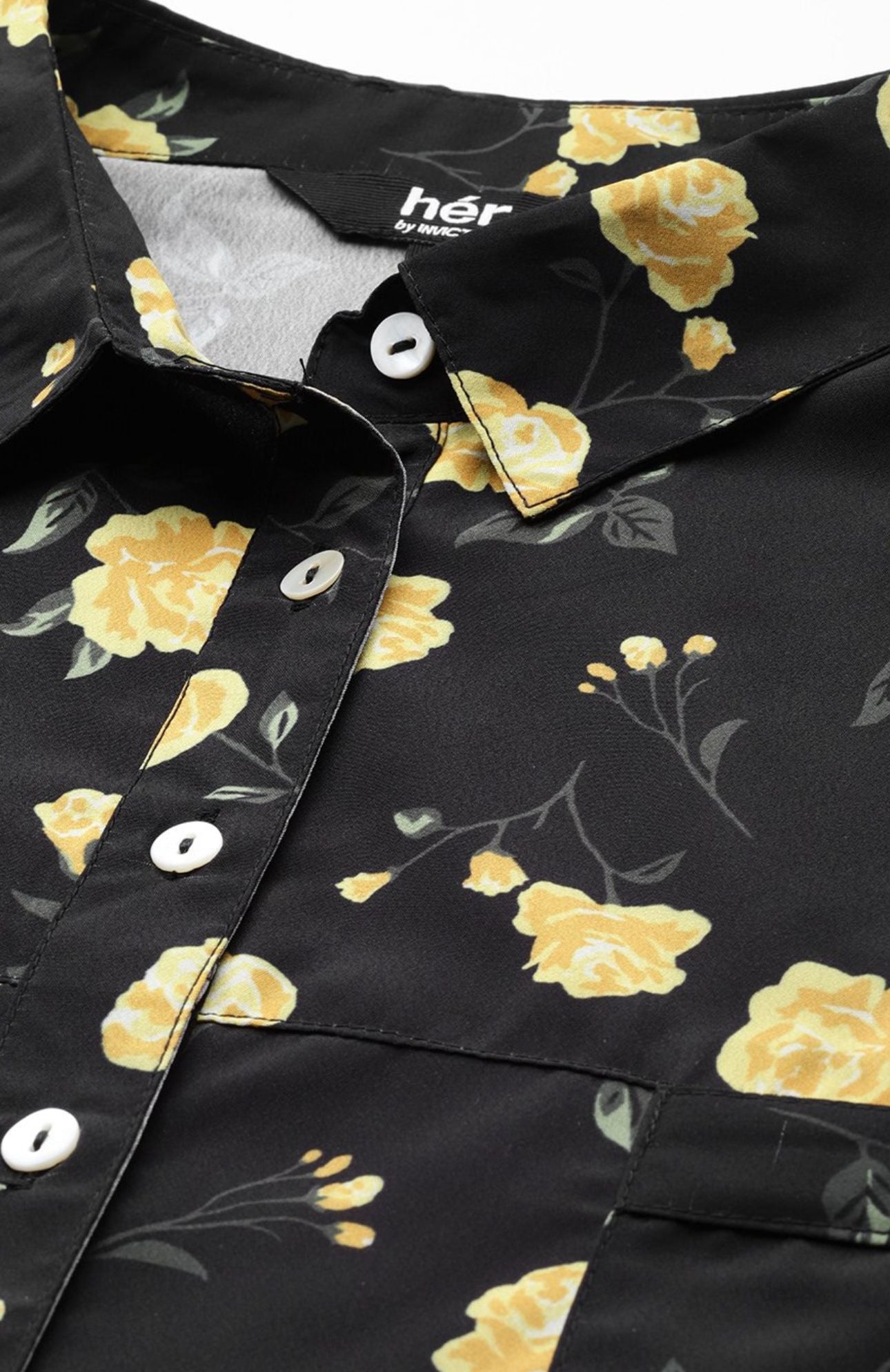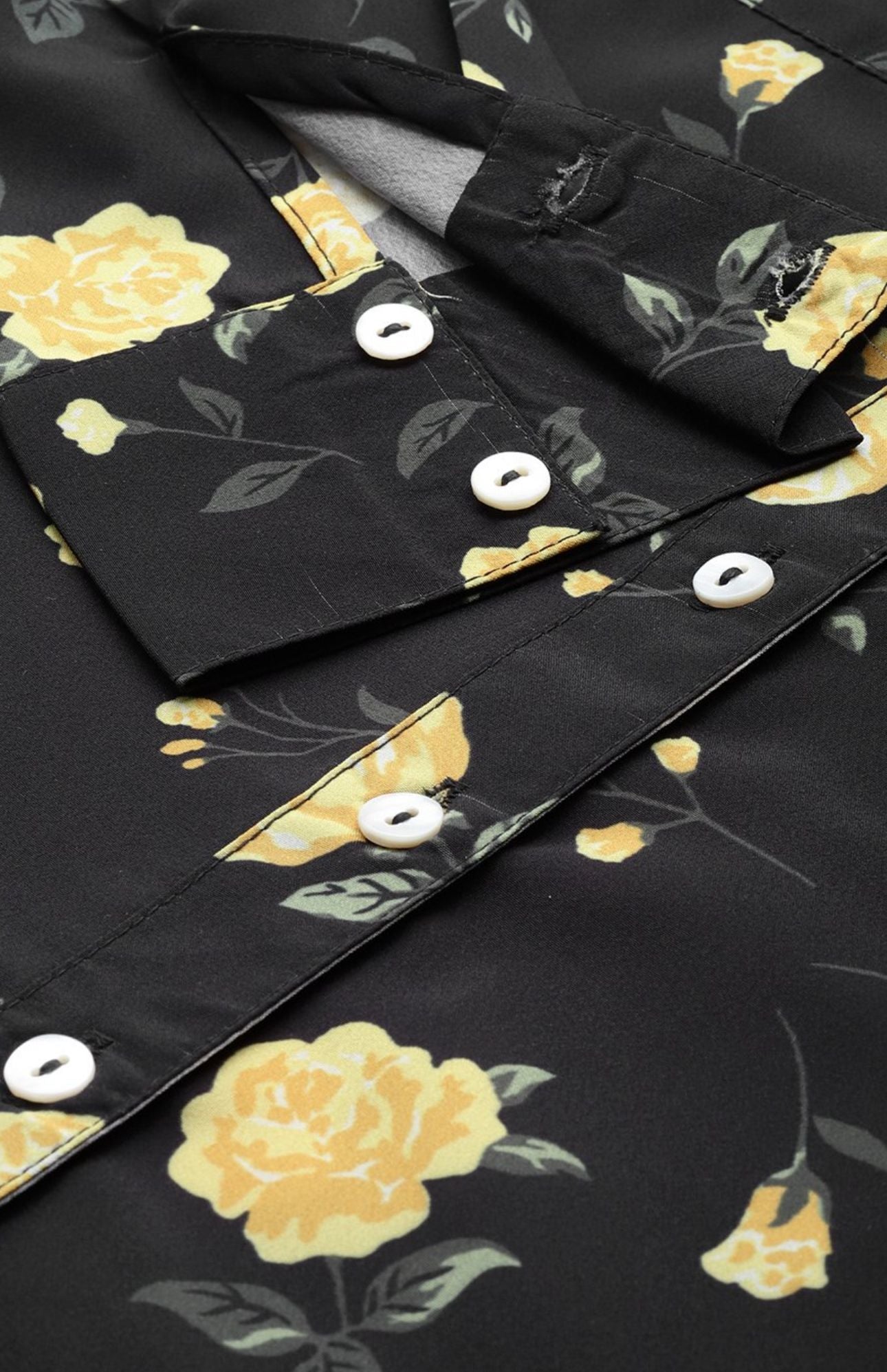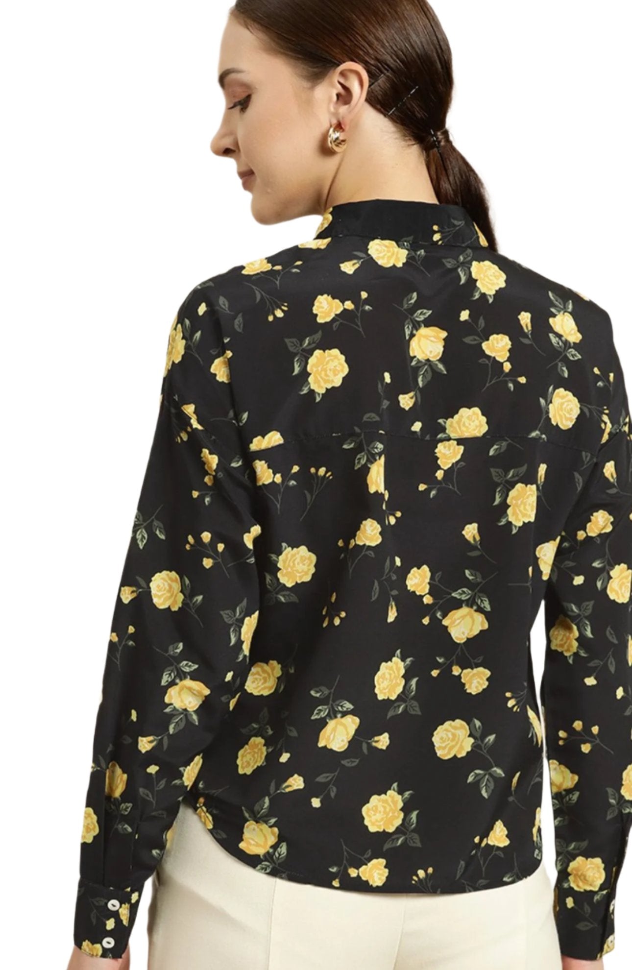 Women Black Floral Print Drop-Shoulder Sleeves Solid Formal Shirt in Germany