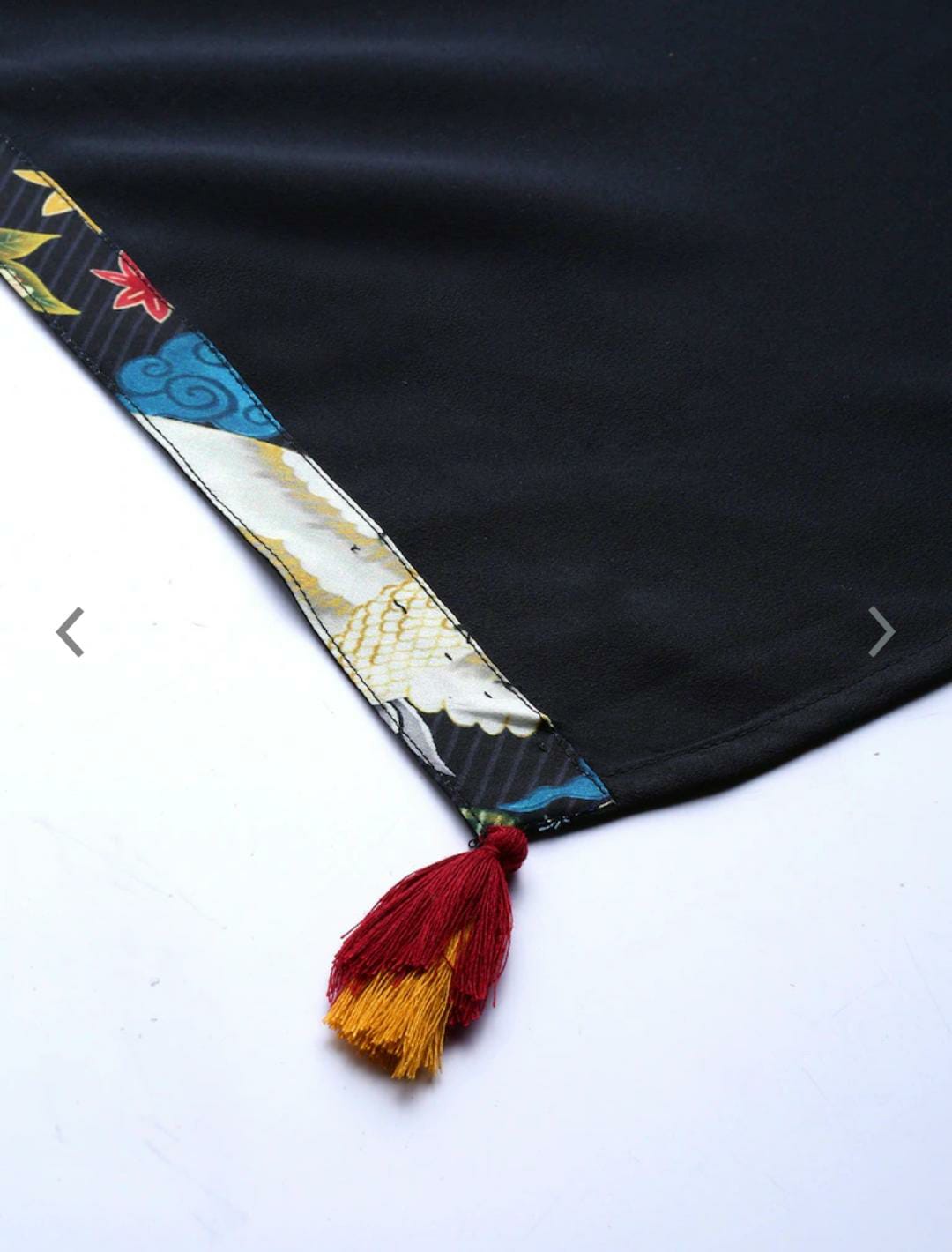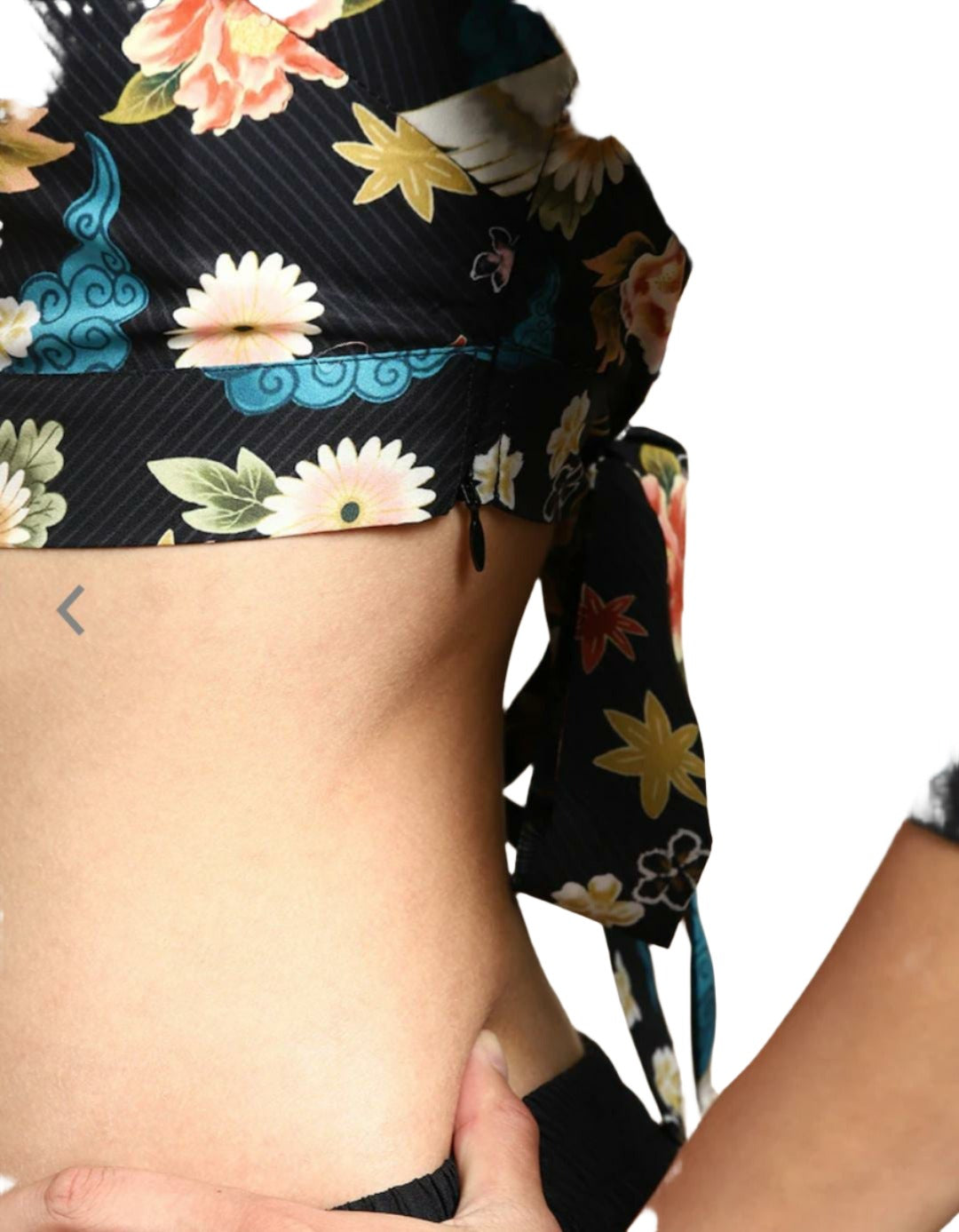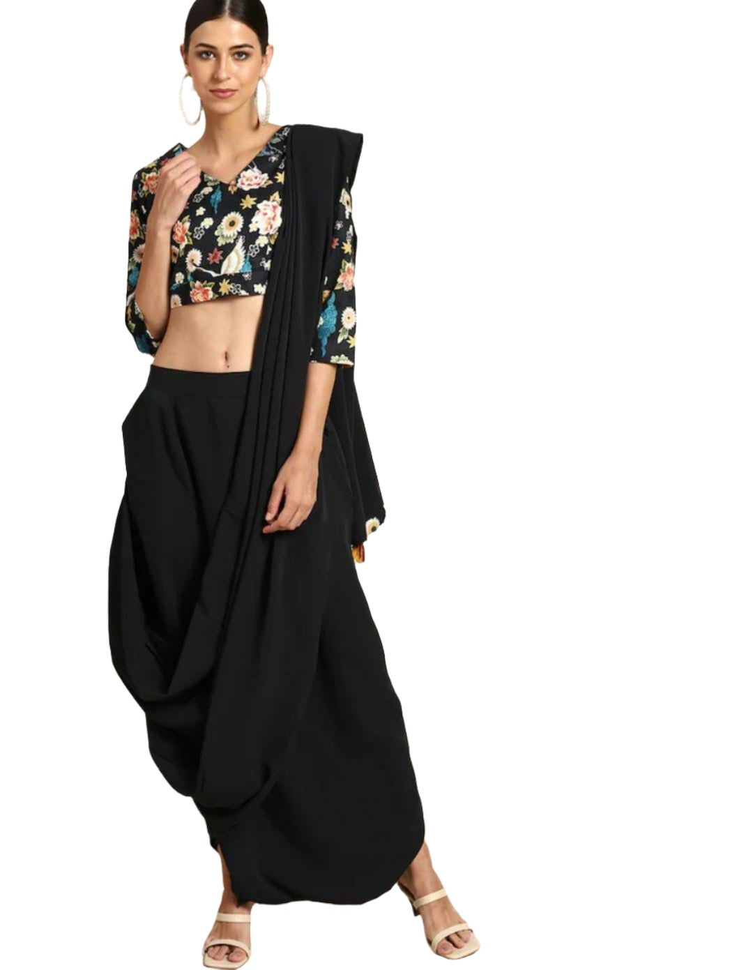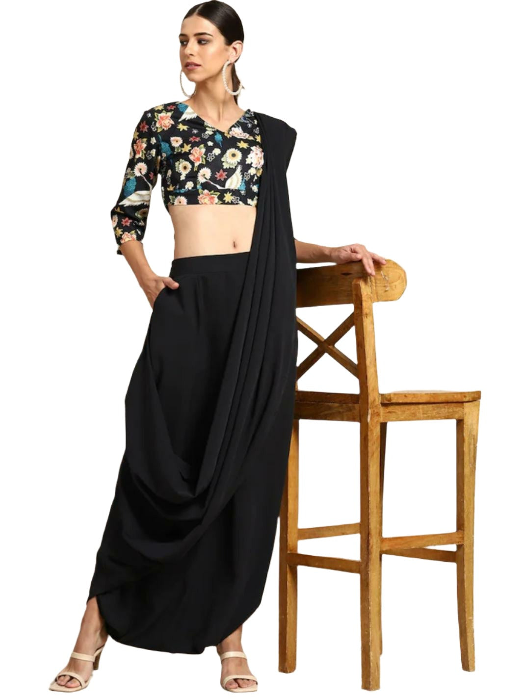 Women Black Floral Printed Regular Top with Harem Pants with Attached Dupatta