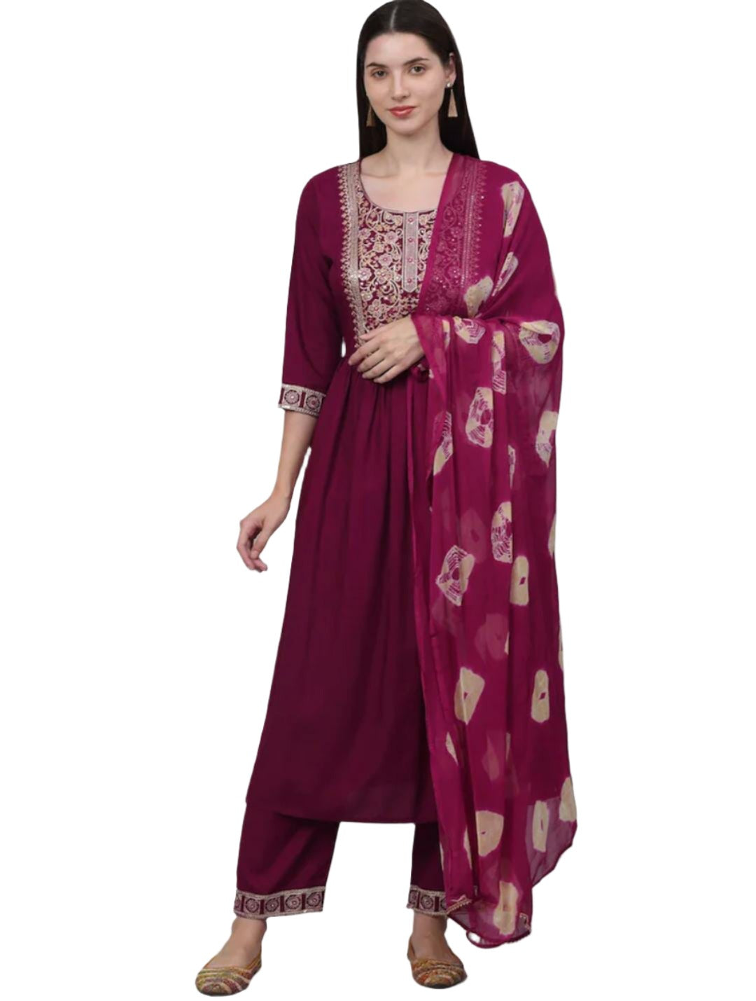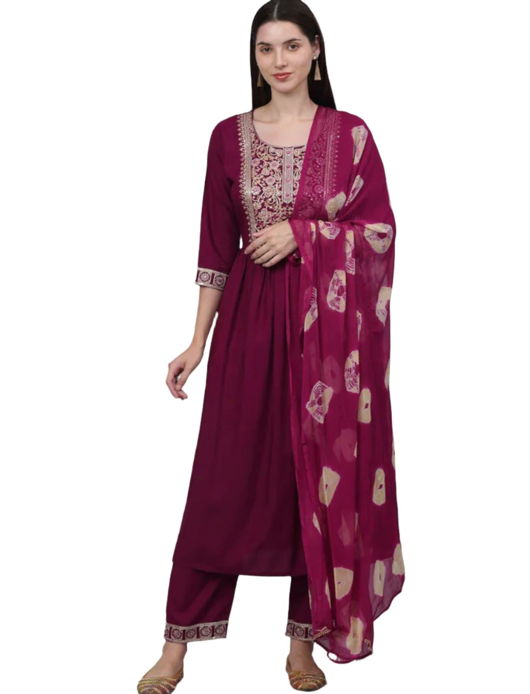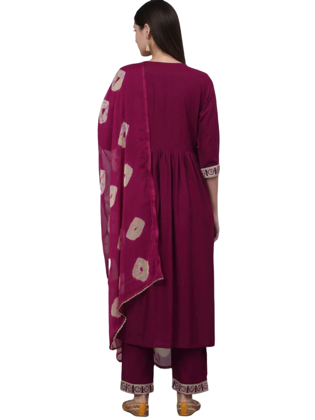 Burgundy yoke design Kurta with Palazzos with dupatta