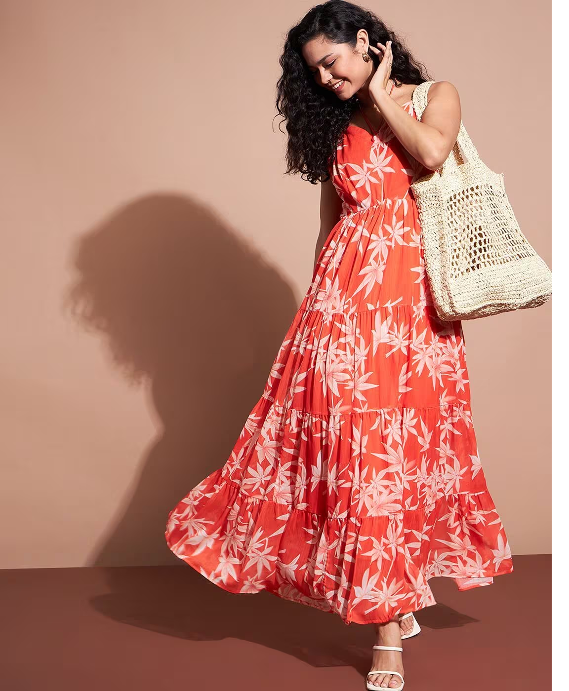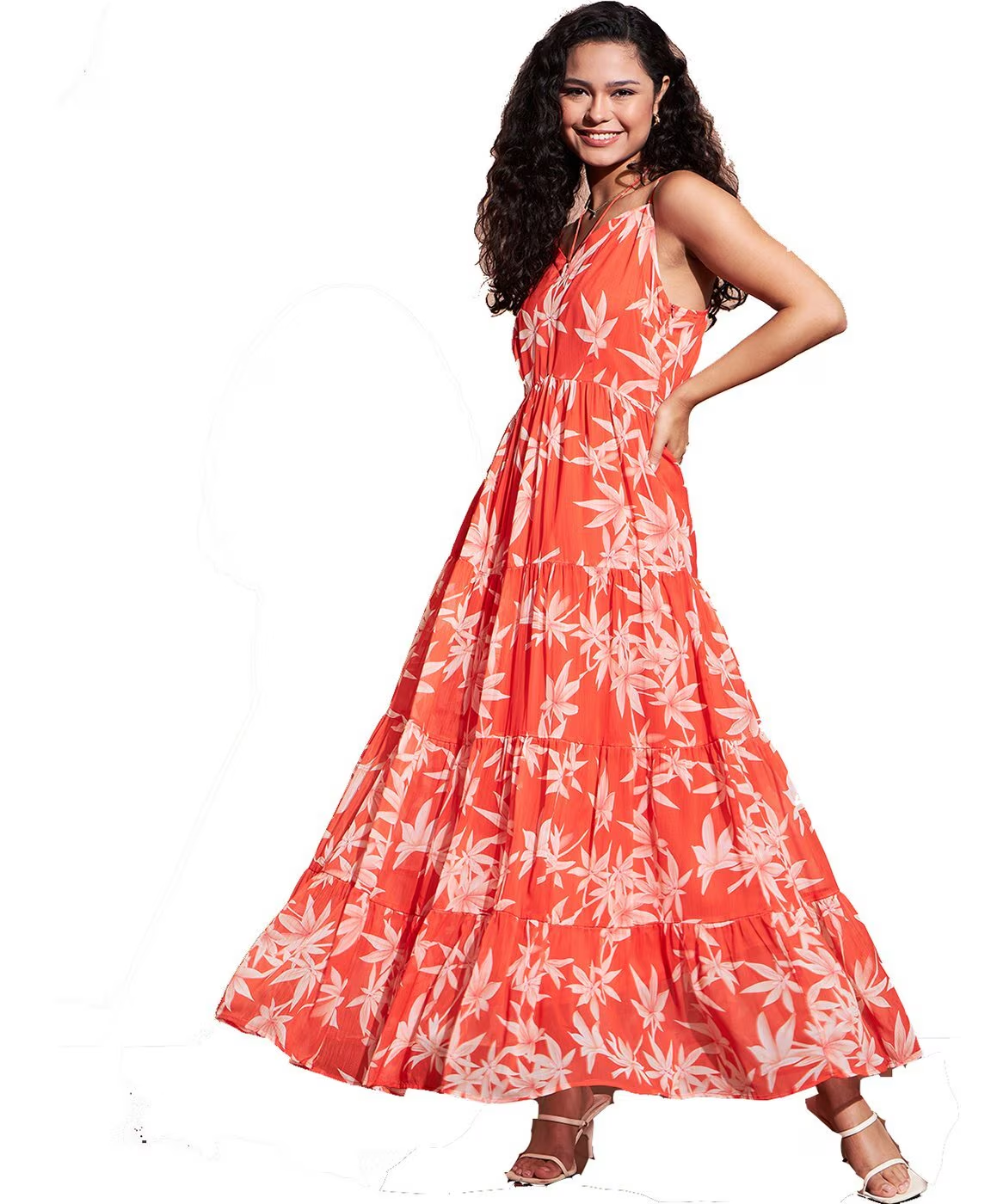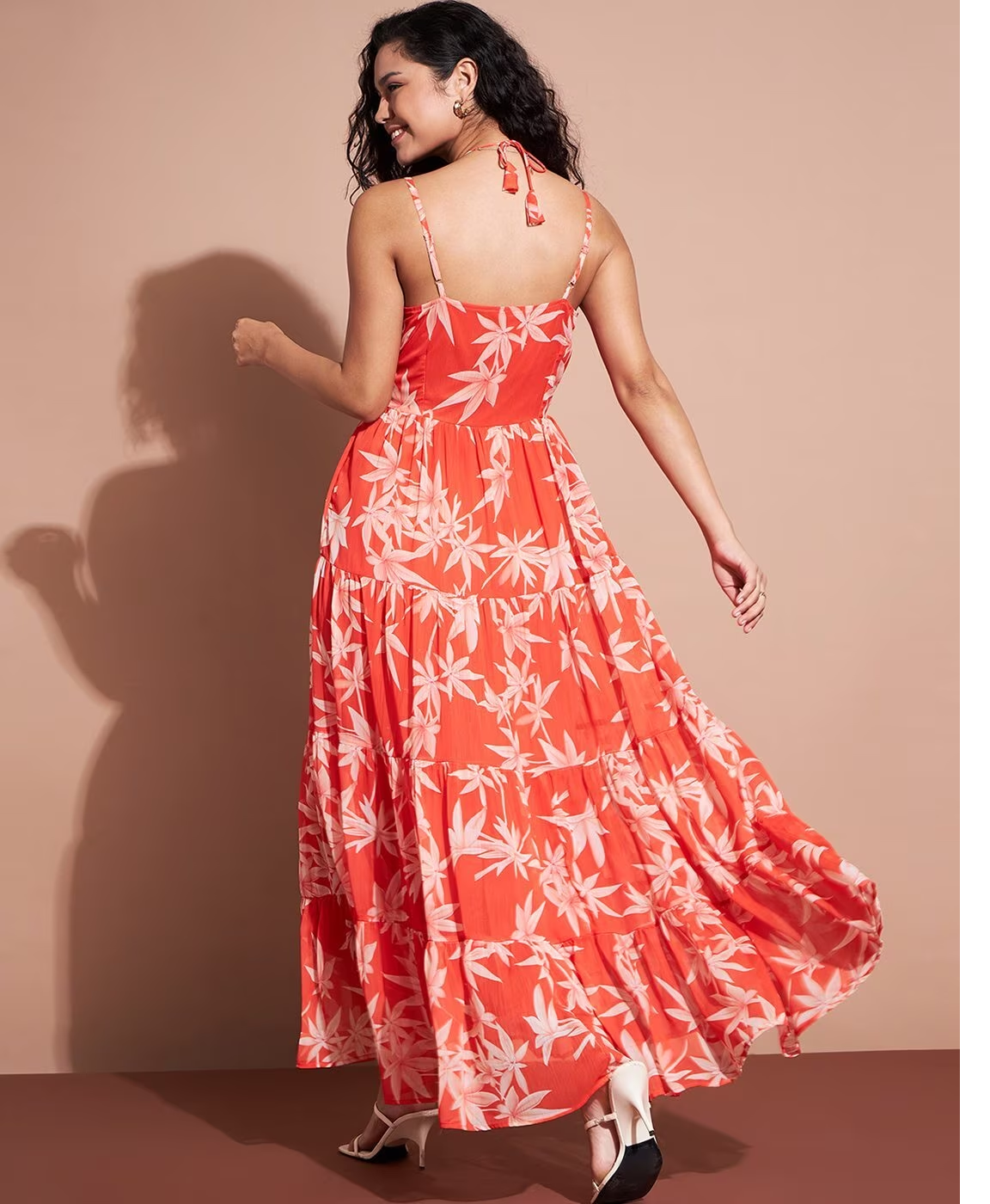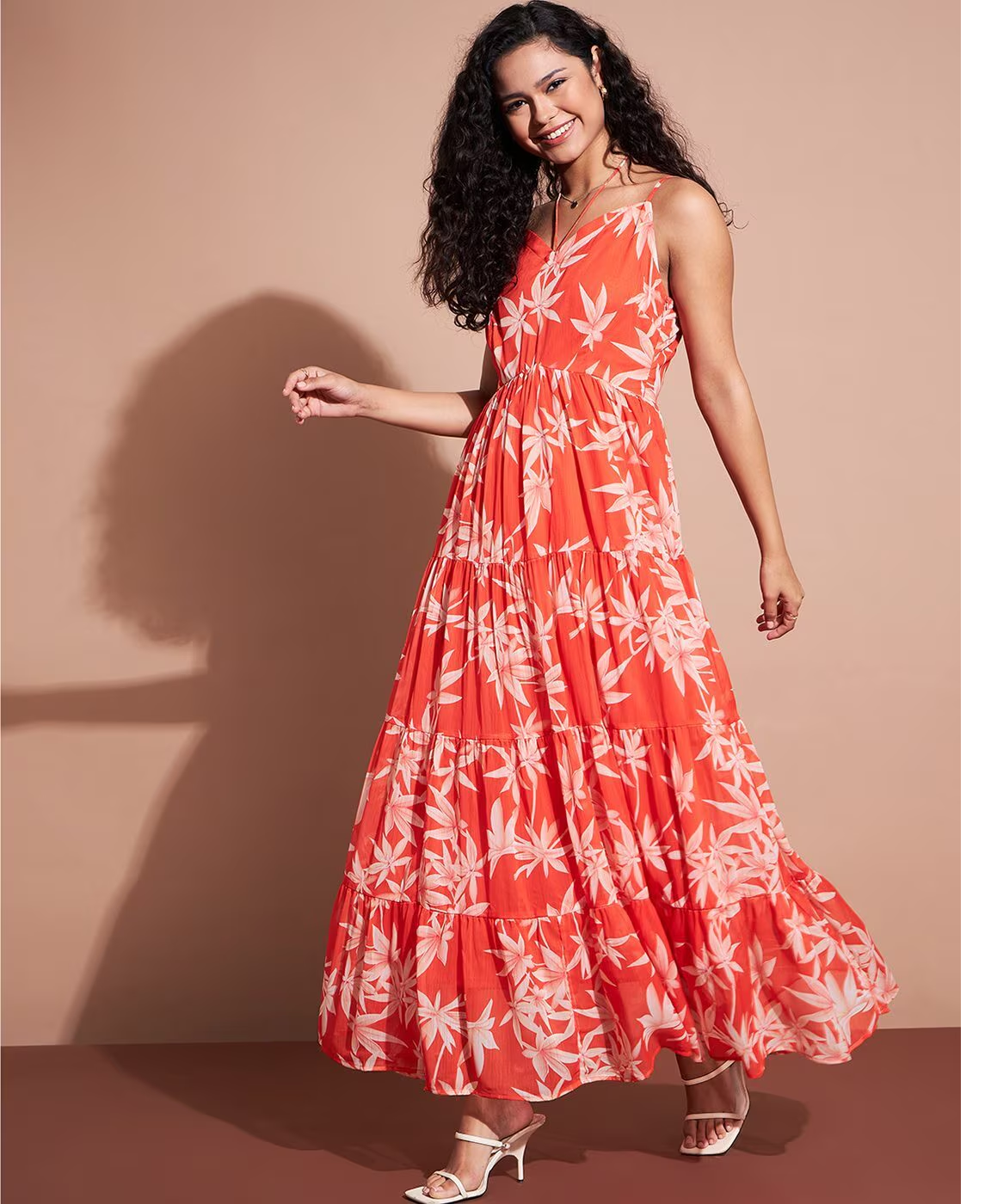 Women Floral Print Tiered Dress: