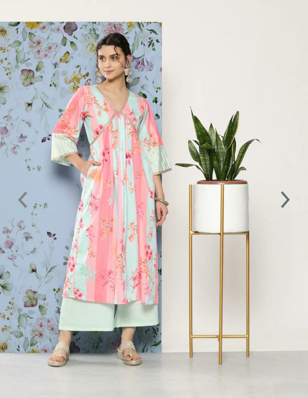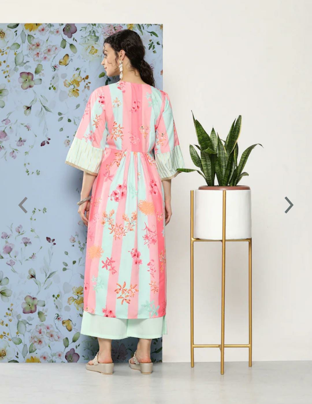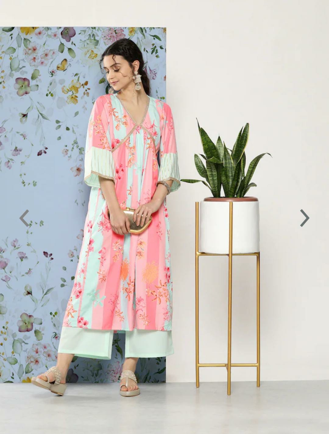 Women Floral Printed Pleated Gotta Patti Kurta With Palazzos
