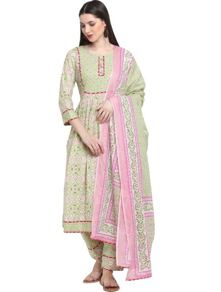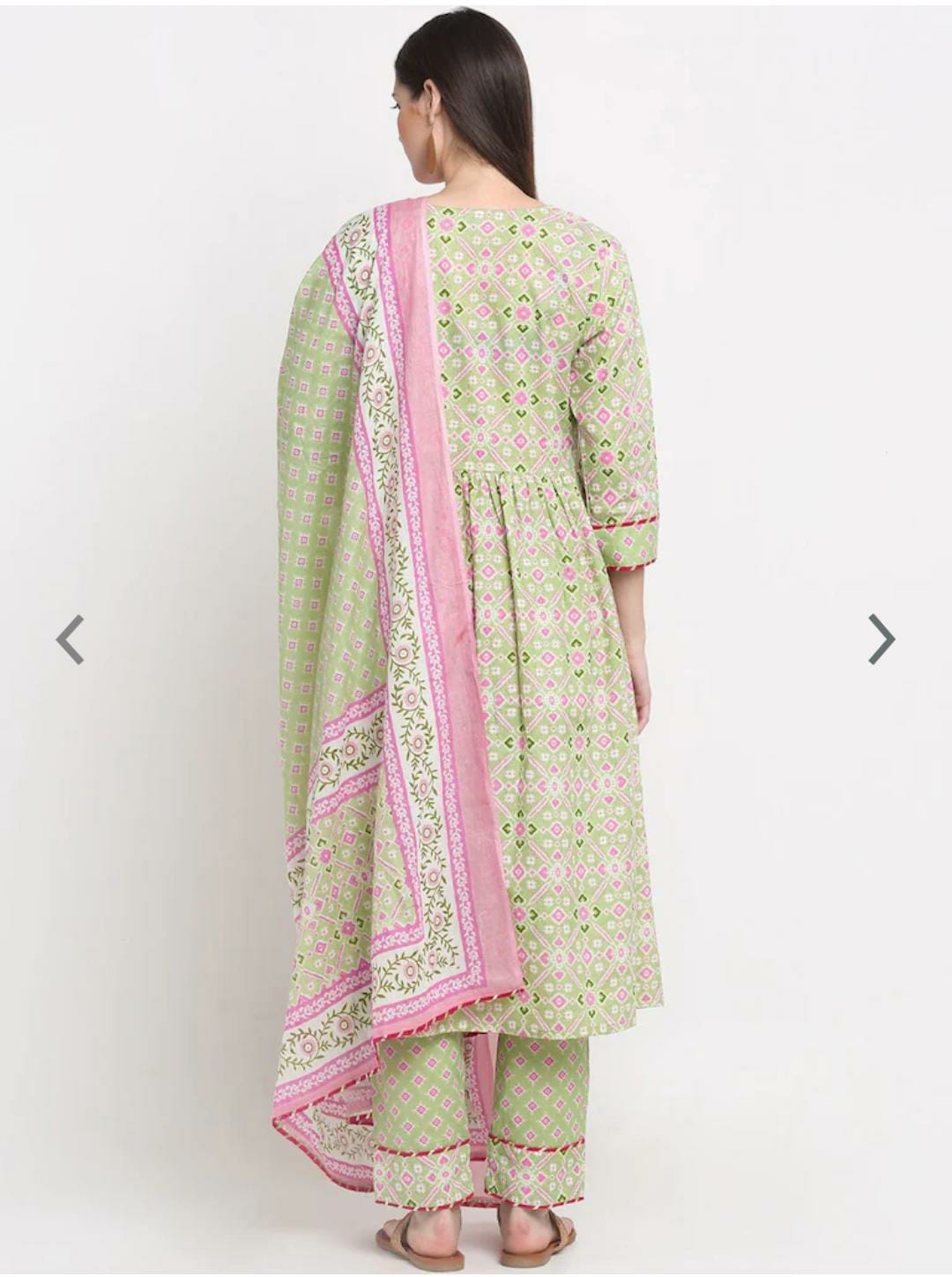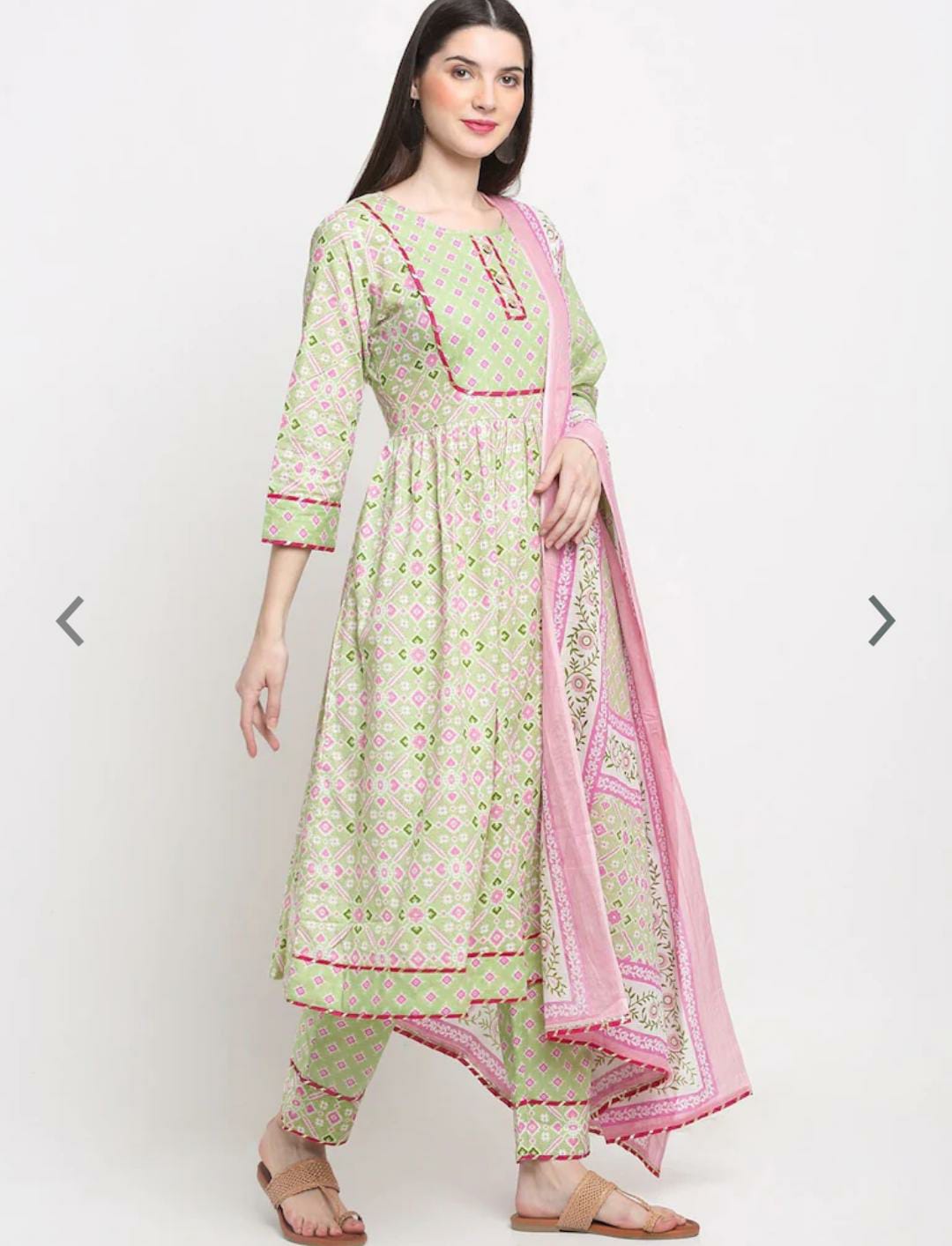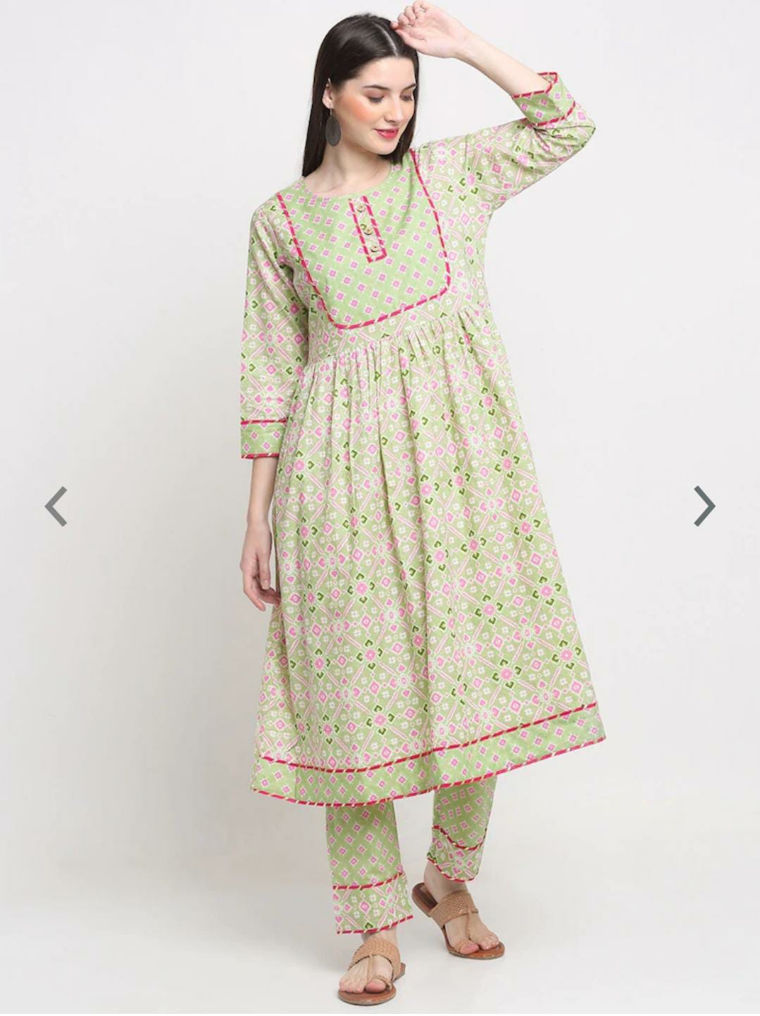 1.)Women Fluorescent Green Embroidered Pure Cotton Trousers Suit(Indian Deginer Outfit)
