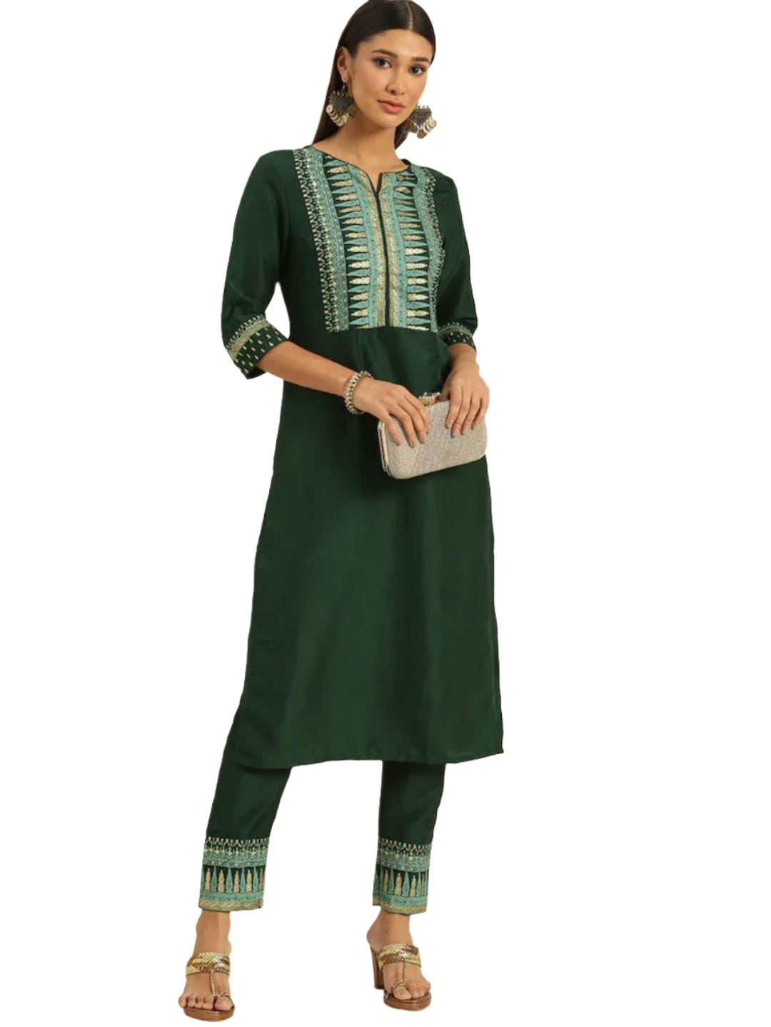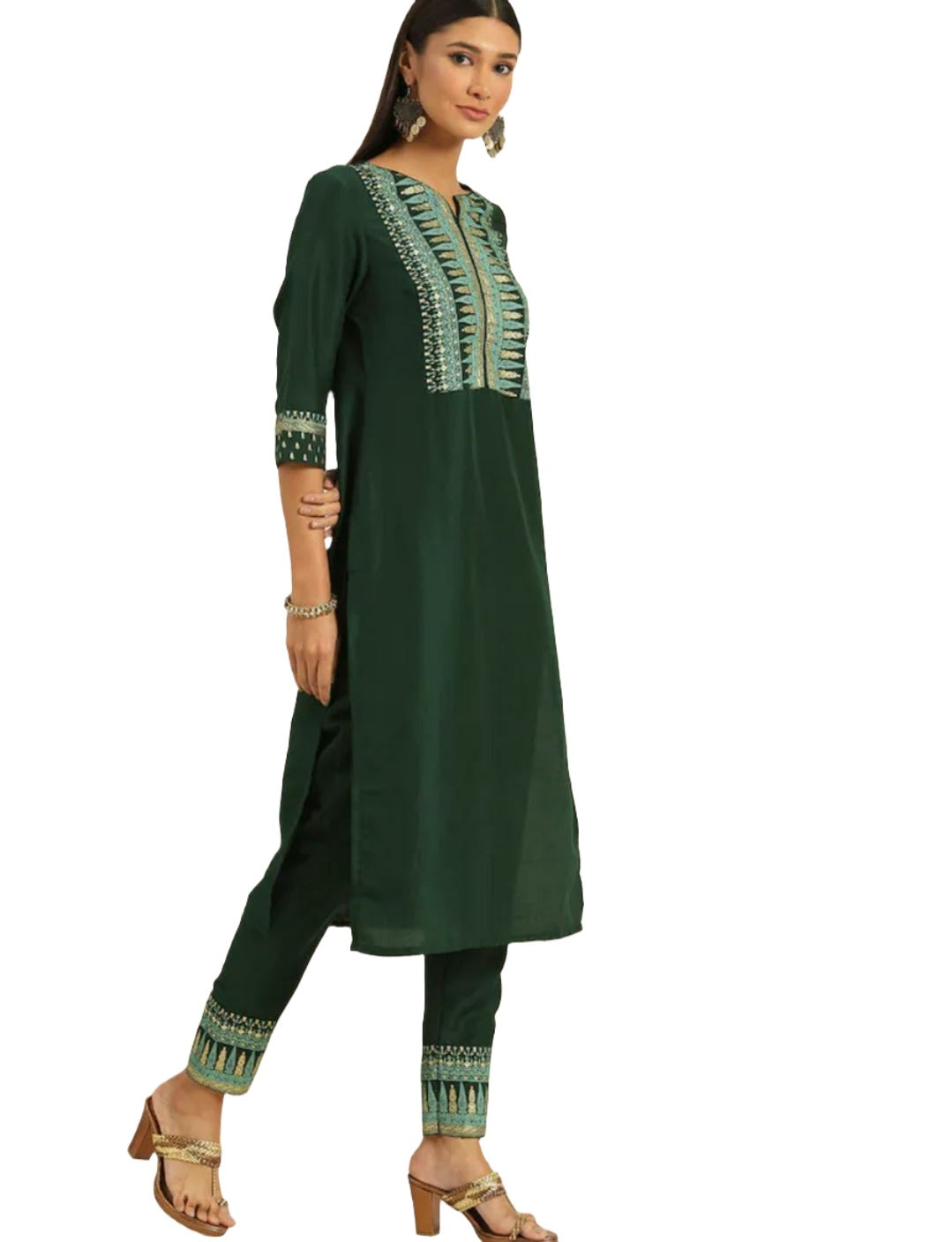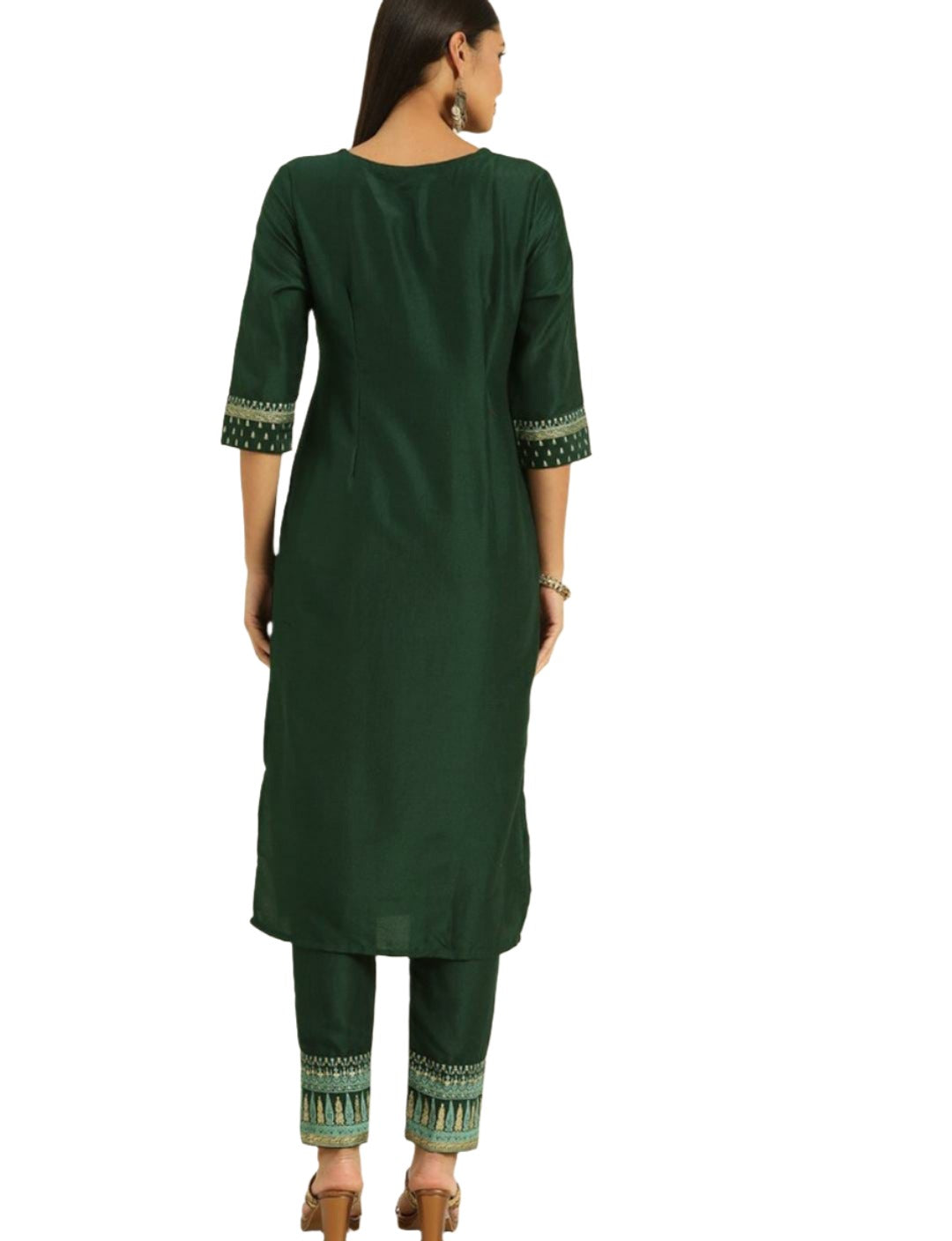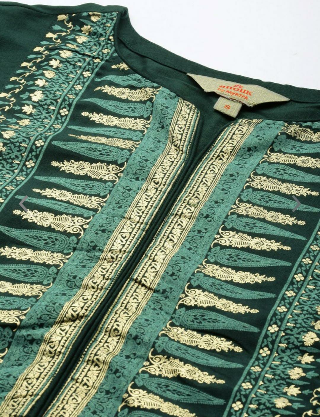 Women Green Ethnic Motifs Printed Regular Kurta with Trousers