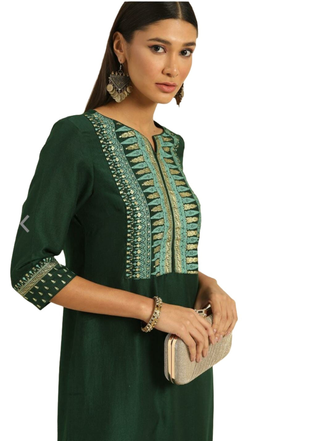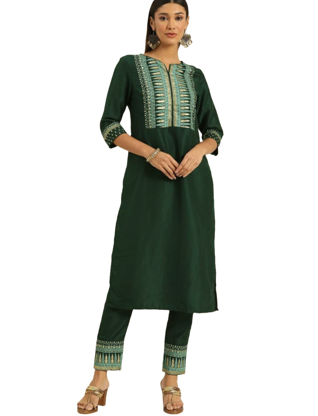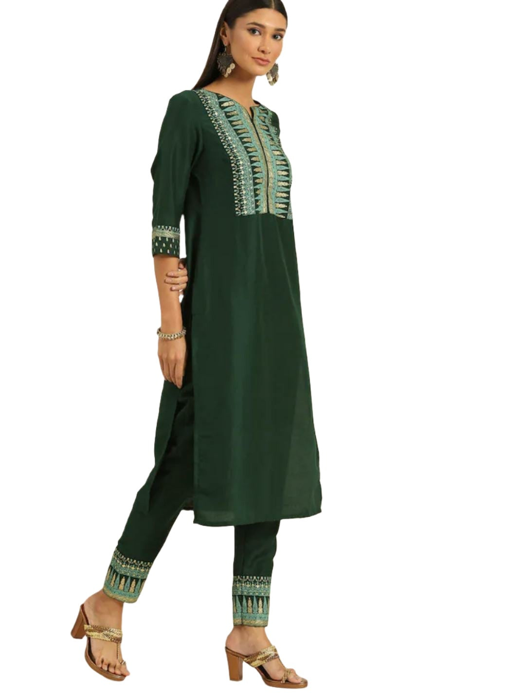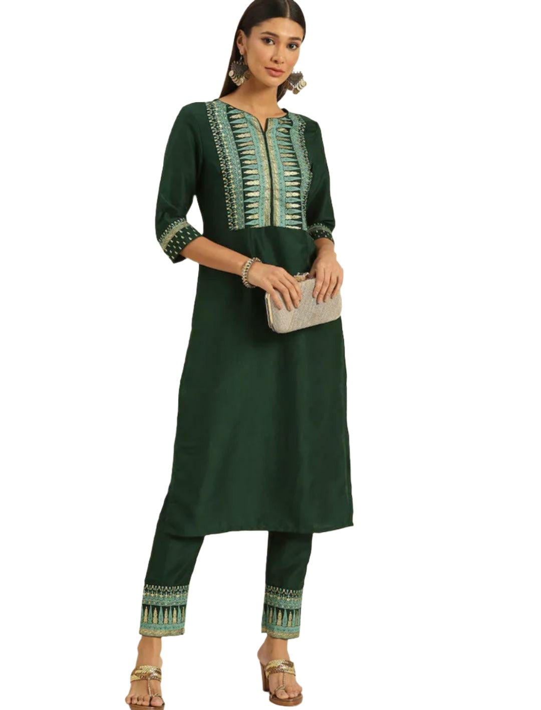Women Green Ethnic Motifs Printed Regular Kurta with Trousers