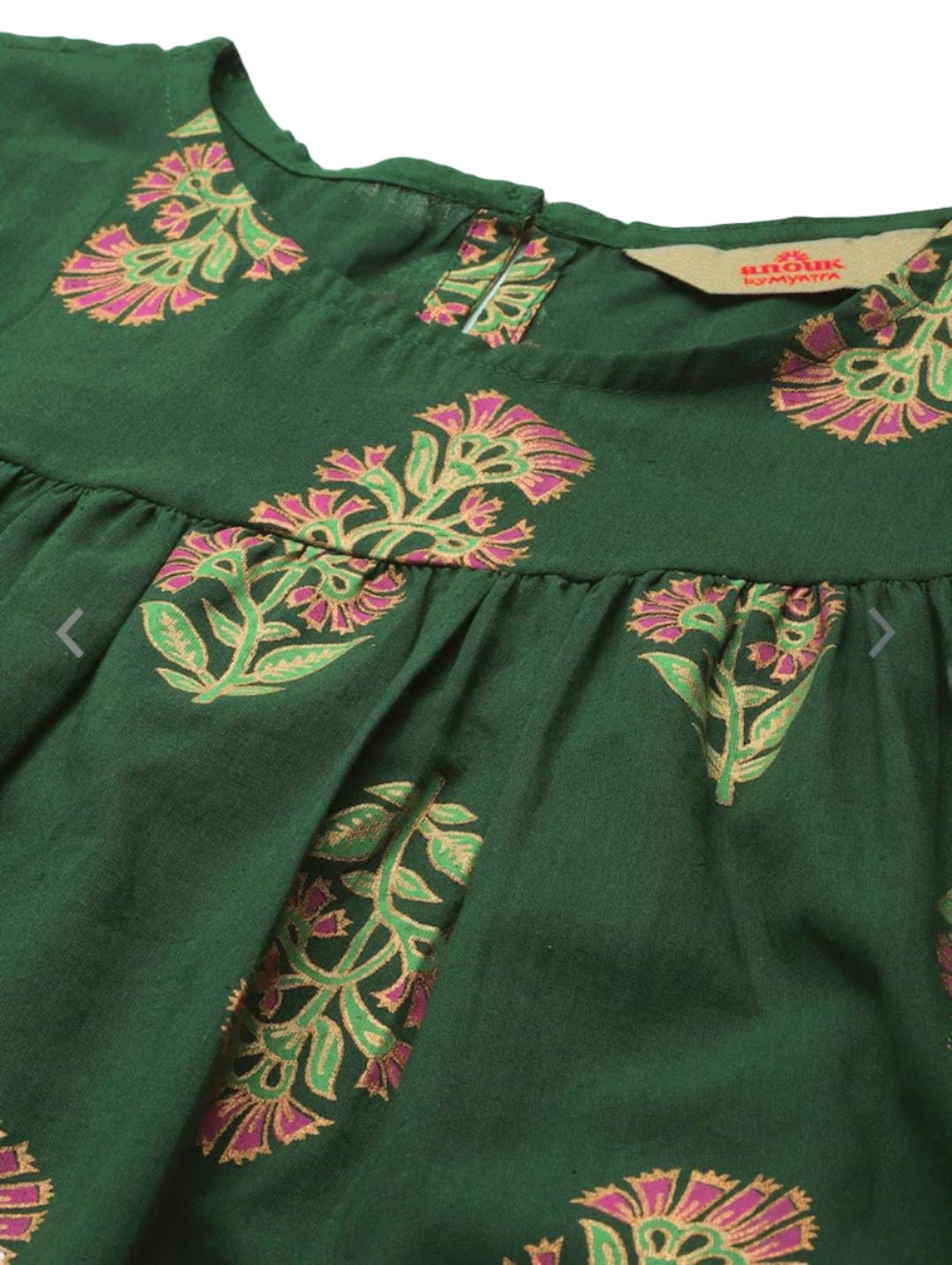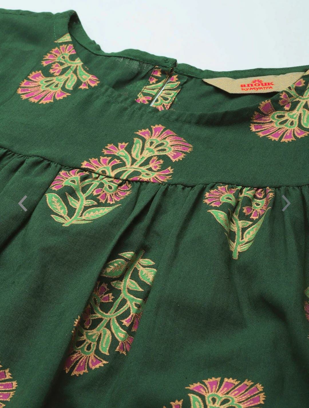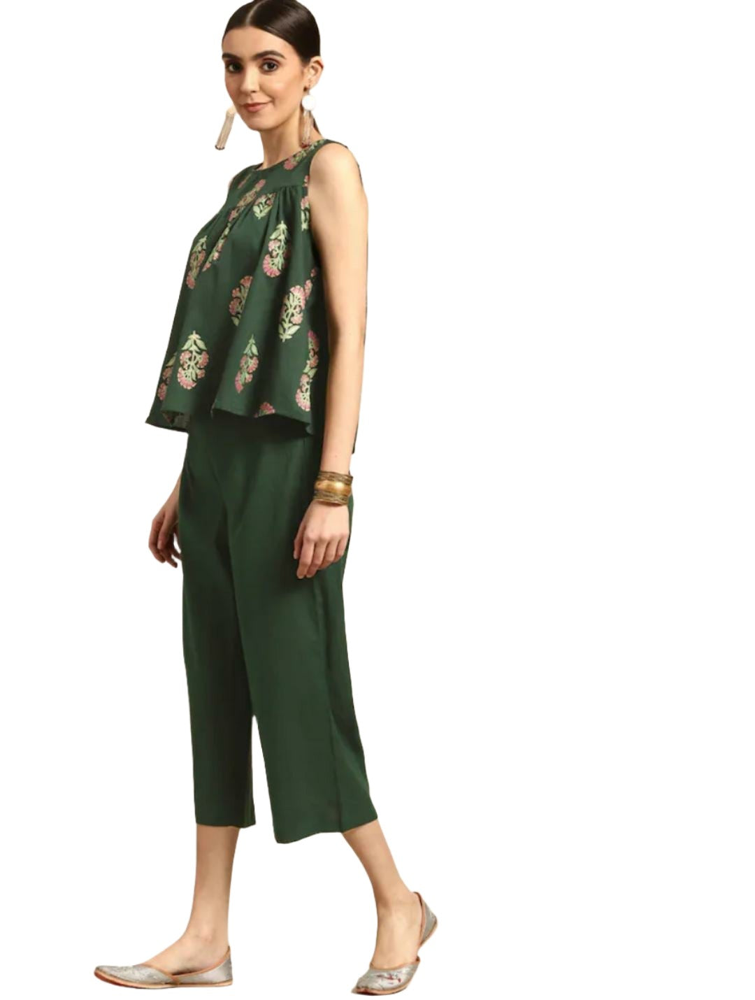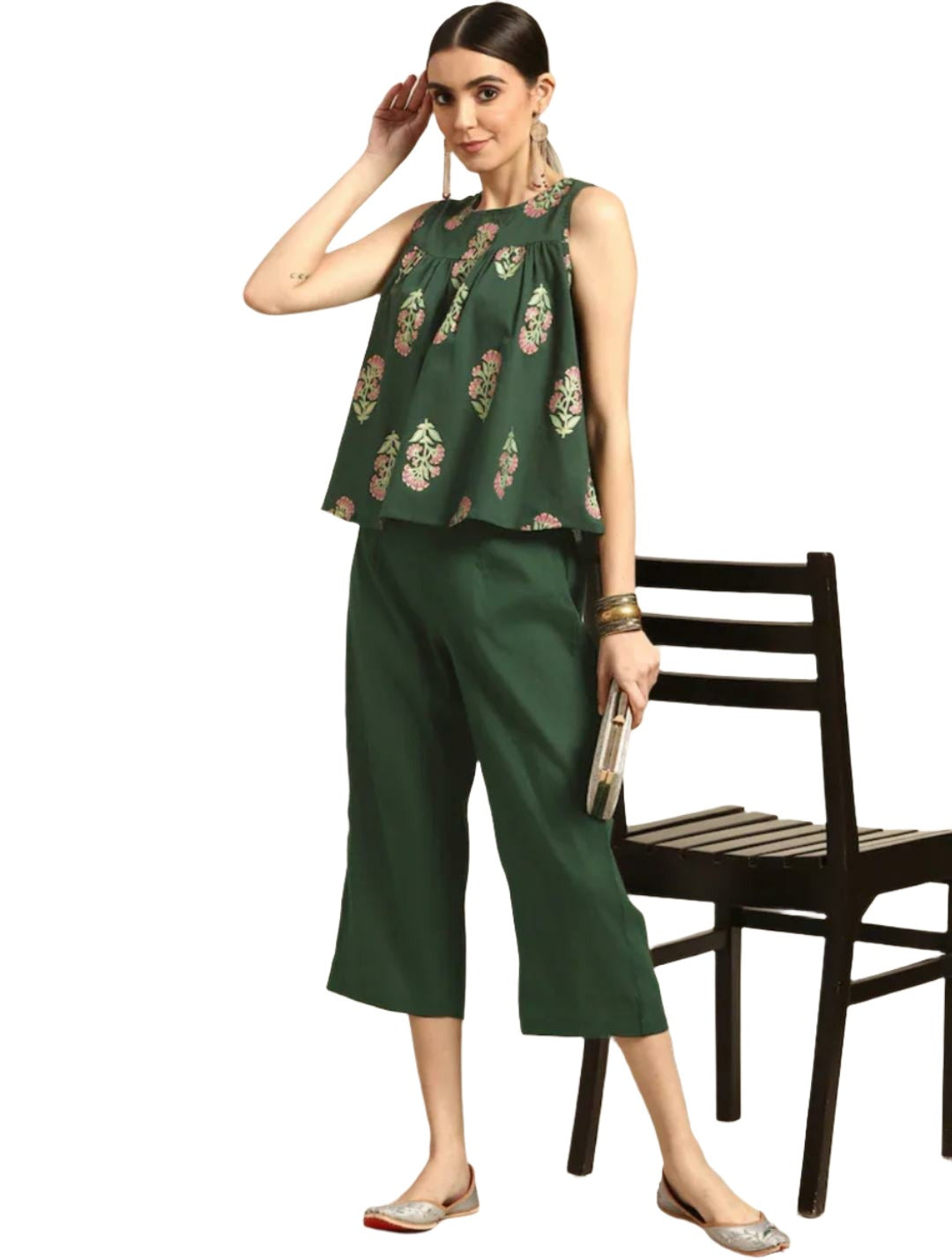 Women Green Pure Cotton Printed Pleated Top with Palazzos