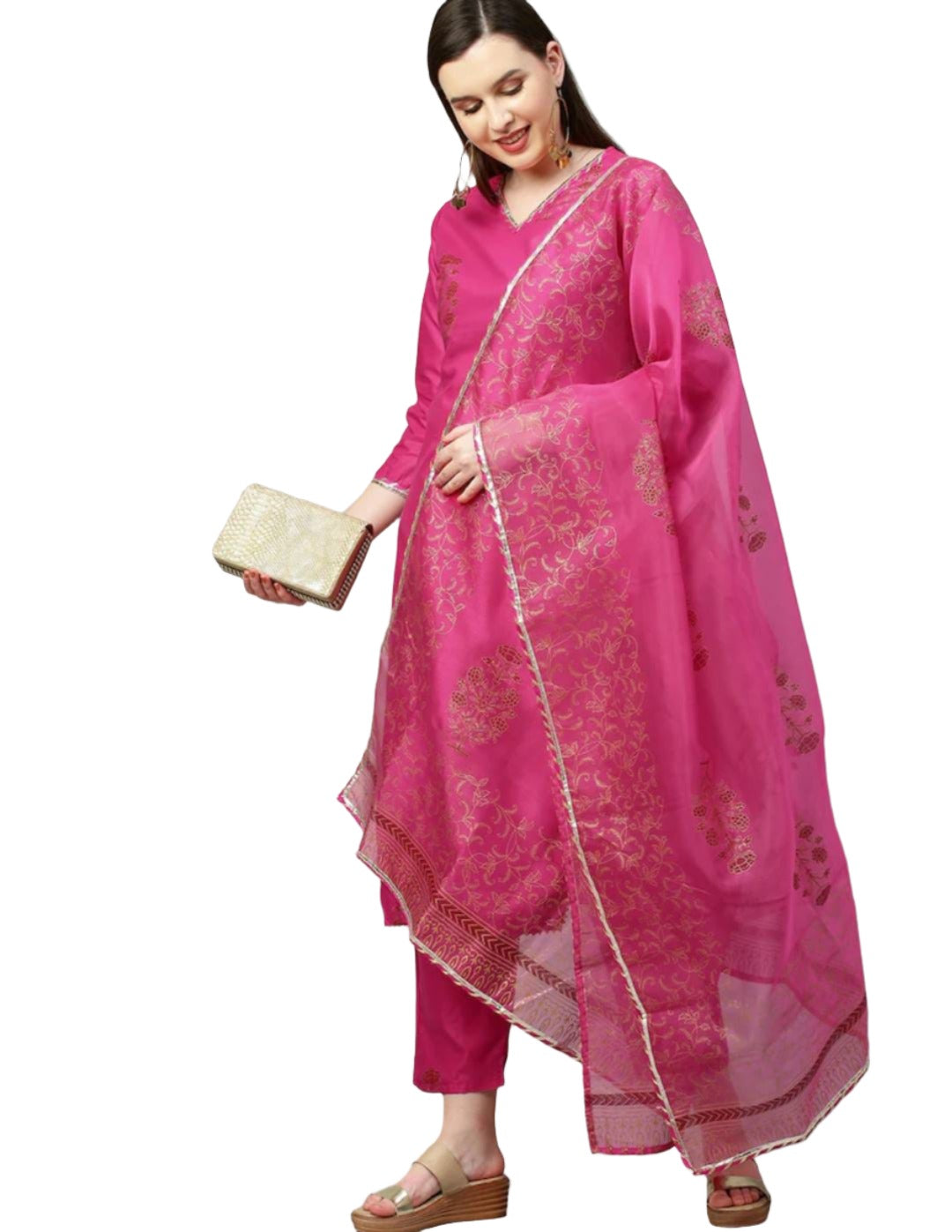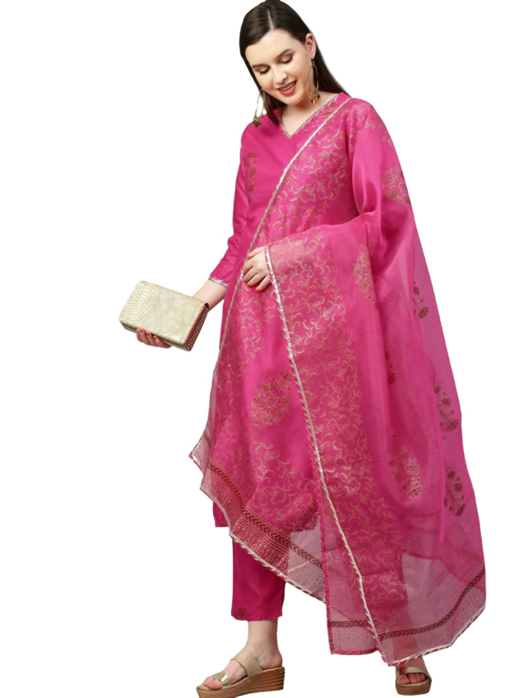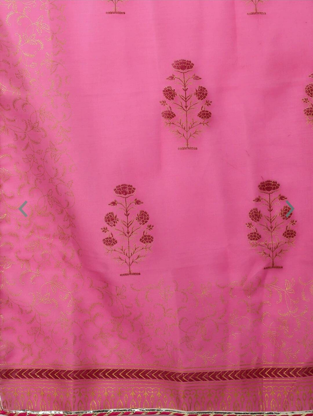 Women Pink Floral Printed Kurta with Trousers & With Dupatta(Indian Collection)