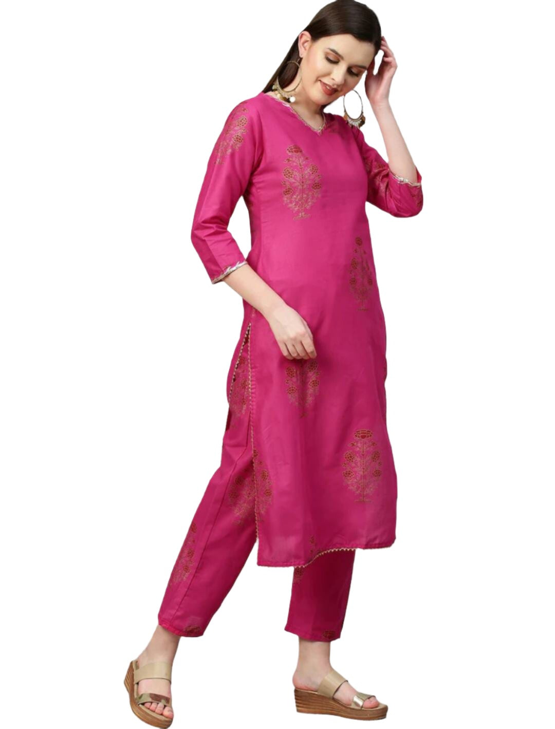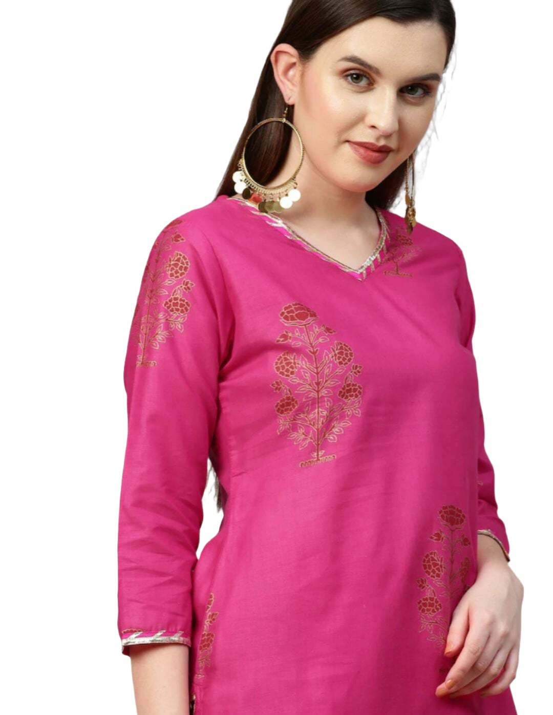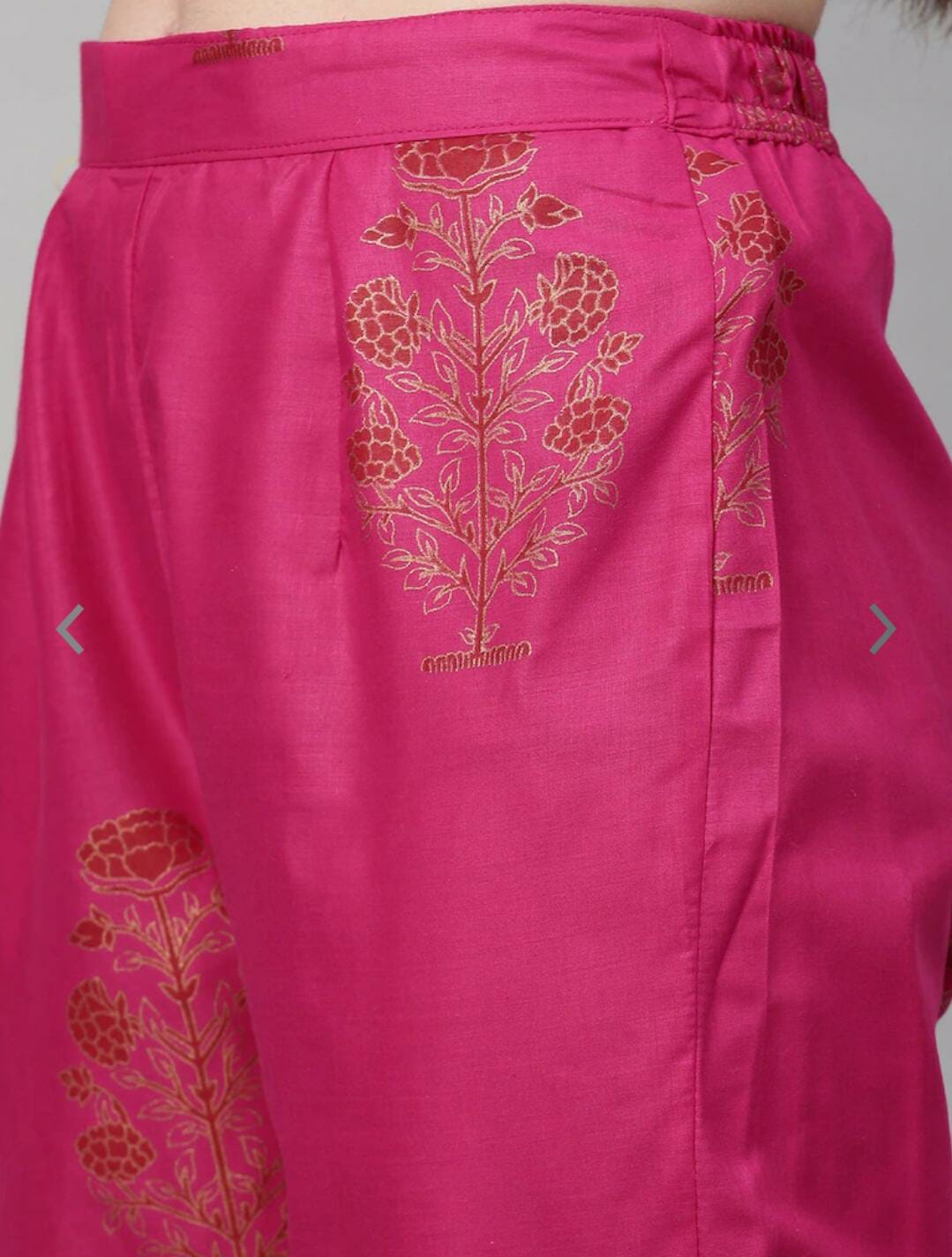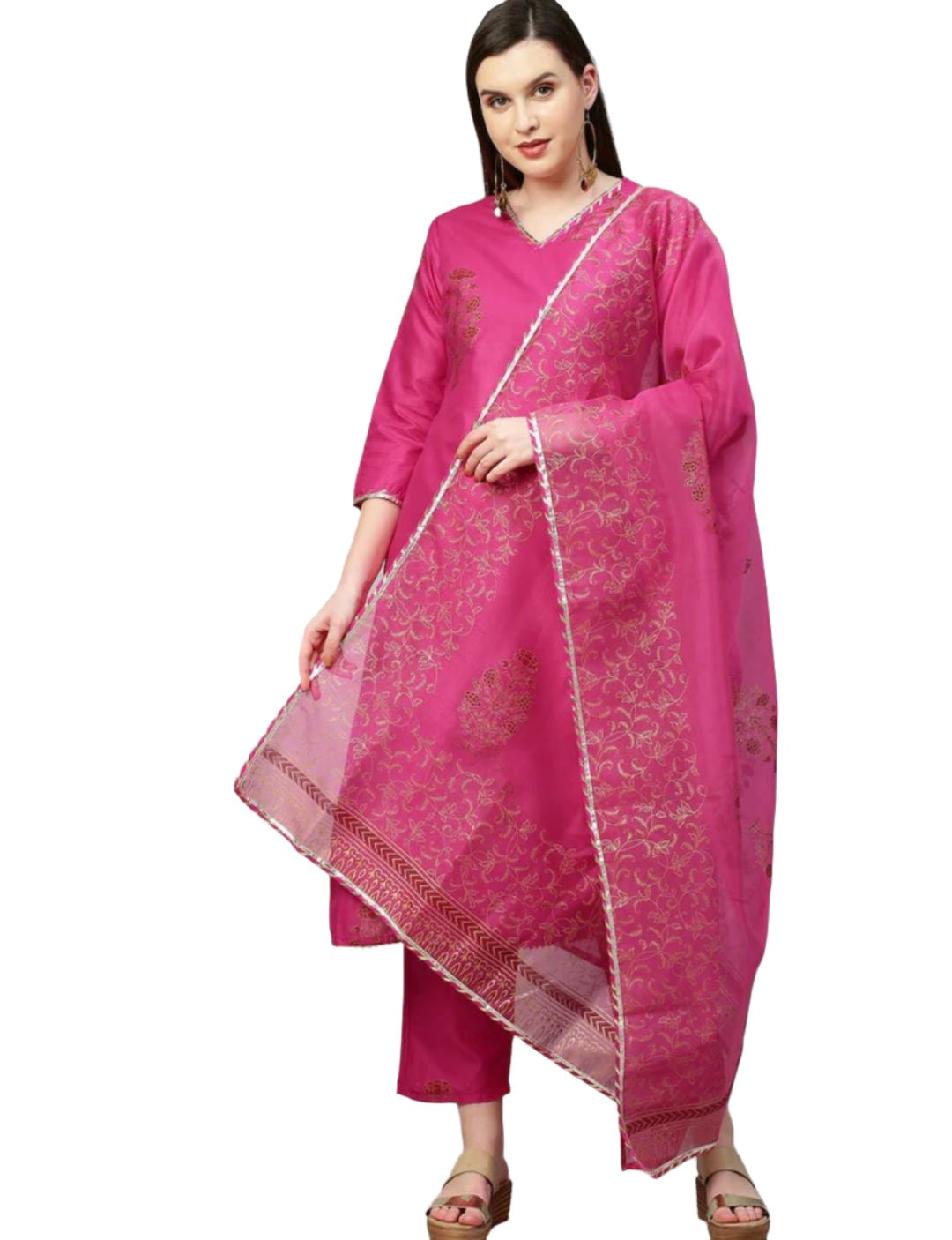 Women Pink Floral Printed Kurta with Trousers & With Dupatta(Indian Collection)