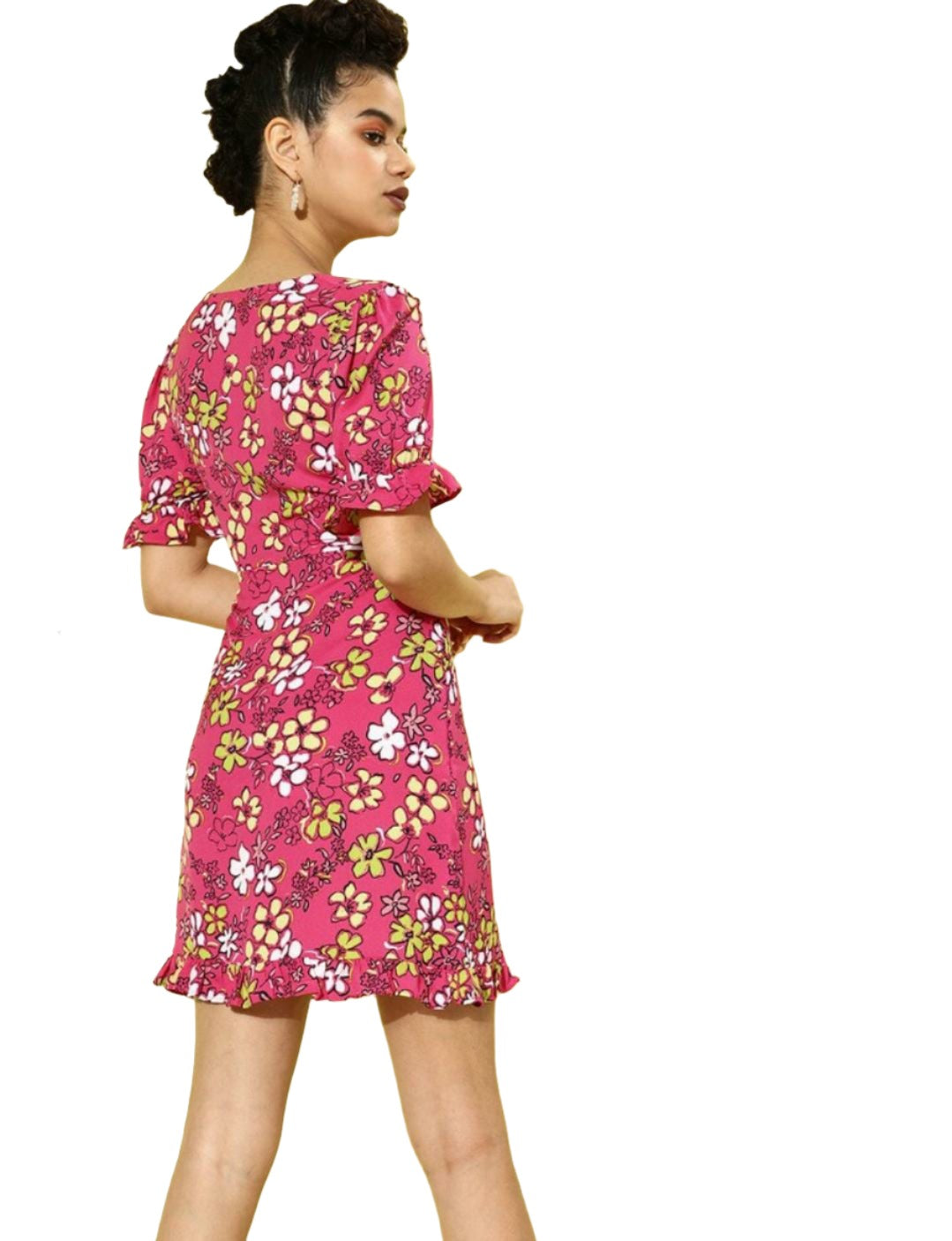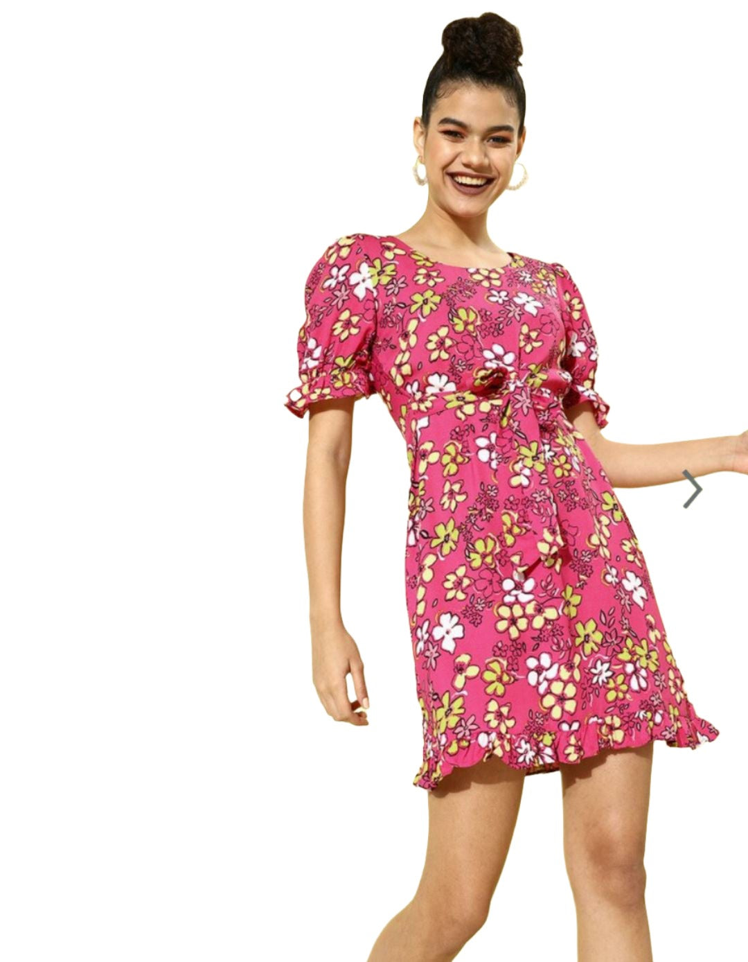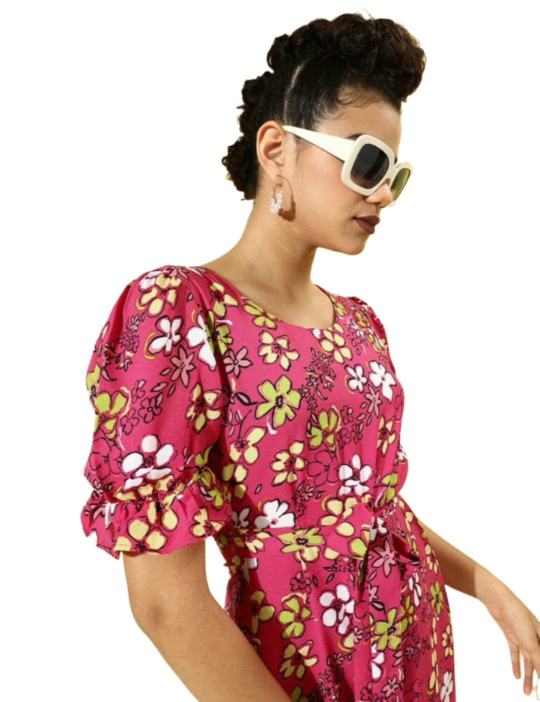 Women Pretty Pink Floral Cinched Waist Dress