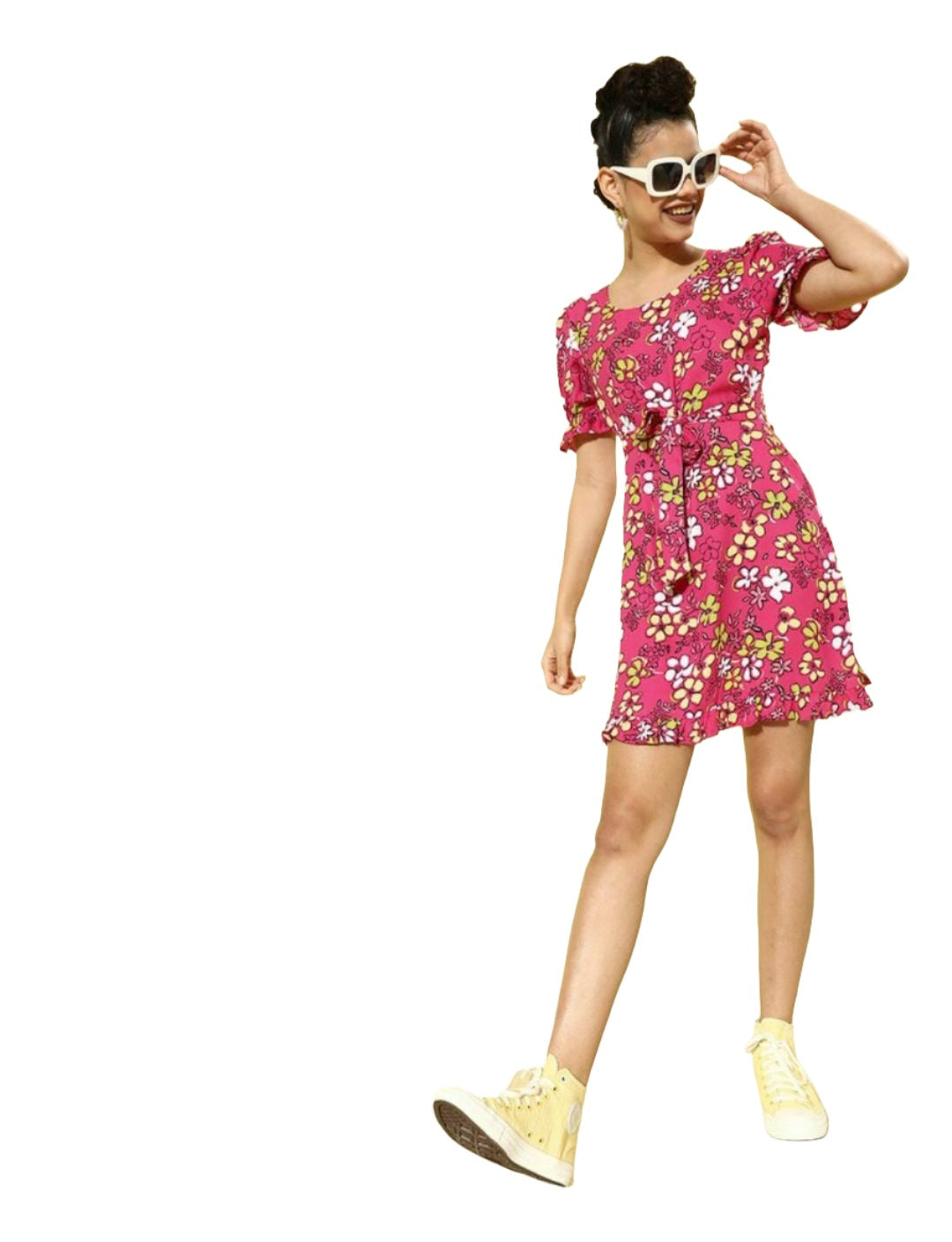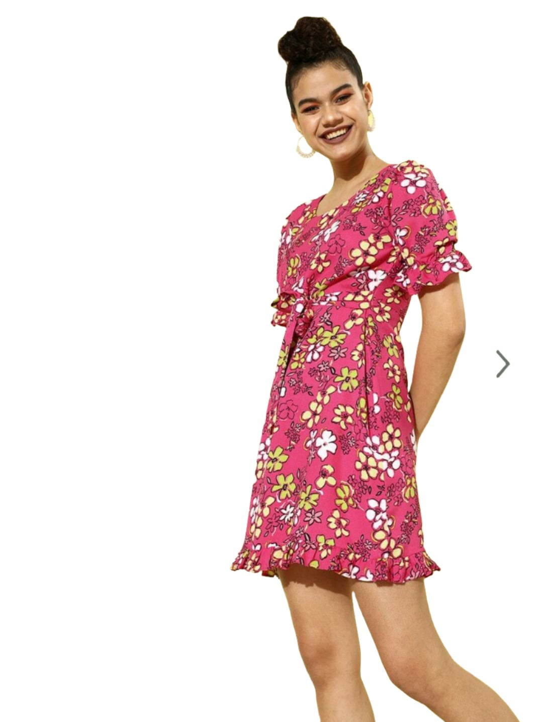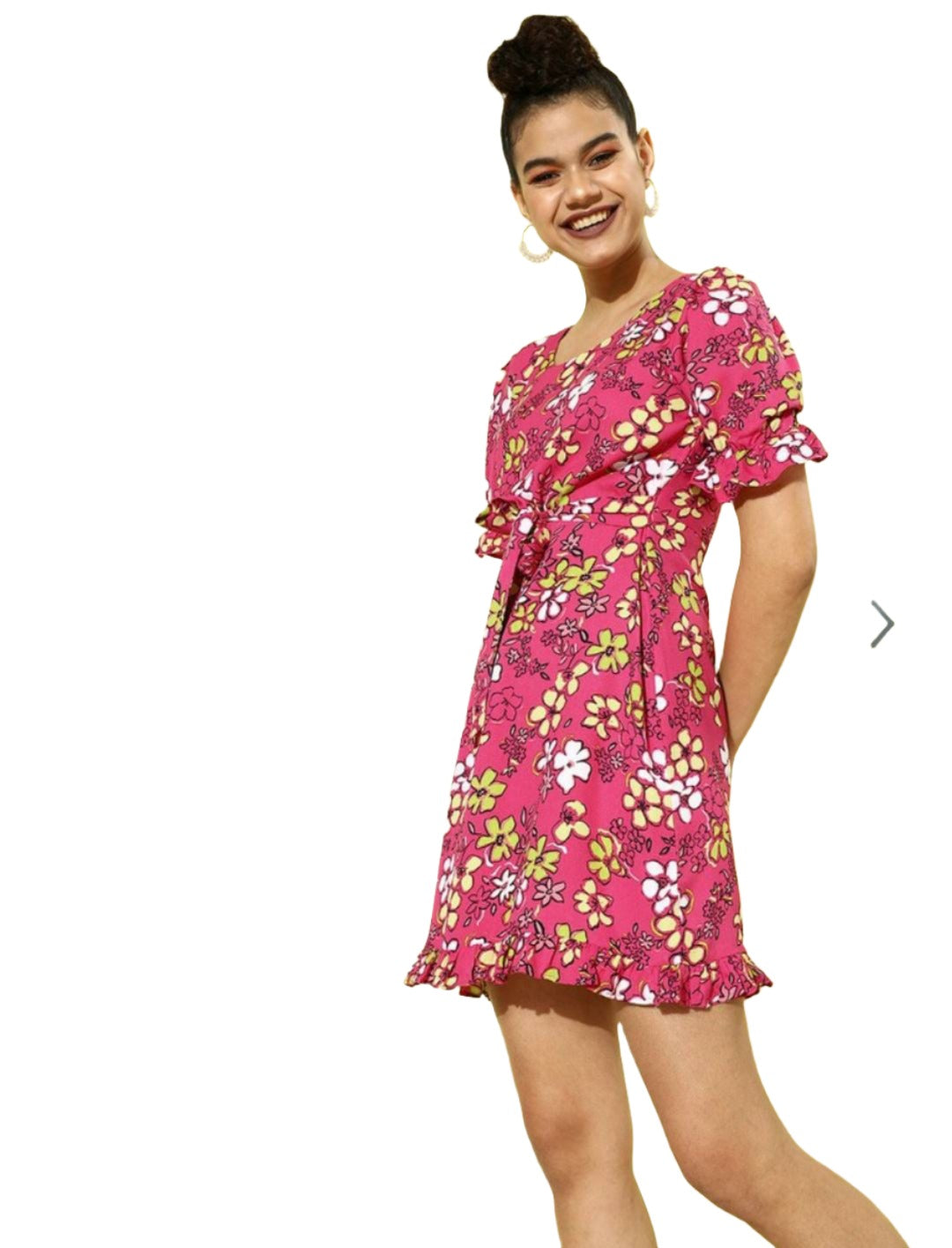 Women Pretty Pink Floral Cinched Waist Dress
