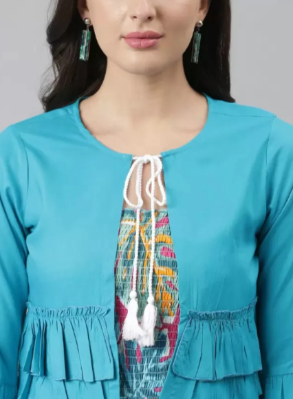 Women Printed Rayon Round Neck Calf Length Dress in Germany