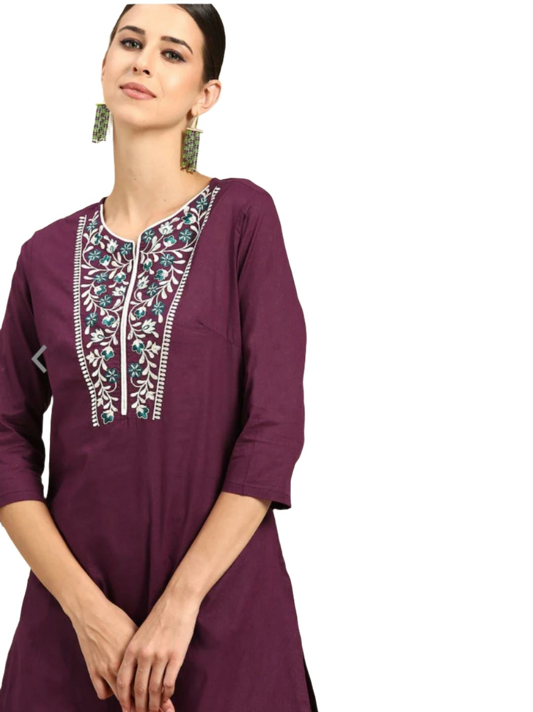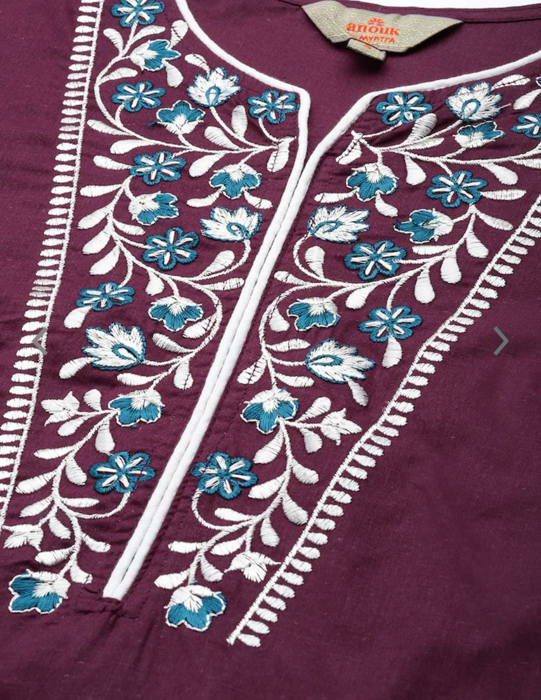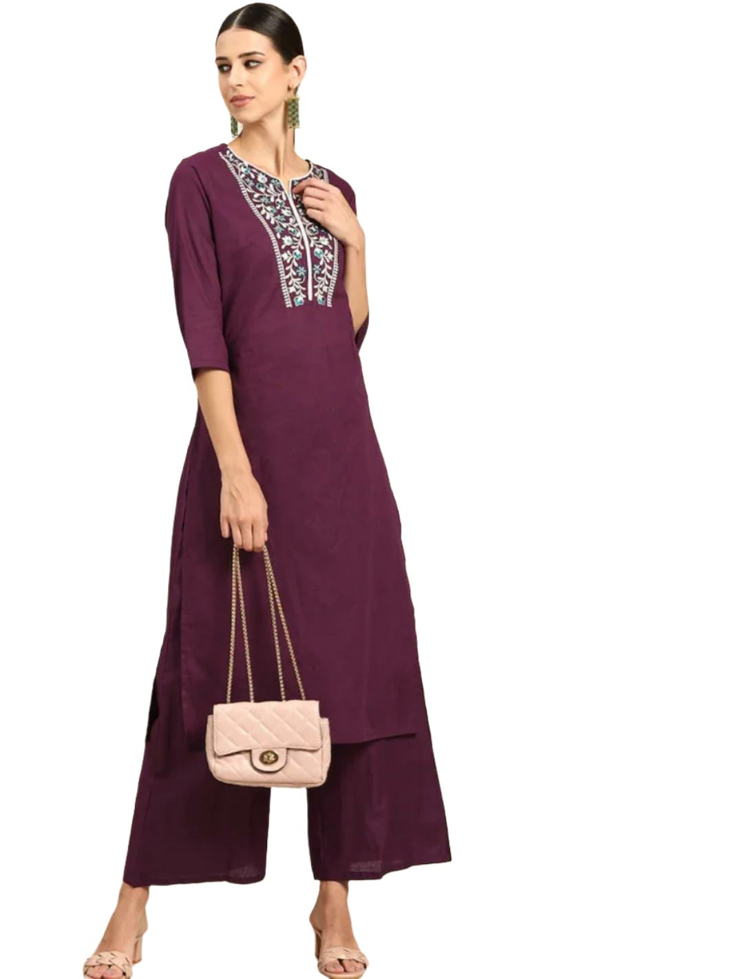 Women Purple Ethnic Motifs Yoke Design Regular Thread Work Pure Cotton Kurta with Palazzos