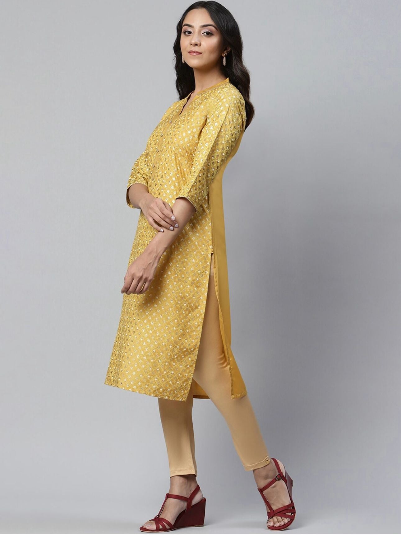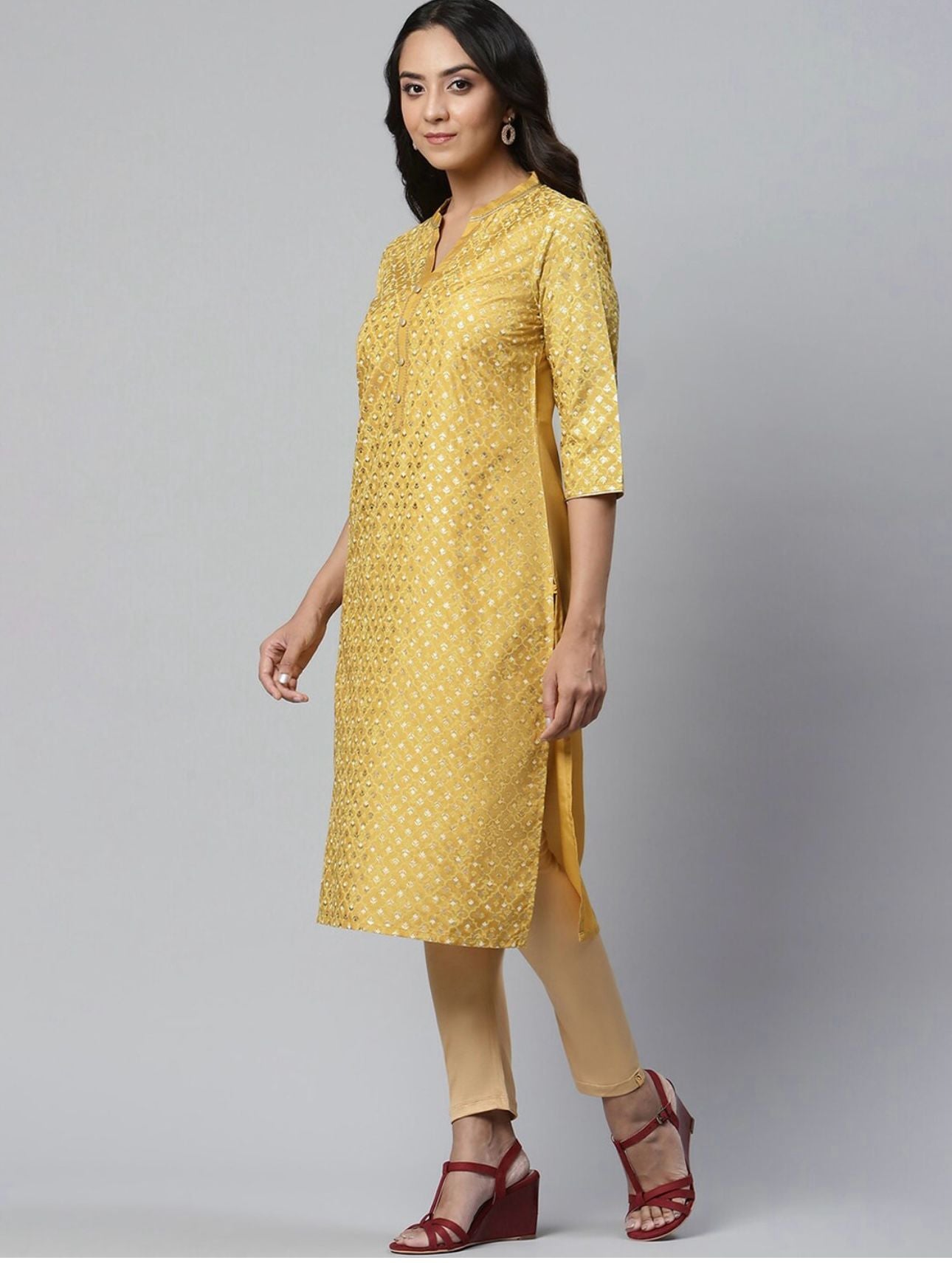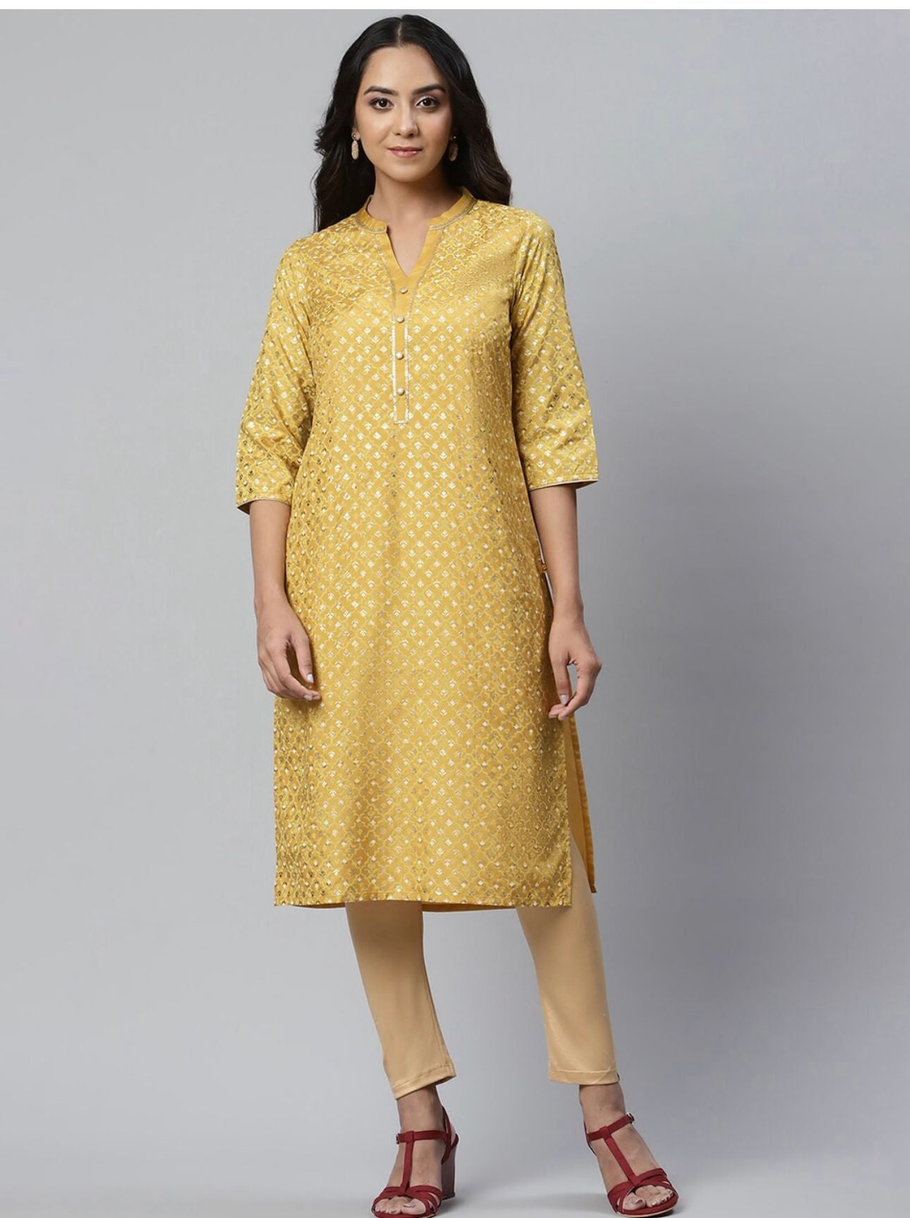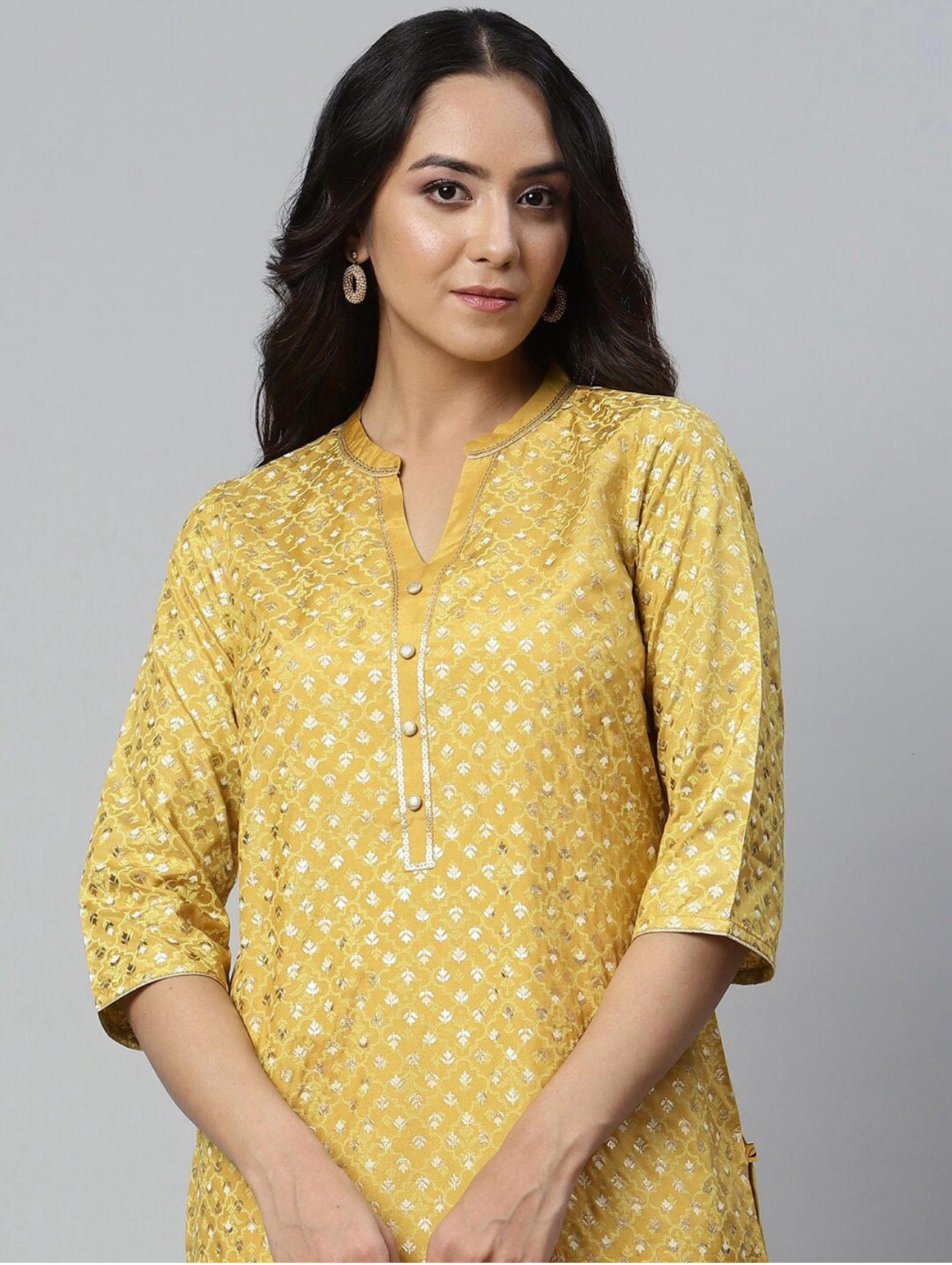 Women Yellow Ethnic Motifs Printed Floral Handloom Kurta