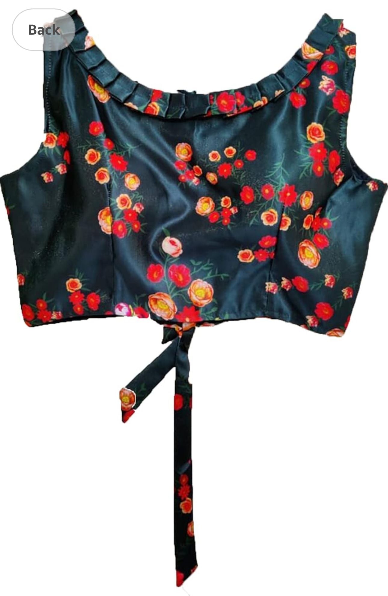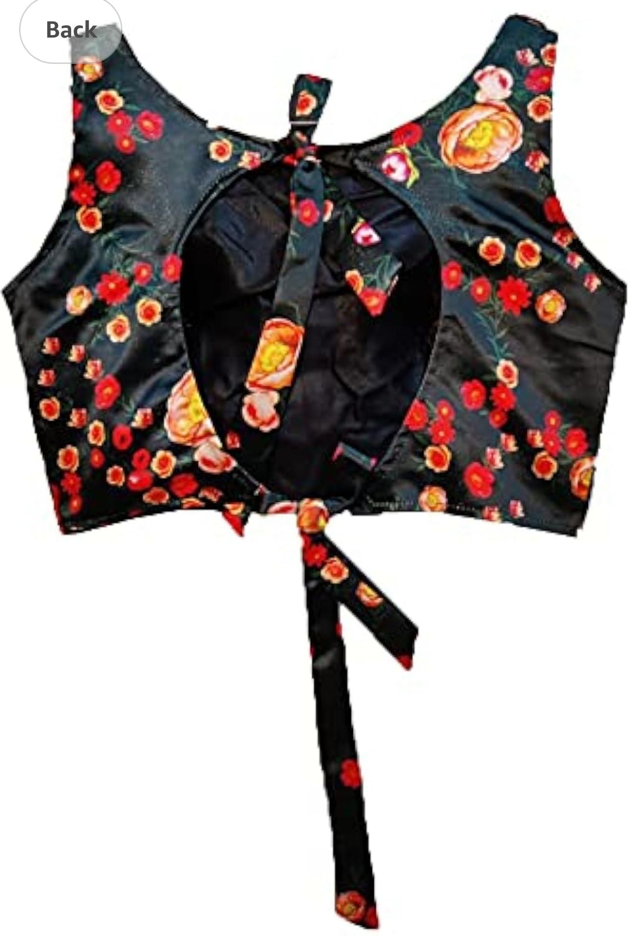 Women's Multicolor Deep V Neck Heavy Shiny Gota Satin Sleeveless Blouse in Berlin