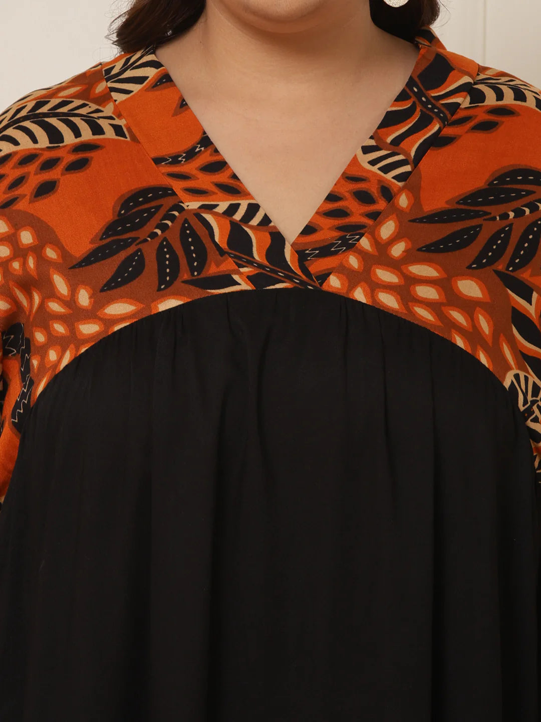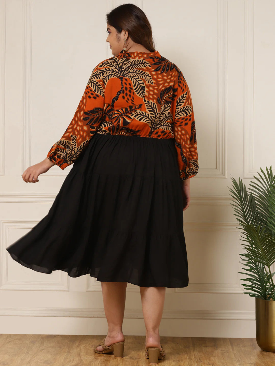Women's Plus Size Tropical Printed With Black Tiered Dress in Germany