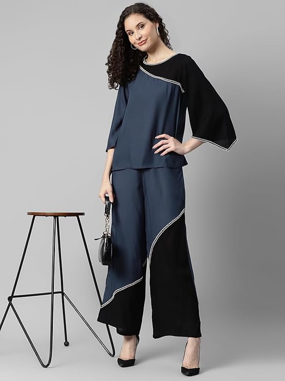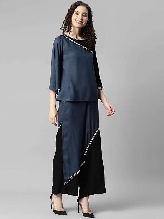 Women's Solid Rayon Top & Pants Co Ord Set in Munich